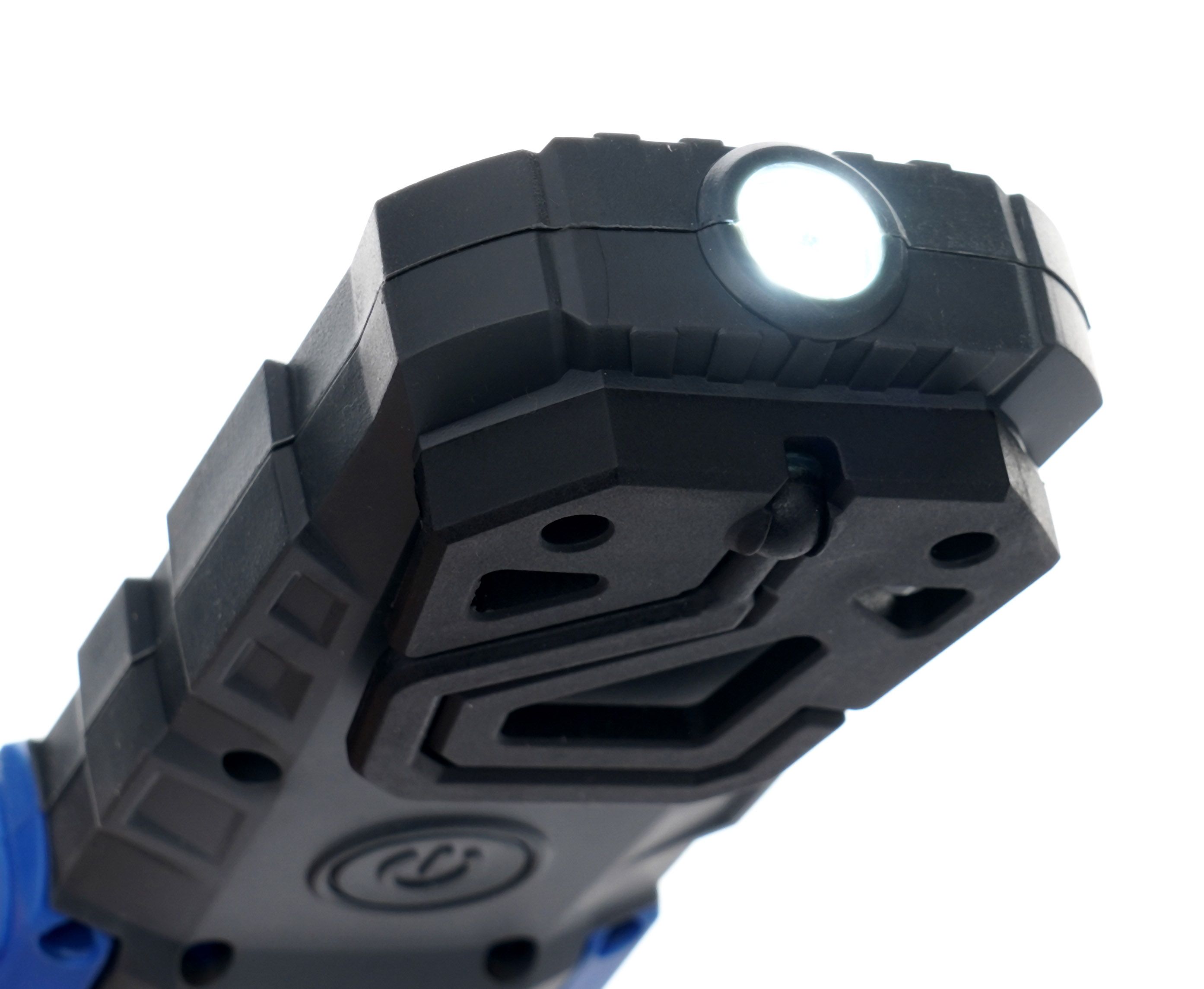 Magnes i hak pozwalają ustawić latarkę warsztatową tam, gdzie naprawdę potrzebujesz światła, a dłonie zostają wolne.