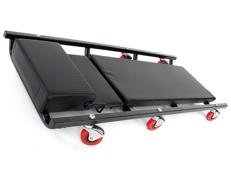 Leżanka warsztatowa pomaga utrzymać wygodniejszą pozycję, co przekłada się na mniejsze zmęczenie podczas dłuższych prac.