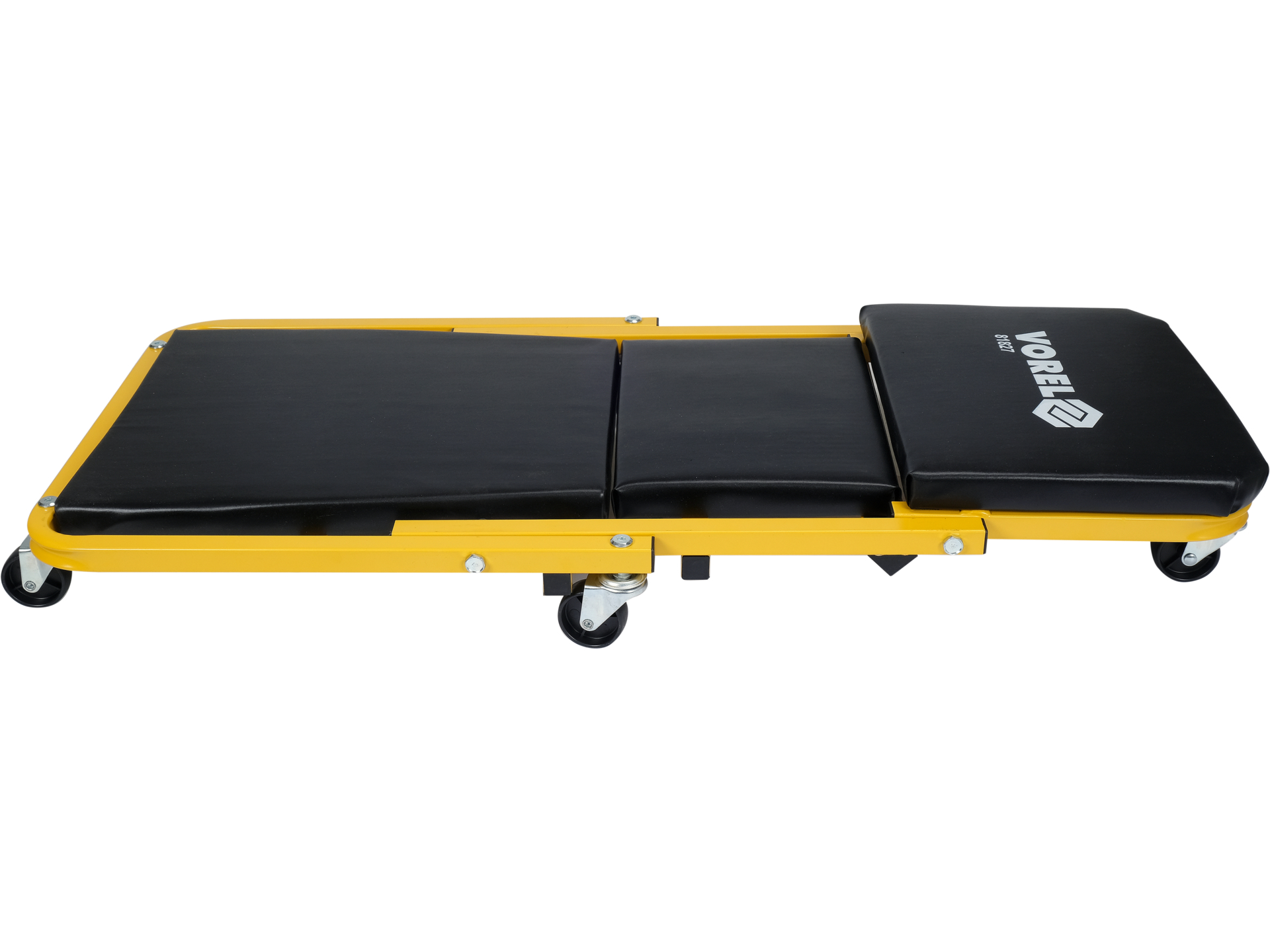 Możliwość transformacji między leżanką (910×410×120 mm) a siedziskiem (265×320×360 mm) pozwala dostosować sprzęt do rodzaju prac serwisowych. W pozycji leżanki umożliwia pracę pod pojazdem przy wymianie oleju lub naprawie układu wydechowego. Jako siedzisko sprawdza się przy pracach na poziomie kół lub progów.