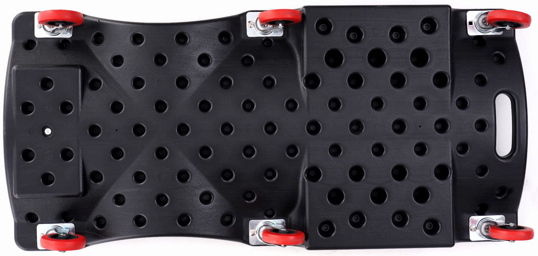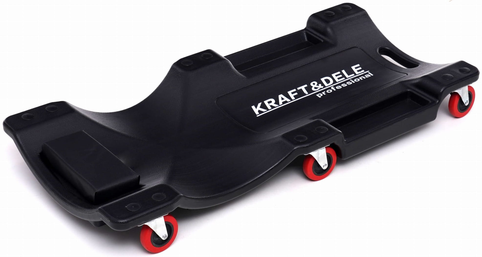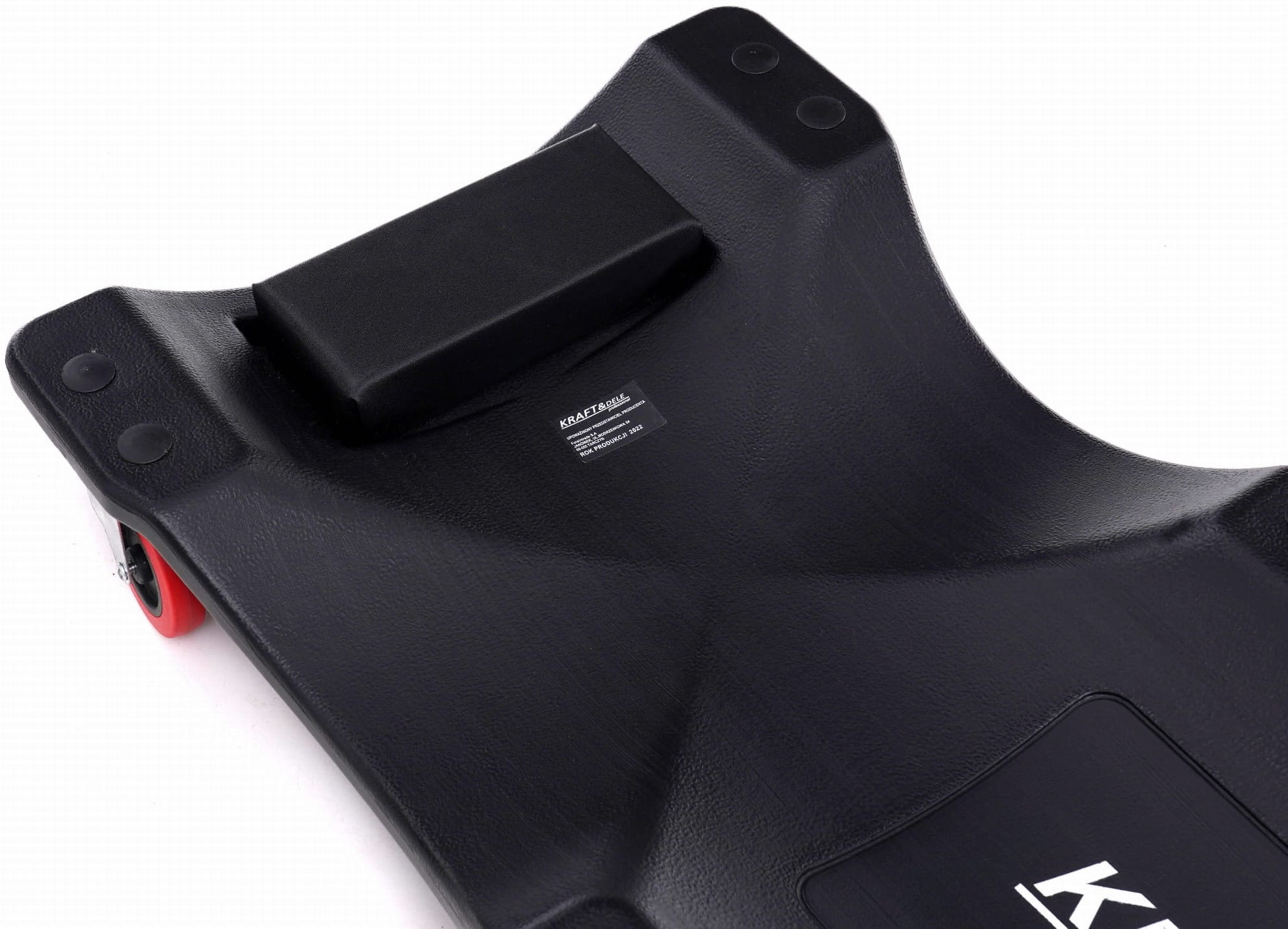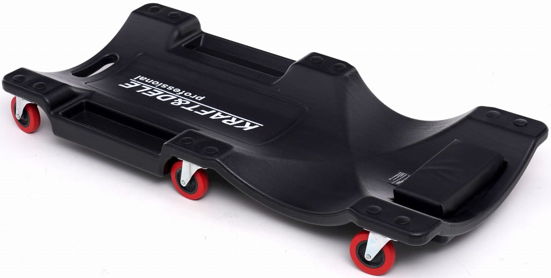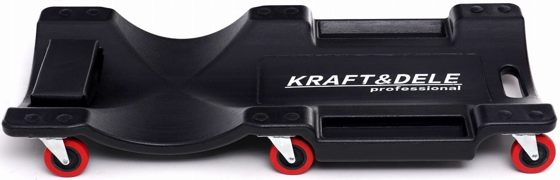 Leżanka warsztatowa wykonana z tworzywa sztucznego, przeznaczona do pracy pod pojazdami w warunkach warsztatowych i garażowych. Wyprofilowana konstrukcja z miękkim podgłówkiem i zestawem 6 kółek na łożyskach umożliwia swobodne manewrowanie bez konieczności wstawania.