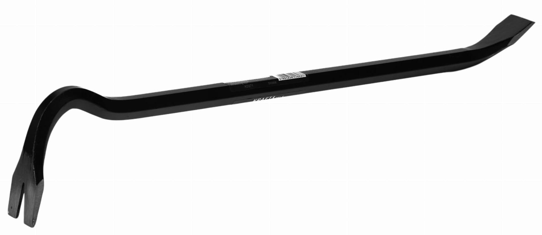 Stalowy łom z wyciągaczem do gwoździ, przeznaczony do prac remontowych i budowlanych wymagających znacznej siły nacisku. Pręt o średnicy 16 mm i długości 500 mm zapewnia odpowiednią dźwignię przy podważaniu i demontażu elementów konstrukcyjnych.