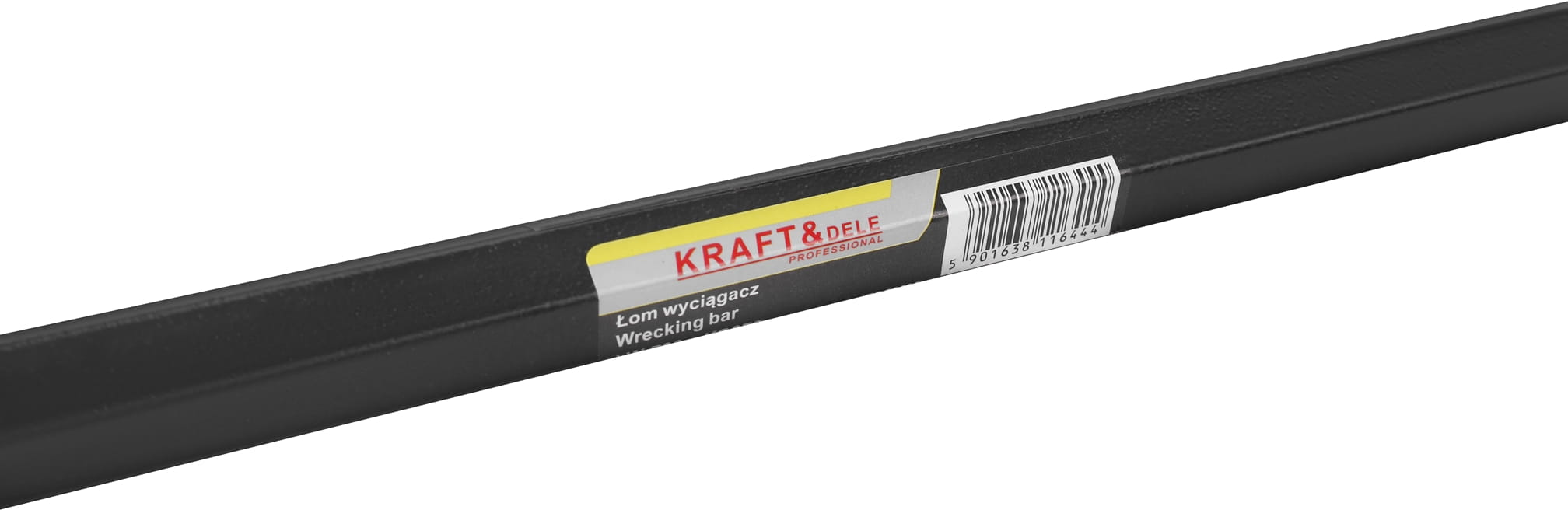 Stalowy łom wyciągacz przeznaczony do prac budowlanych, remontowych i demontażowych. Jednostronne zakończenie w formie wyciągacza gwoździ, drugi koniec spłaszczony i wygięty — umożliwia podważanie oraz rozbieranie konstrukcji z odpowiednią siłą dźwigni.