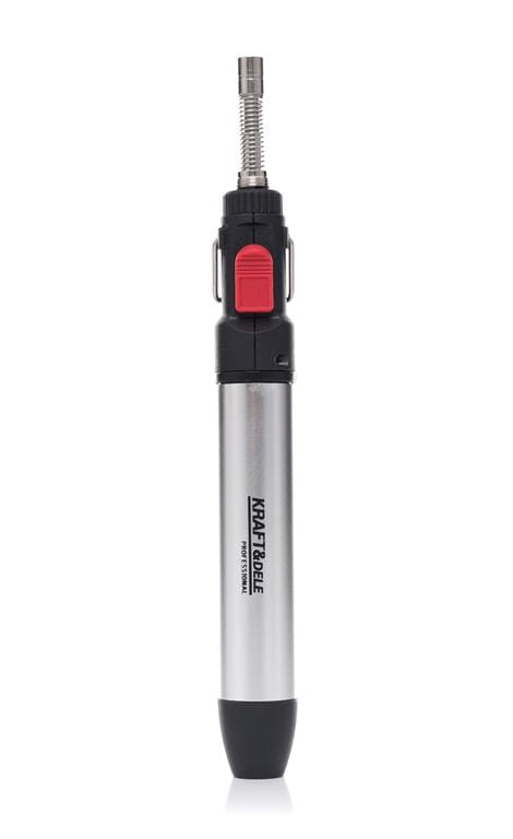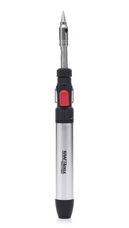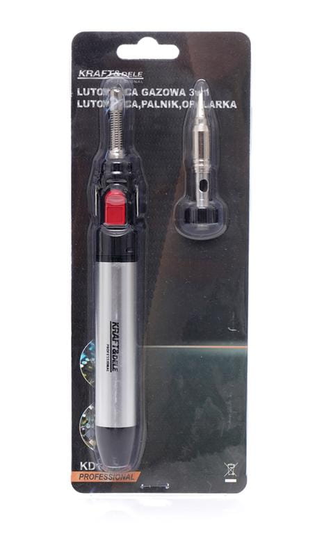 KD1499 to kompaktowe narzędzie zasilane gazem (butan lub propan-butan), łączące w jednej obudowie trzy funkcje: lutownicę, opalkarkę i palnik gazowy. Zbiornik o pojemności 15 ml uzupełnia się przez standardowy zawór zapalniczkowy, bez potrzeby stosowania dedykowanych kartridży.