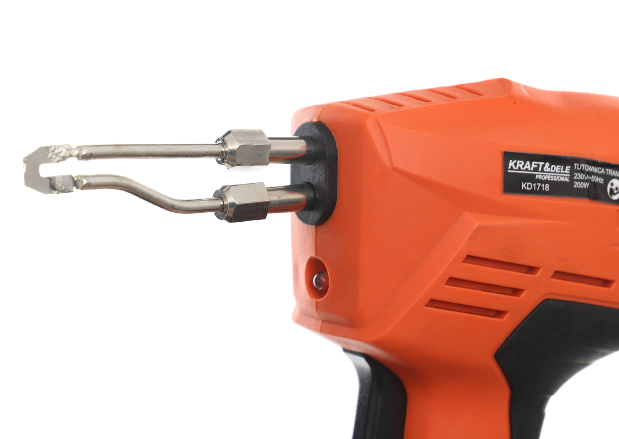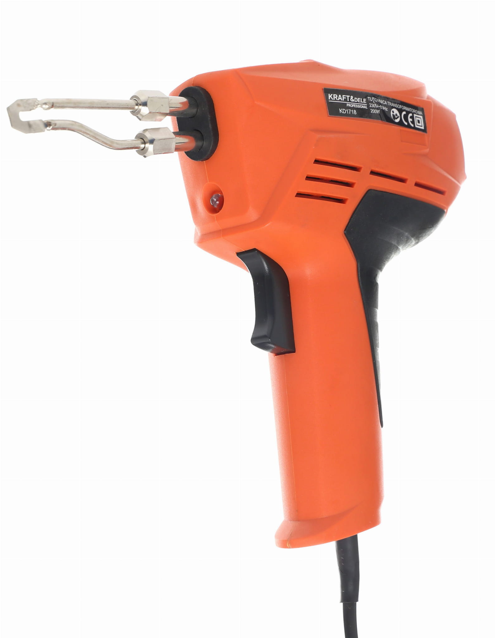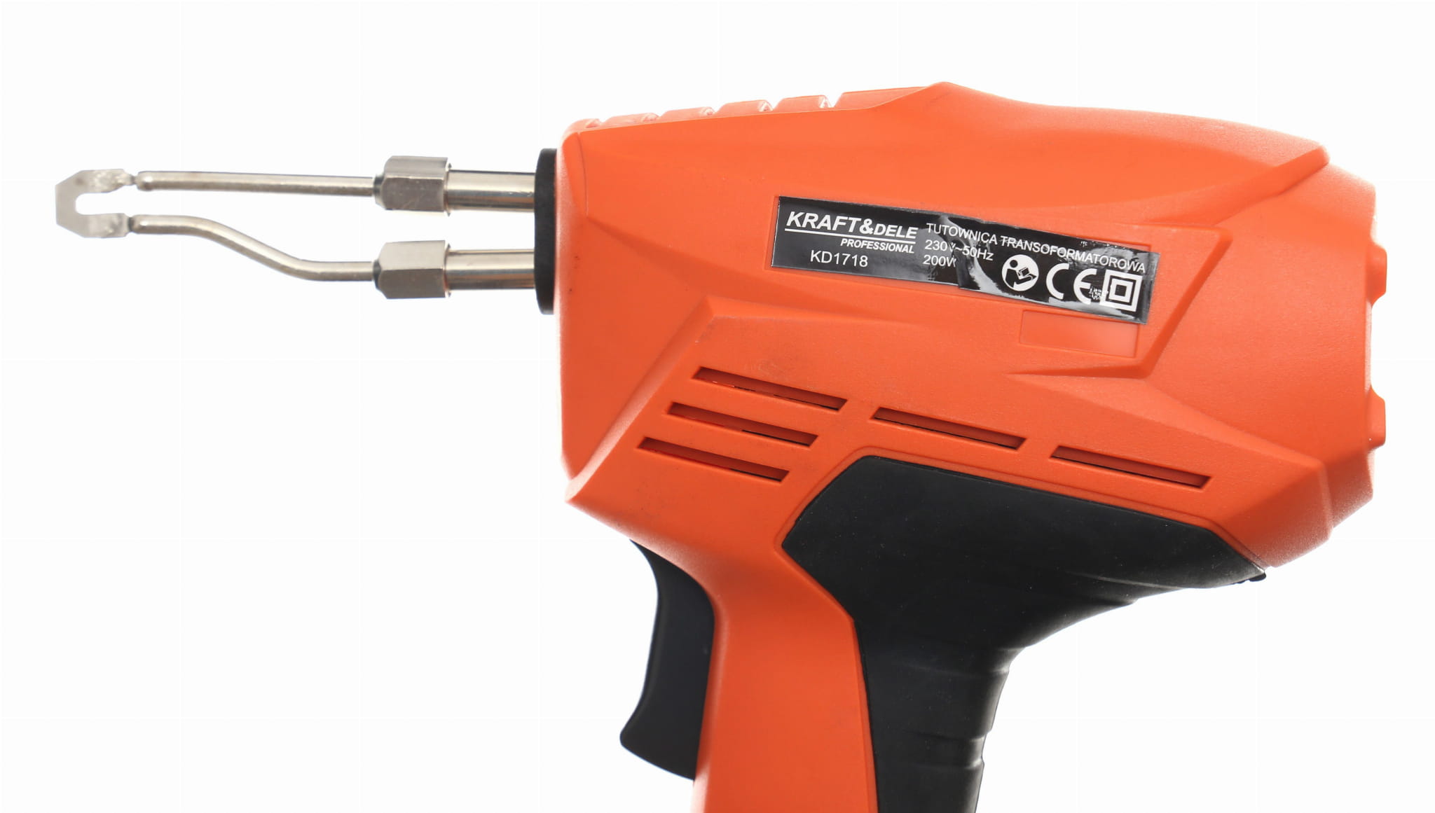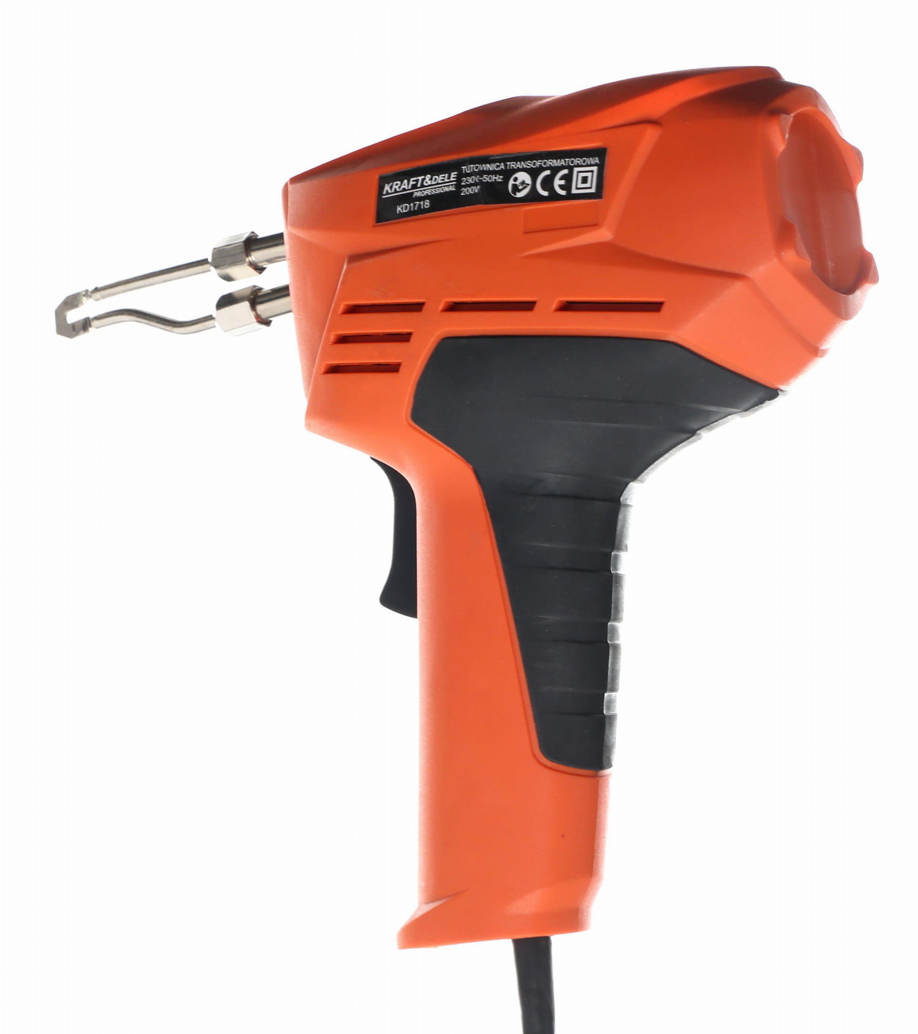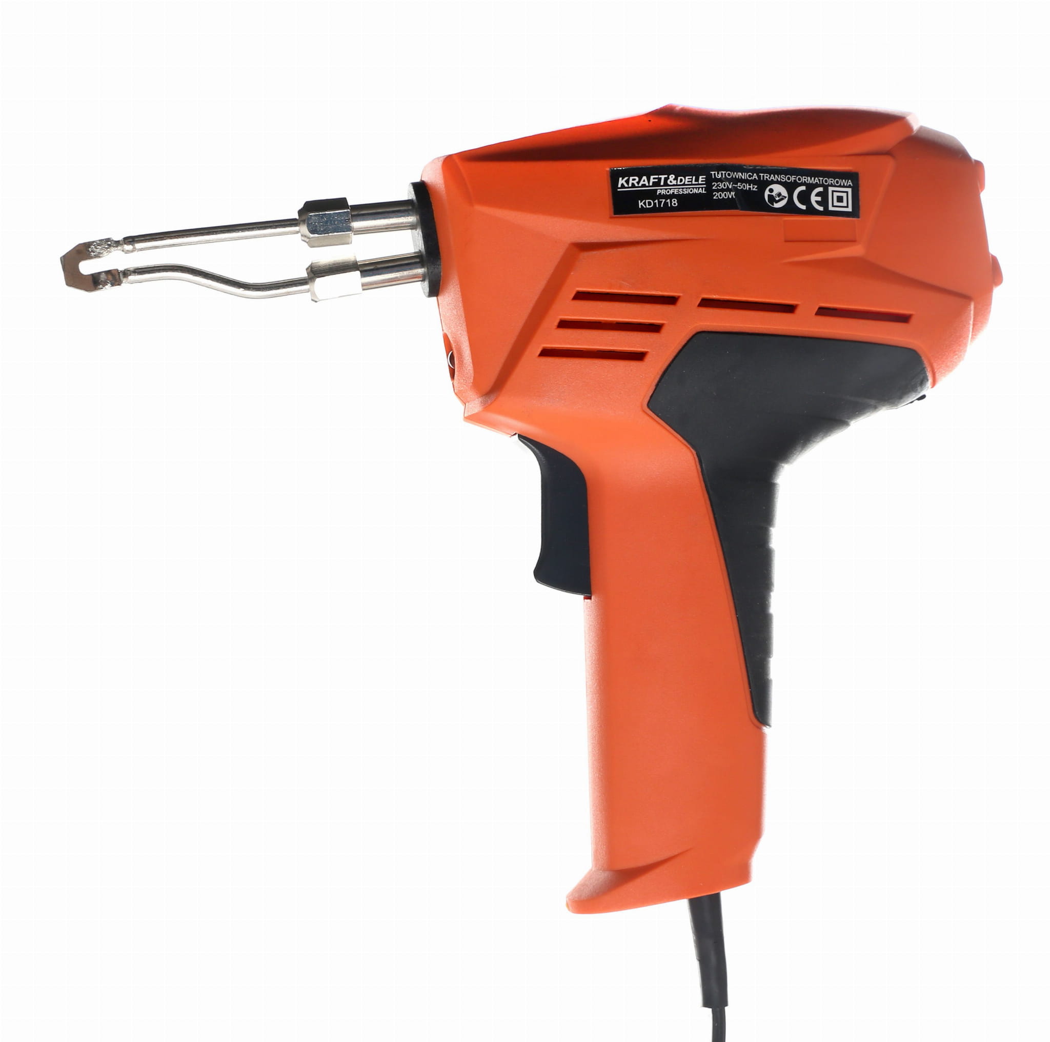Lutownica pistoletowa typu transformatorowego o mocy 200W, przeznaczona do lutowania połączeń elektrycznych, zgrzewania plastiku oraz wypalania w drewnie i skórze. Zestaw zawiera wszystkie niezbędne akcesoria do natychmiastowego rozpoczęcia pracy.