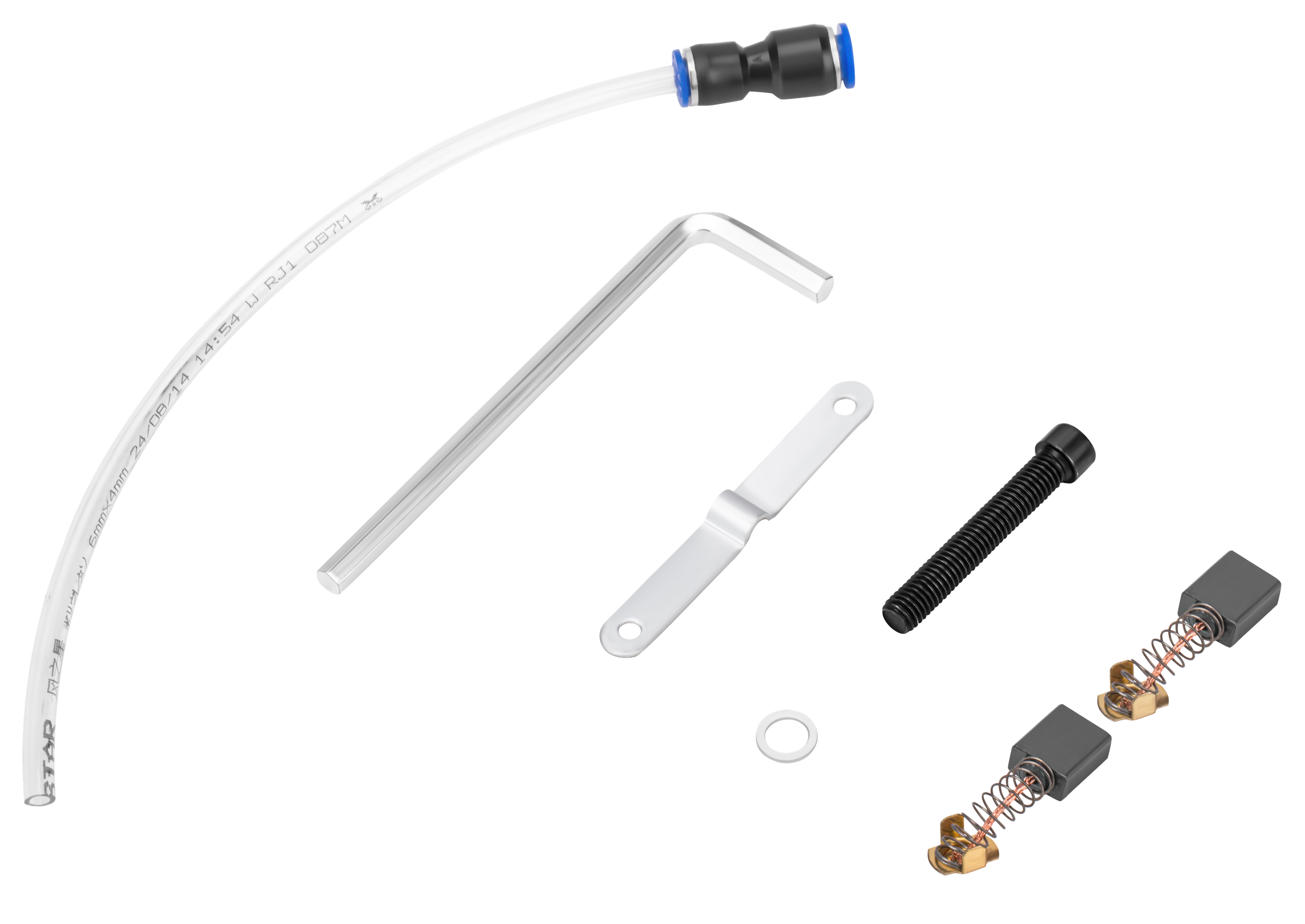 W zestawie znajdują się zapasowe szczotki węglowe silnika. Szczotki należy kontrolować regularnie i wymieniać po zużyciu do granicy oznaczonej przez producenta — zaniedbanie wymiany może prowadzić do uszkodzenia kolektora silnika. Przy podłączeniu do odkurzacza zaleca się stosowanie urządzeń o wydajności minimum 1200 W z filtrem klasy M lub H, dostosowanych do pyłów mineralnych.