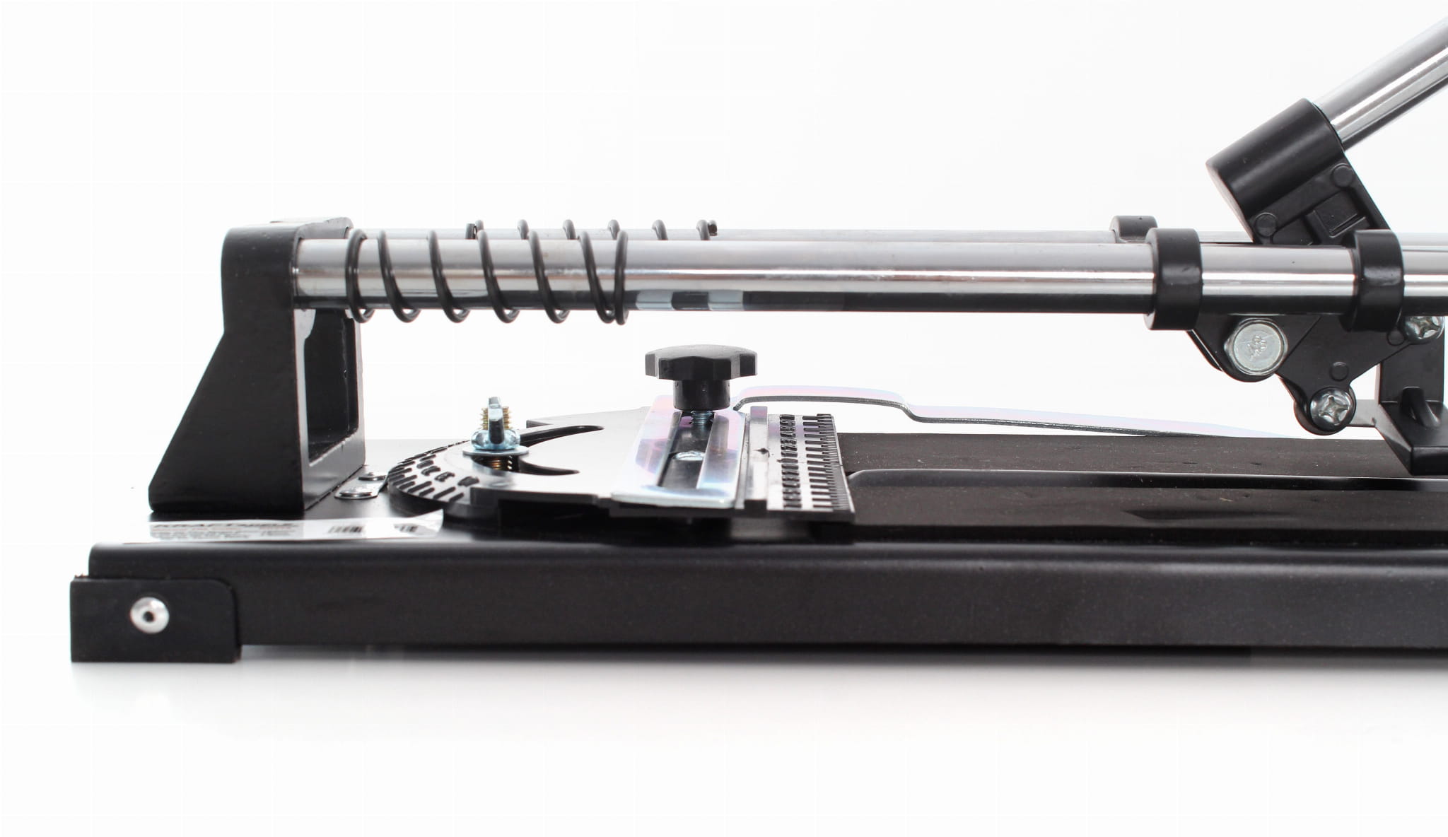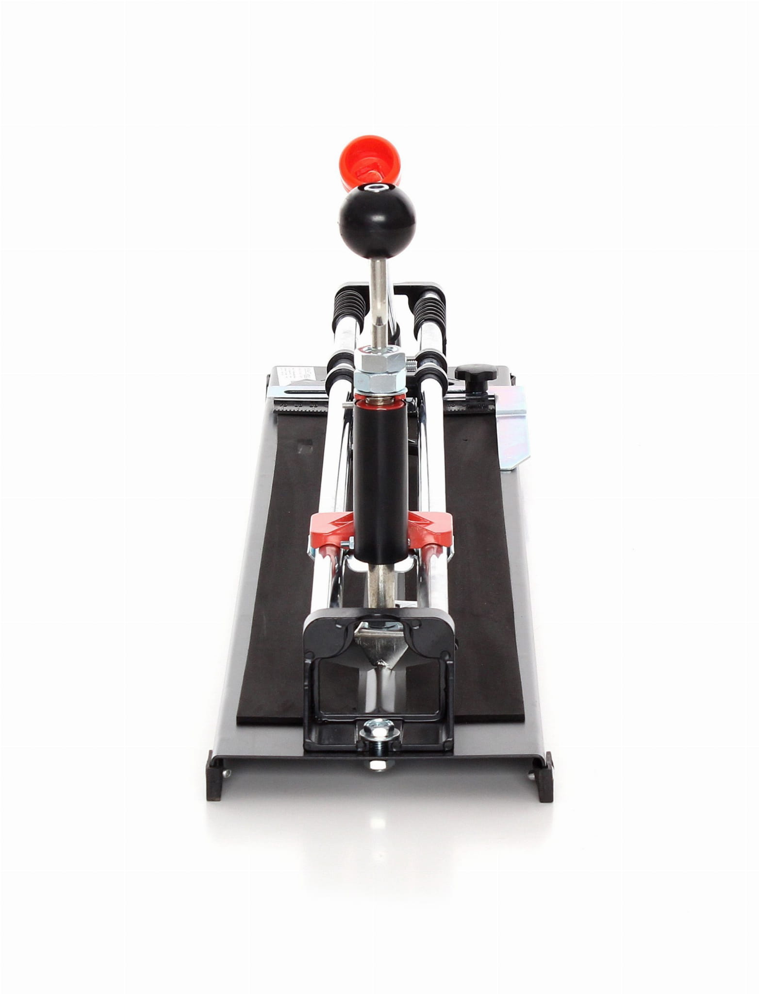 Gruba blacha stalowa (1,8 mm) zapewnia sztywność konstrukcji, a wyściółka z technicznej mikrogumy stabilizuje płytkę podczas cięcia i chroni jej spodnią powierzchnię przed zarysowaniem. Szerokość podstawy 165 mm pozwala pewnie oprzeć nawet duże formaty płytek.