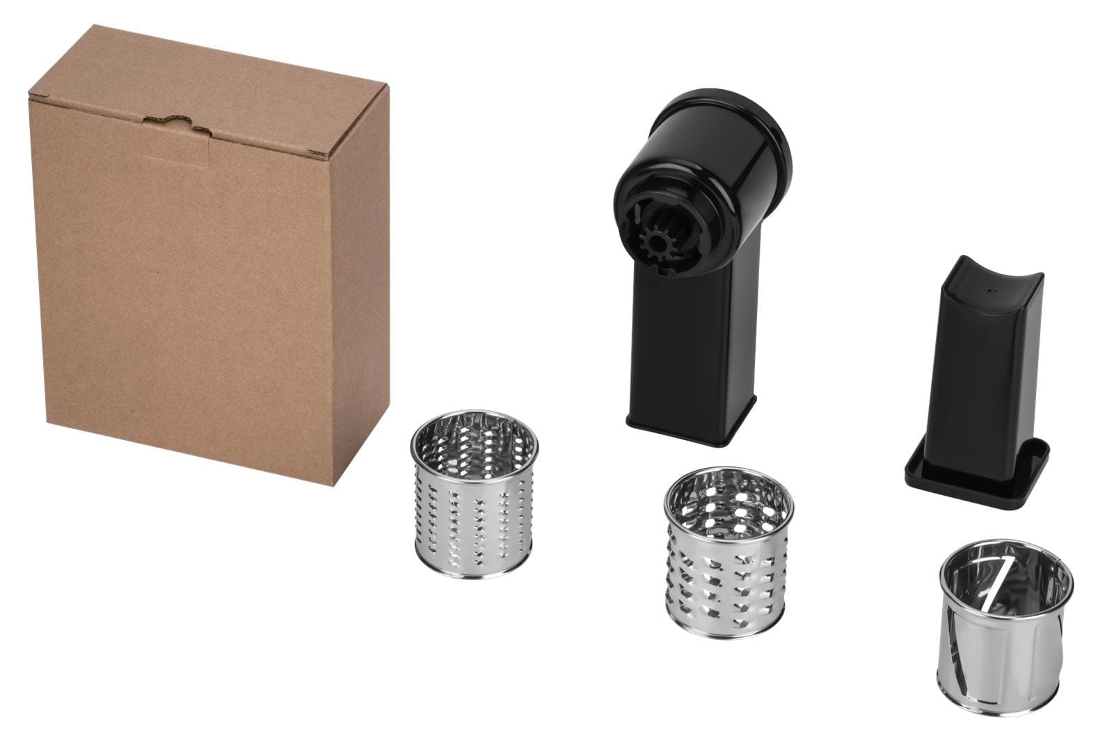 Dołączona szatkownica wyposażona jest w cztery ostrza ze stali nierdzewnej oraz trzy wymienne bębny o wymiarach 62 x 67 mm. Ostrza różnią się profilem cięcia, co pozwala uzyskać różne formy krojonych warzyw: