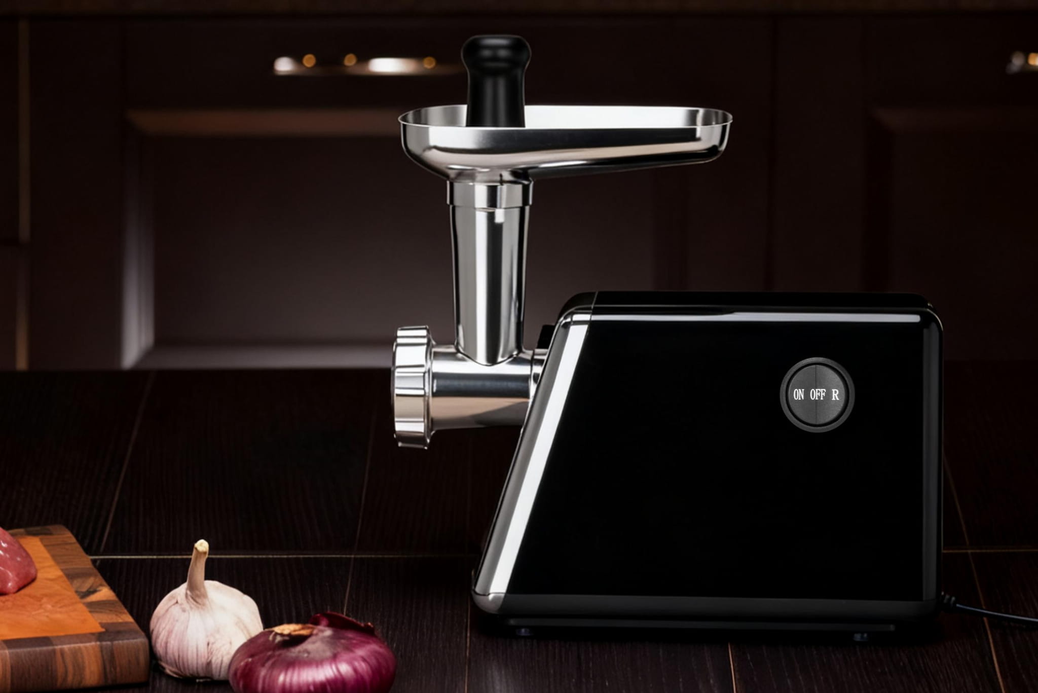 Głowica wykonana z metalu zapewnia większą trwałość w porównaniu z konstrukcjami plastikowymi – lepiej odprowadza ciepło i wytrzymuje długotrwałą, intensywną pracę. Metalowa taca ułatwia podawanie mięsa i jest łatwa do mycia.