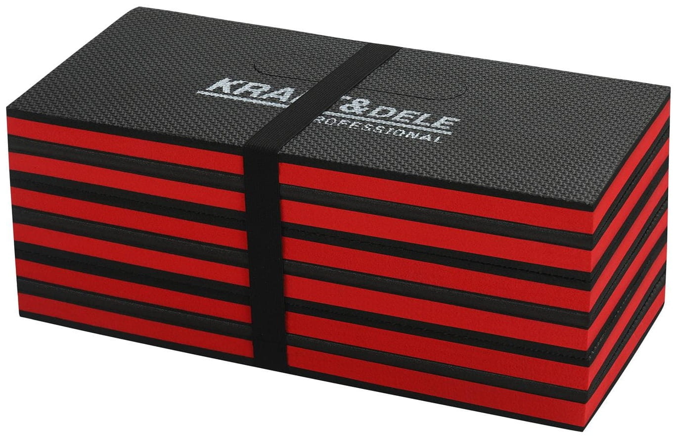 Składana mata z pianki EPE przeznaczona do pracy w pozycji klęczącej lub leżącej. Skutecznie izoluje przed wilgocią, zimnem i twardym podłożem — zarówno w warsztacie, jak i na zewnątrz. Sześcioczęściowa konstrukcja umożliwia złożenie maty do kompaktowego formatu.
