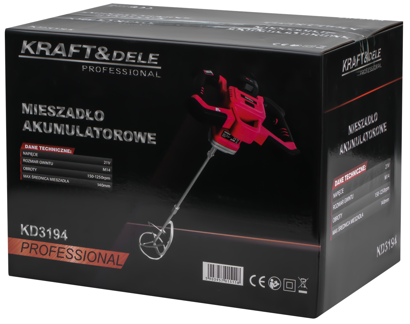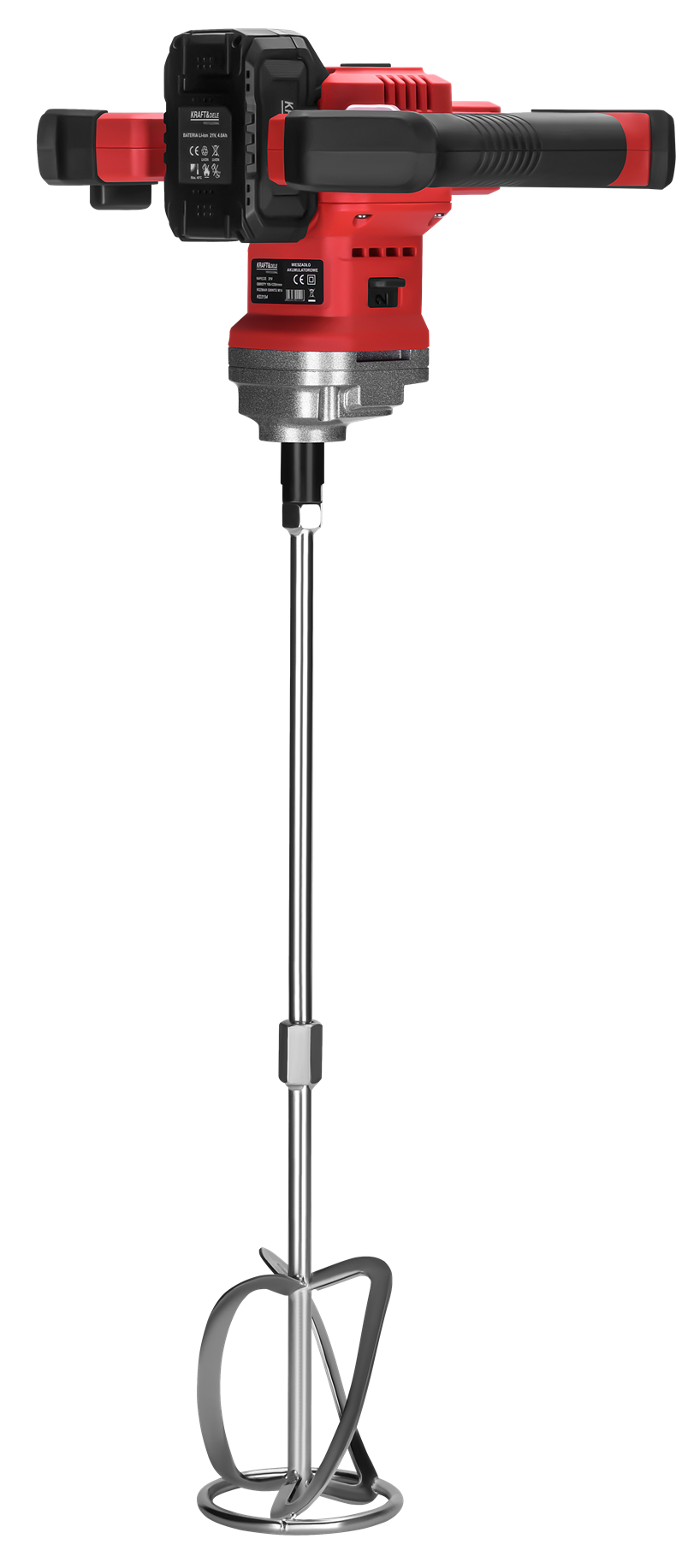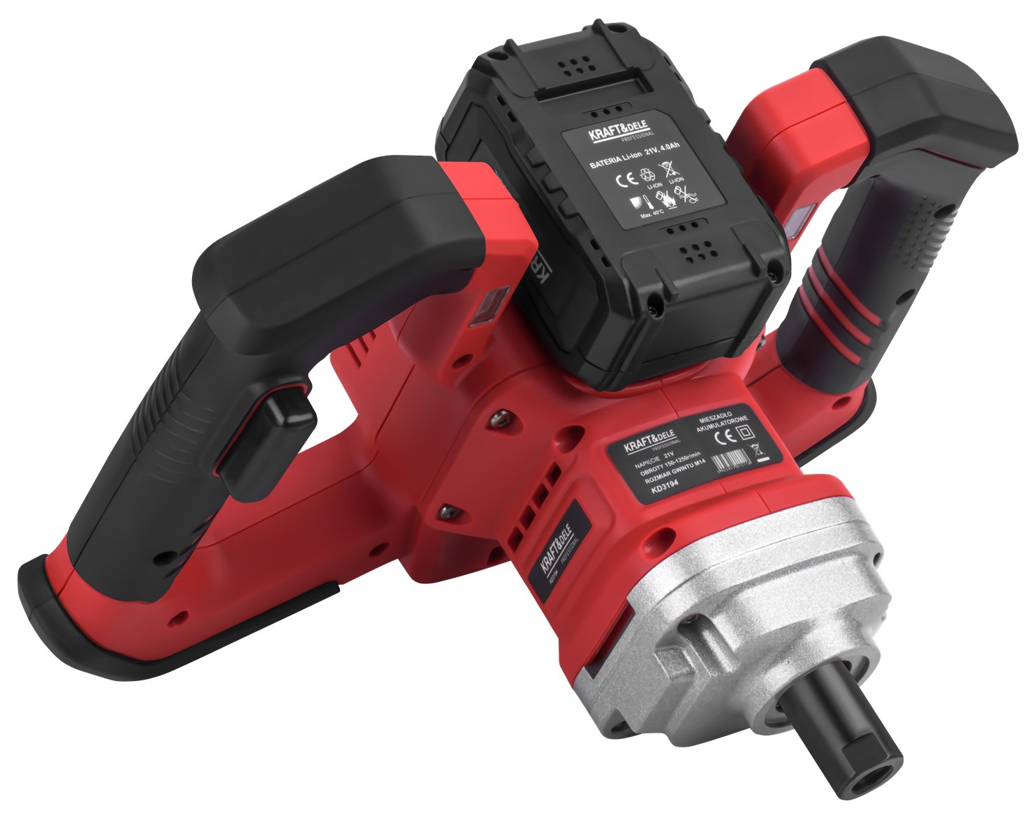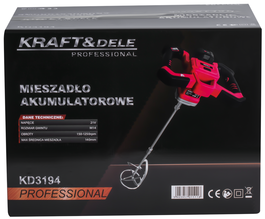 KD3194 to akumulatorowe mieszadło z silnikiem bezszczotkowym, przeznaczone do mieszania zapraw, klejów, farb i innych materiałów budowlanych. Zasilanie bateryjne 21V zapewnia swobodę pracy bez kabla, a zestaw dwóch akumulatorów 4Ah pozwala na ciągłą pracę bez przerw na ładowanie.