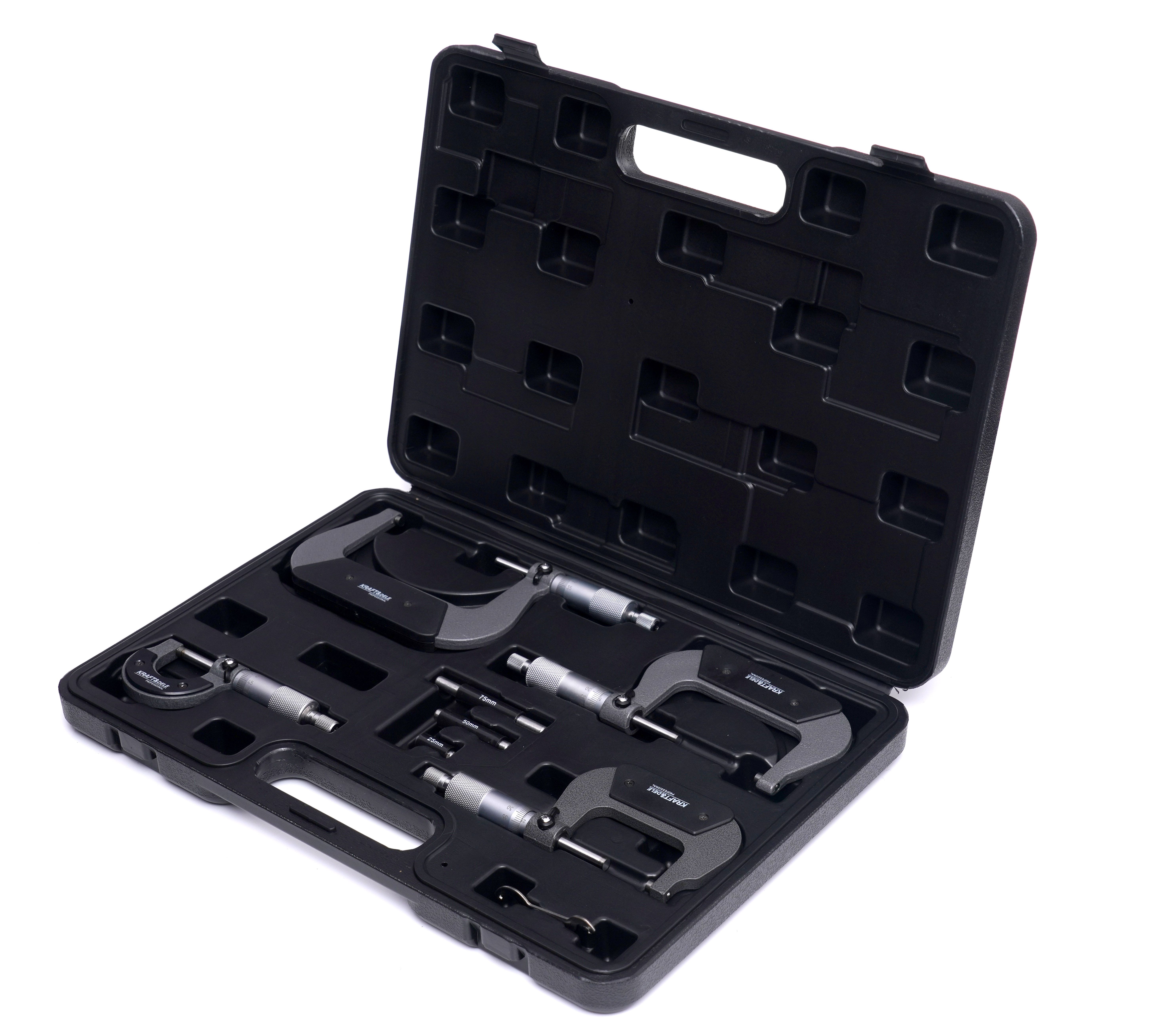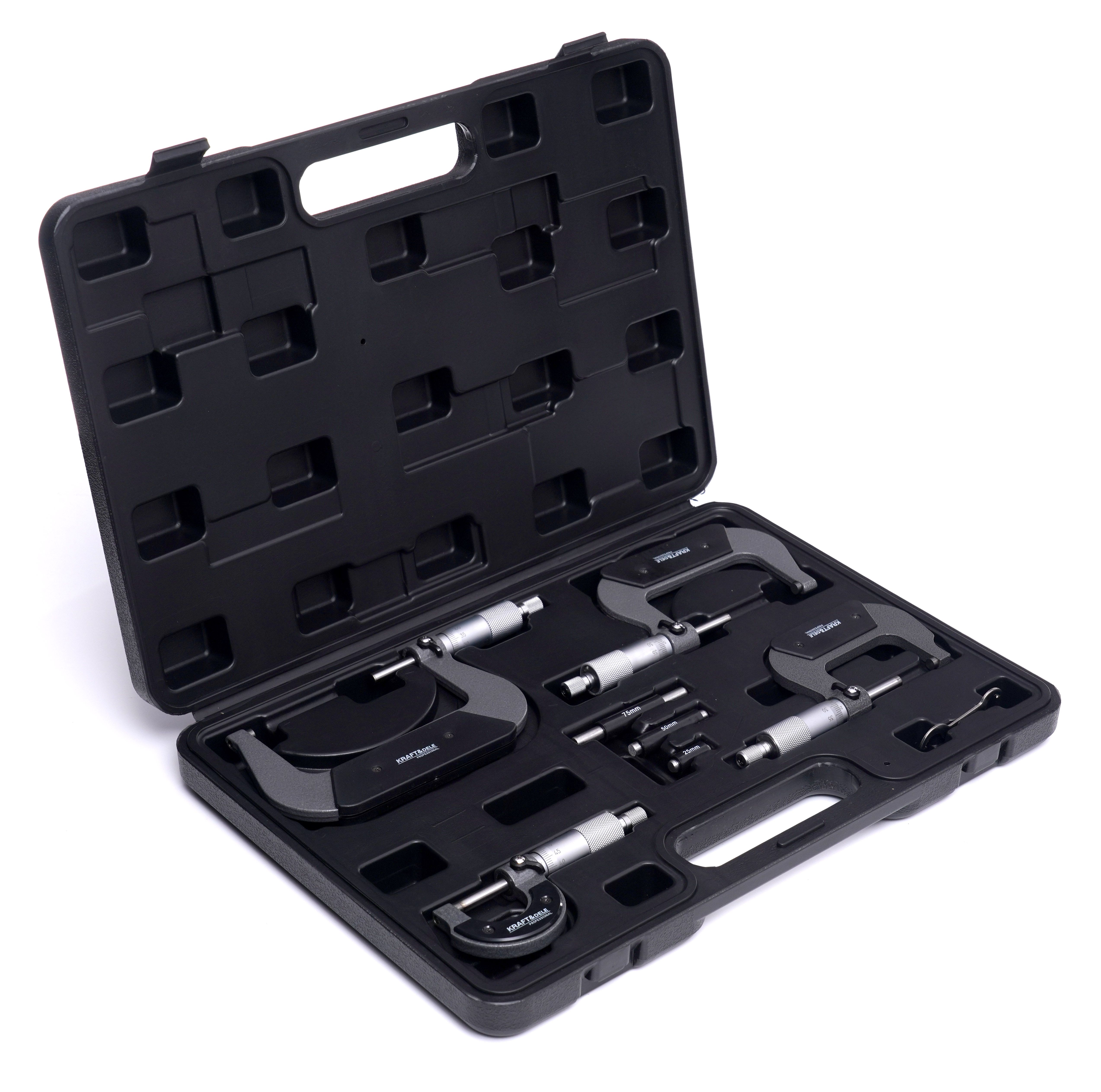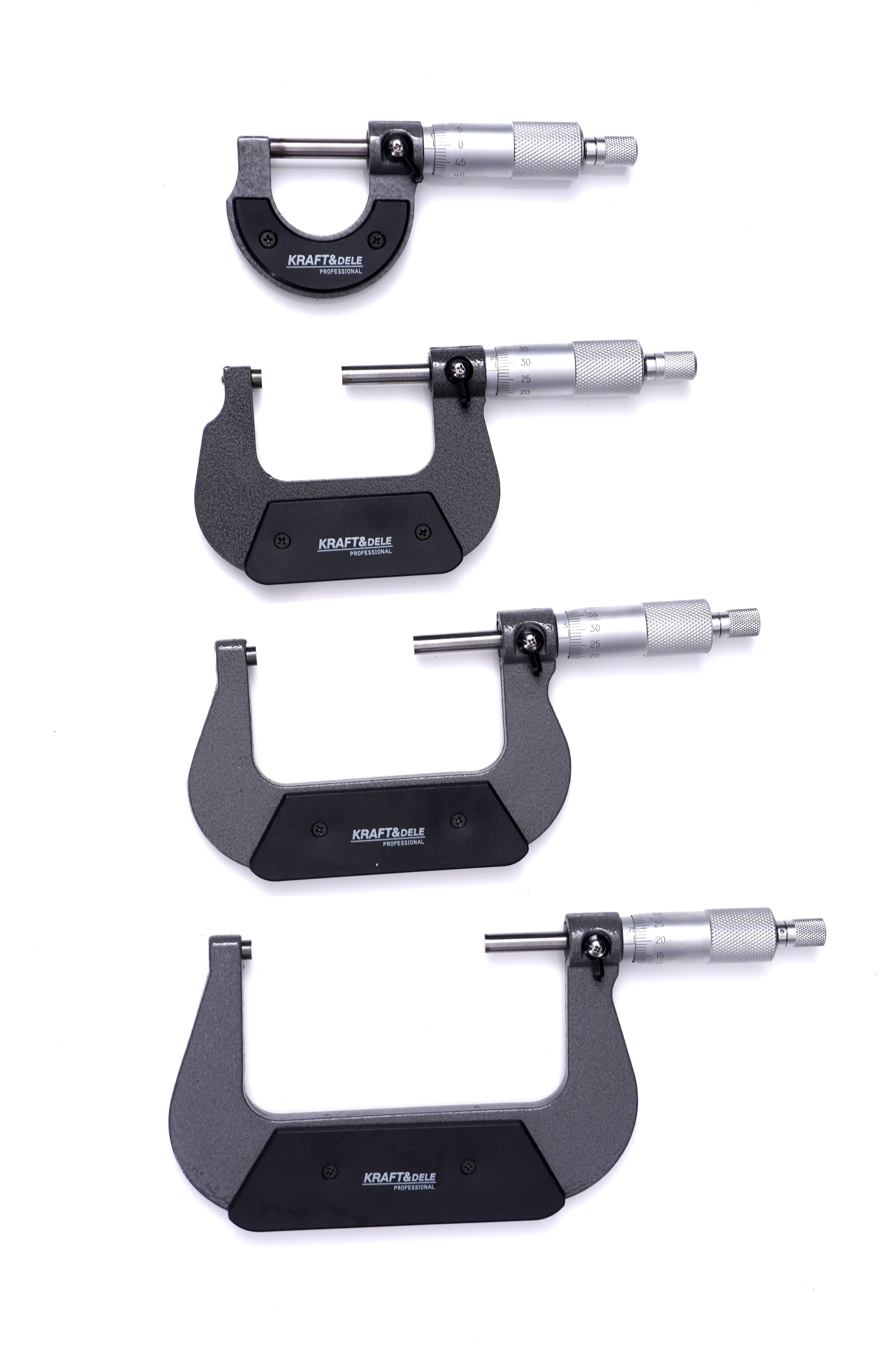 MIKROMETRY 0-100mm KD10443 / KD10443 / KRAFT&DELE to zestaw mikrometrów pomiarowych stworzony do precyzyjnej kontroli wymiarów w zakresie 0–100 mm z dokładnością 0,01 mm. Jeśli szukasz kompletu do warsztatu lub prac technicznych, KRAFT&DELE KD10443 daje uporządkowany zestaw z akcesoriami do weryfikacji i wygodnym przechowywaniem.