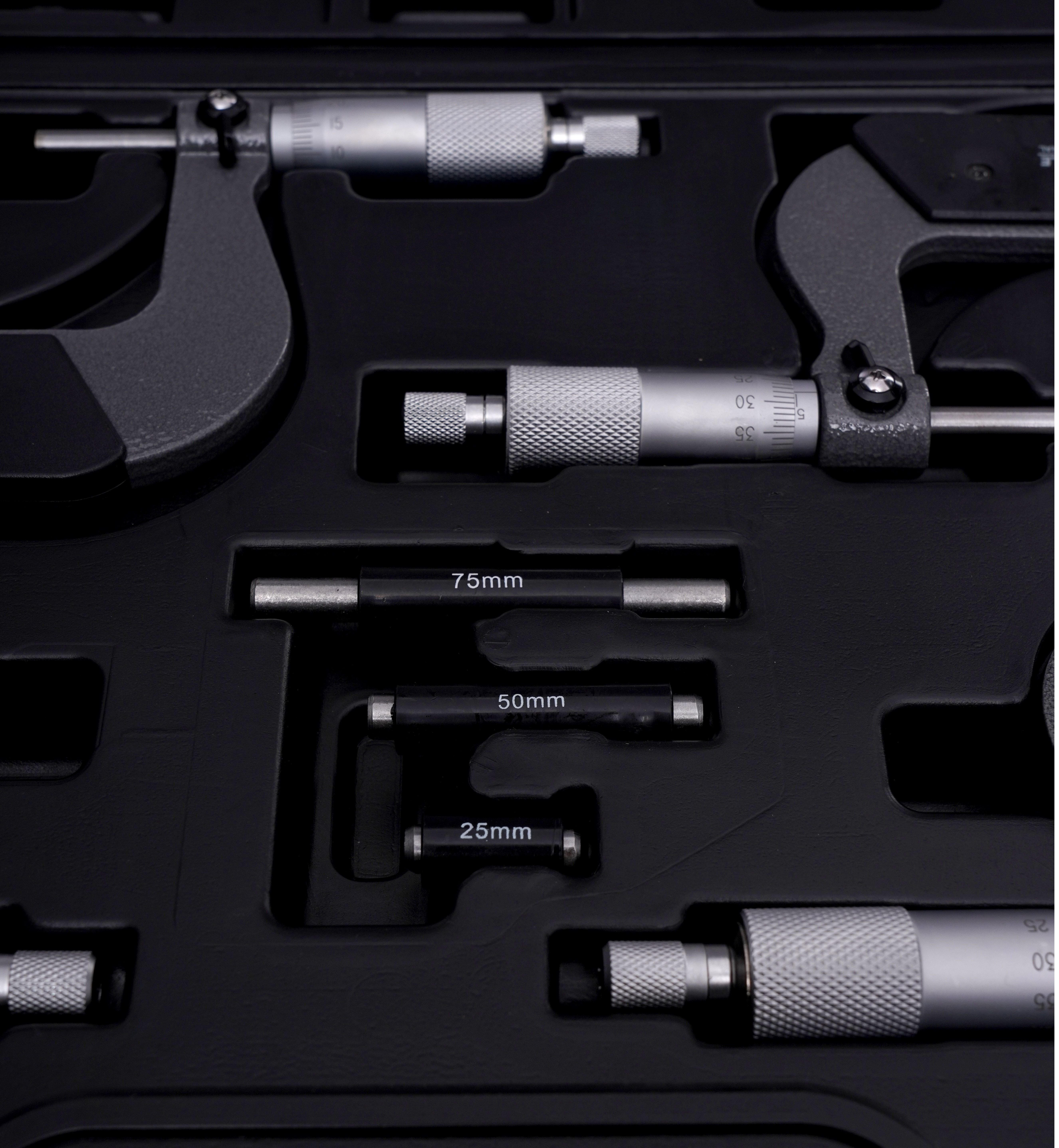 MIKROMETRY 0-100mm KD10443 obejmują cztery zakresy robocze, dzięki czemu szybciej dobierasz właściwy mikrometr i sprawniej realizujesz serię pomiarów.