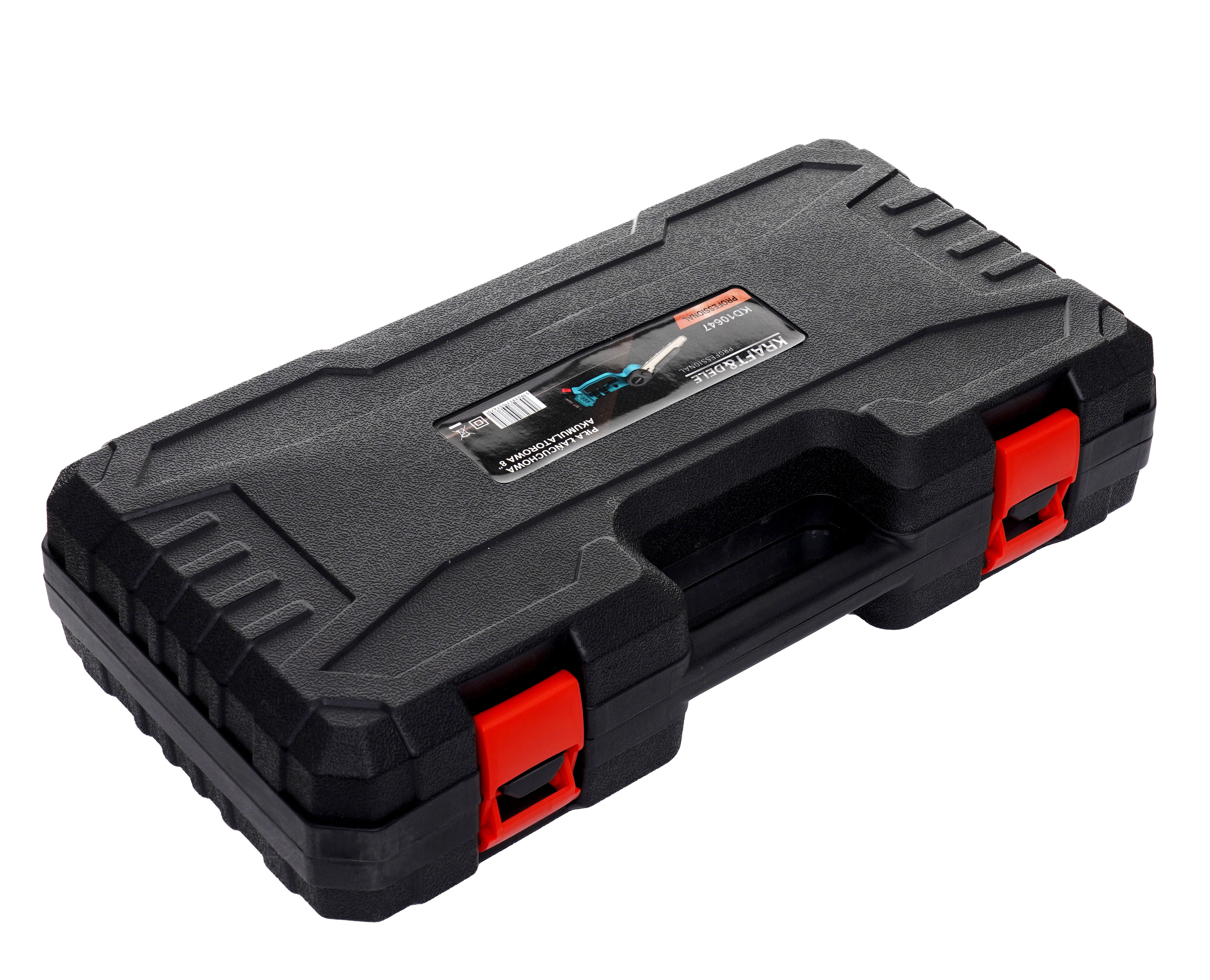 W zestawie otrzymujesz mini pilarkę akumulatorową, 2 baterie, ładowarkę, śrubokręt płaski oraz walizkę ułatwiającą przechowywanie i transport.