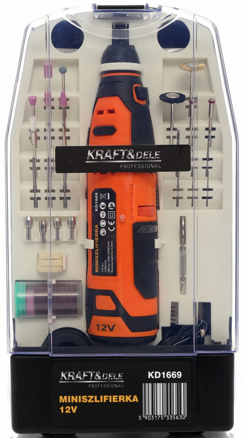 KD1669 to kompaktowa szlifierka wielofunkcyjna zasilana akumulatorem 12V, przeznaczona do precyzyjnych prac szlifierskich, grawerskich, frezarskich i polerskich. Urządzenie jest dostarczane w walizce transportowej wraz z kompletem 55 akcesoriów, co pozwala na natychmiastowe podjęcie różnorodnych prac bez konieczności dokupowania dodatkowych narzędzi.