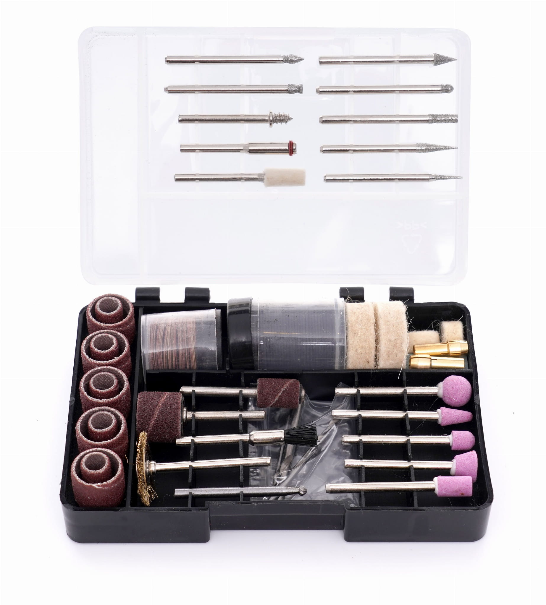 W komplecie znajdują się końcówki szlifierskie, ścierne, polerskie, szczotki oraz wiertła, co eliminuje konieczność dokupowania podstawowych akcesoriów. Utwardzone elementy metalowe zapewniają dłuższą żywotność zestawu przy regularnym użytkowaniu.