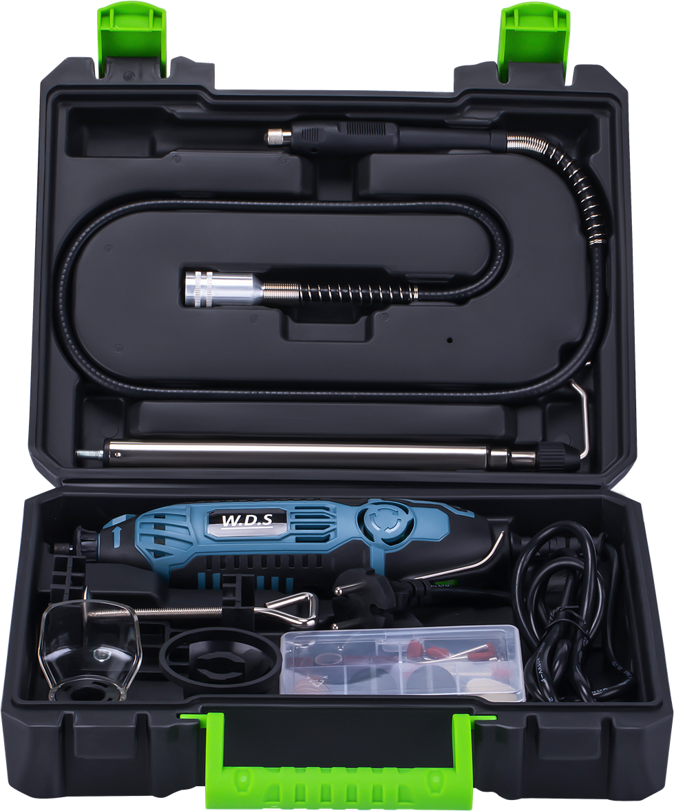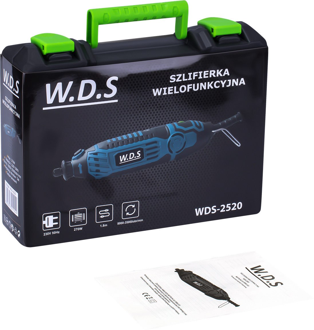 Miniszlifierka wielofunkcyjna 270W 200 elementów WDS2520 WDS2520 to wszechstronna miniszlifierka wielofunkcyjna marki W.D.S, stworzona z myślą o precyzyjnych pracach warsztatowych, hobbystycznych i rzemieślniczych. Dzięki mocy 270W oraz szerokiemu zakresowi regulacji obrotów urządzenie pozwala na dokładne dopasowanie parametrów pracy do rodzaju obrabianego materiału. Miniszlifierka idealnie sprawdzi się podczas wiercenia, szlifowania, szczotkowania, grawerowania, polerowania czy frezowania. Niewielkie rozmiary oraz prosta konstrukcja gwarantują wygodę użytkowania, wysoką precyzję oraz niezawodność. Bogaty zestaw aż 200 akcesoriów umożliwia natychmiastowe rozpoczęcie pracy i łatwe dobranie odpowiedniej końcówki do konkretnego zadania. CECHY PRODUKTU: ✅ Moc 270W – wydajna praca w kompaktowej formie ✅ Regulacja prędkości obrotowej – pełna kontrola nad narzędziem ✅ Szeroki zakres obrotów 8000–35000 obr/min ✅ Zestaw aż 200 akcesoriów – wszechstronne zastosowanie ✅ Wysoka precyzja pracy – idealna do detali i drobnych elementów ✅ Wszystkie metalowe elementy utwardzane ✅ Produkt certyfikowany – potwierdzona jakość wykonania ✅ Idealna do prac: grawerskich, polerskich, jubilerskich, modelarskich i hobbystycznych DANE TECHNICZNE: ⚙️ Marka W.D.S ⚙️ Model WDS2520 ⚙️ Typ Mini / multi szlifierka ⚙️ Moc 270W ⚙️ Napięcie 230V / 50Hz ⚙️ Prędkość obrotowa bez obciążenia 8000 – 35000 obr/min ⚙️ Regulacja obrotów Tak SKŁAD ZESTAWU: ✅ Miniszlifierka wielofunkcyjna 270W WDS2520 ✅ Zestaw 200 akcesoriów (frezy, tarcze, krążki ścierne, osełka, krążki polerskie, wiertła, szczotki) ✅ Wałek giętki ✅ Osłona głowicy ✅ Prowadnica z regulowaną wysokością ✅ Statyw mocowany (np. do stołu) ✅ Instrukcja obsługi ✅ Oryginalne opakowanie ✅ Paragon lub faktura VAT miniszlifierka; multiszlifierka; szlifierka precyzyjna; grawerka; WDS2520; miniszlifierka 270W; narzędzie wielofunkcyjne; szlifierka modelarska;