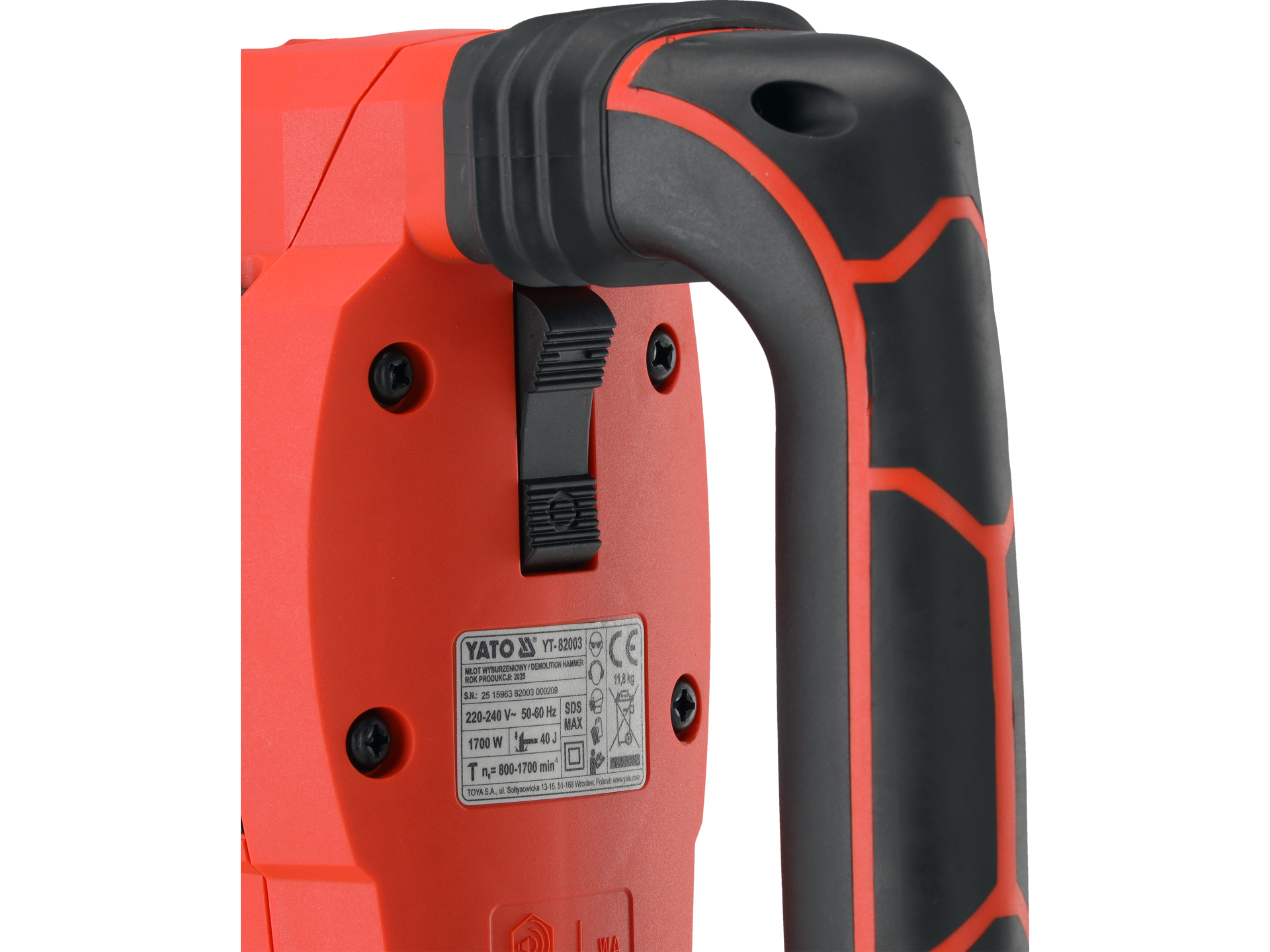 Waga 11,8 kg wynika z wzmocnionej obudowy i masywnego mechanizmu udarowego. Ciężar młota wspomaga siłę udaru – operator nie musi dociskać narzędzia, co zmniejsza obciążenie rąk. Metalowa przekładnia i wzmocnione łożyska wydłużają żywotność w warunkach budowlanych.