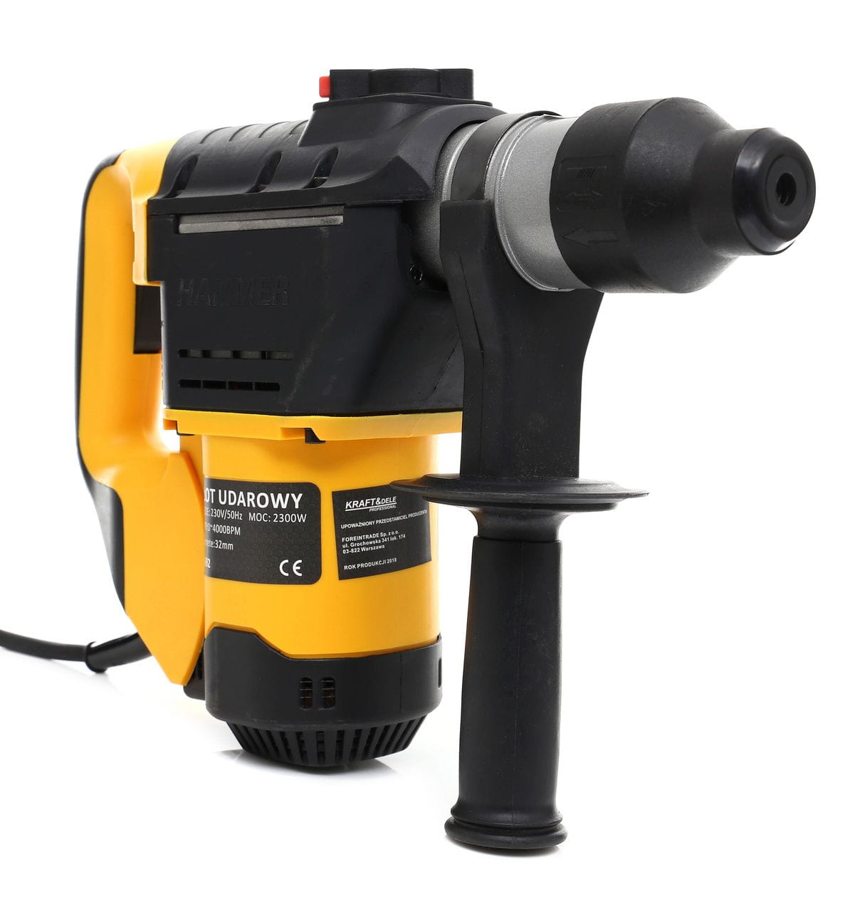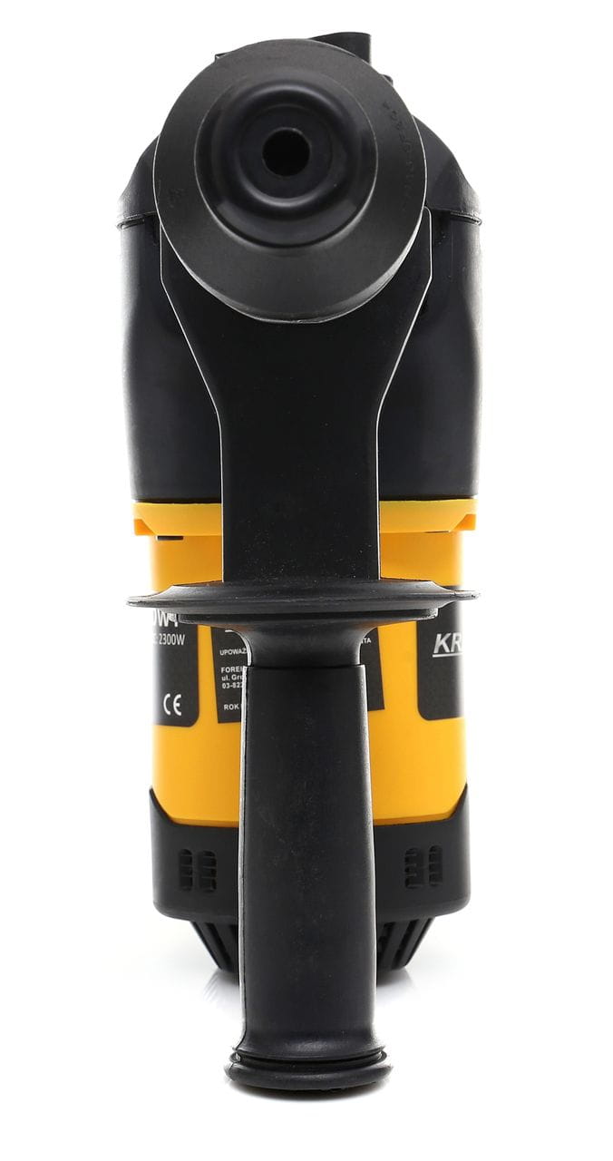 Silnik o mocy 2300 W zapewnia siłę udaru wystarczającą do pracy w betonie i twardych materiałach murowych. Wyższa moc silnika przekłada się bezpośrednio na skuteczność kucia bez konieczności wywierania nadmiernego nacisku przez operatora.