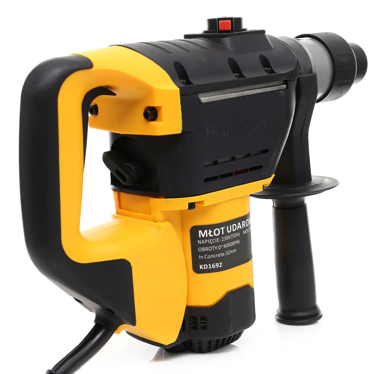 Elektryczny młot udarowy przeznaczony do kucia i skuwania materiałów budowlanych — betonu, cegły, tynku i kamienia. Pracuje wyłącznie w trybie udaru (bez wiercenia), co czyni go narzędziem dedykowanym do prac rozbiórkowych i wykuć instalacyjnych.