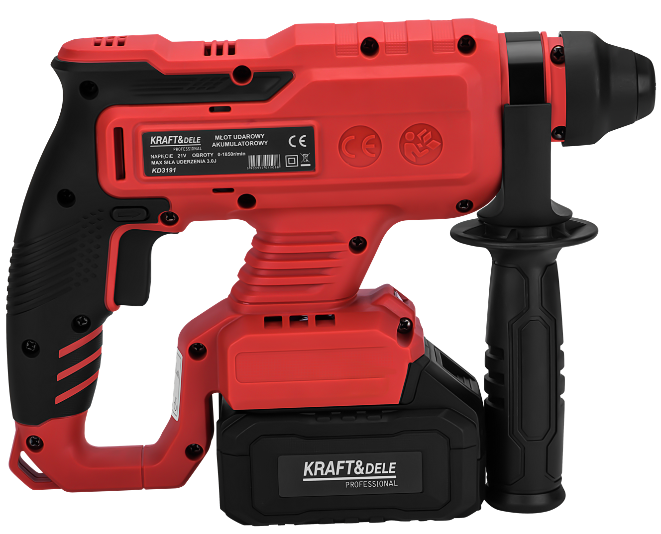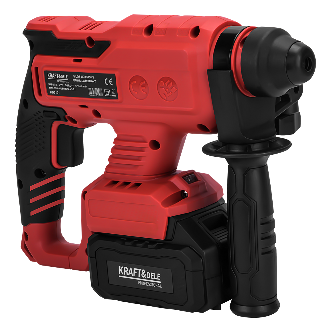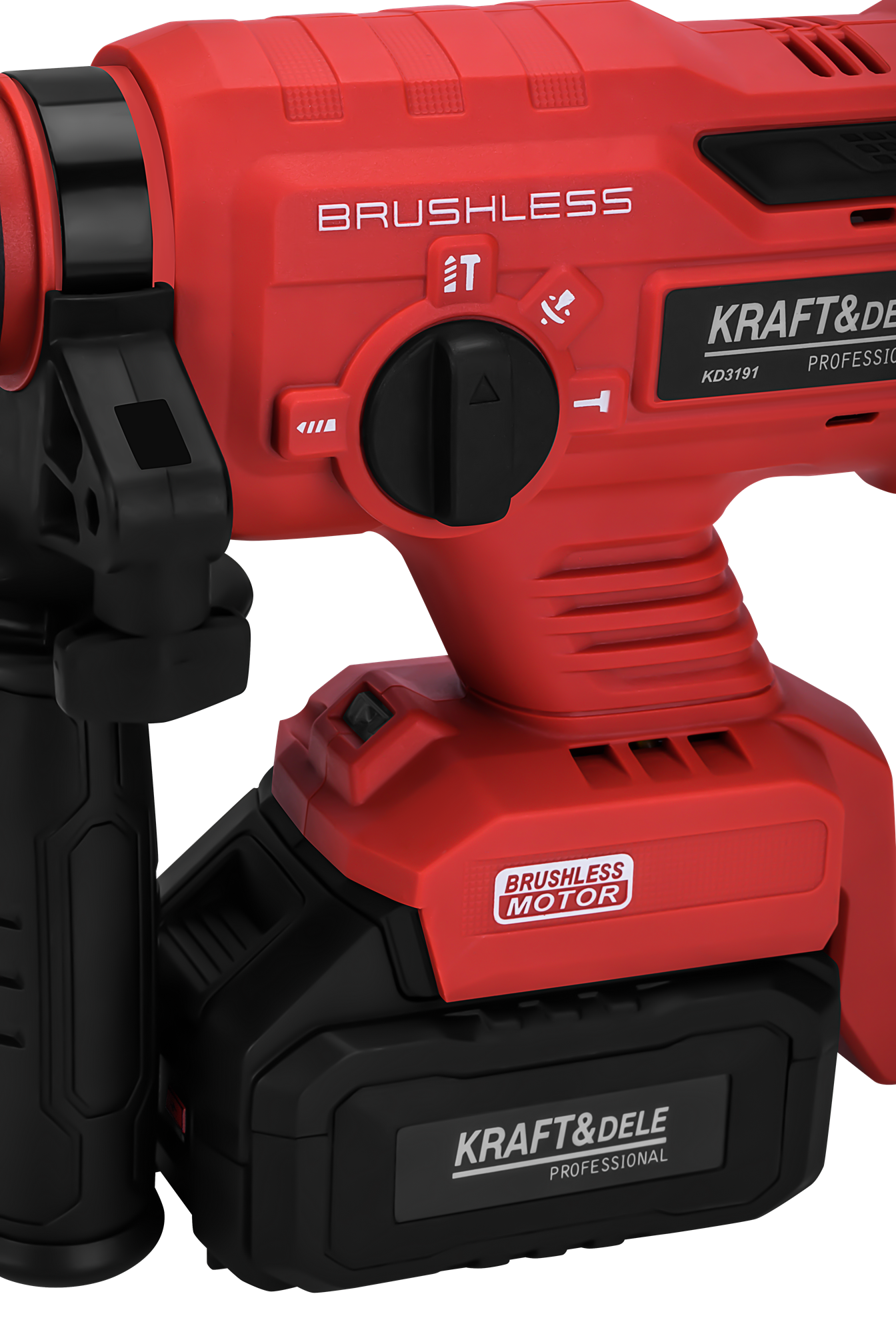 KD3191 to akumulatorowy młot udarowy z silnikiem bezszczotkowym, przeznaczony do wiercenia i kucia w betonie, cegle i kamieniu. Energia udaru na poziomie 3J oraz cztery tryby pracy umożliwiają pracę zarówno przy lżejszych, jak i wymagających zadaniach budowlanych — bez konieczności podłączenia do sieci elektrycznej.