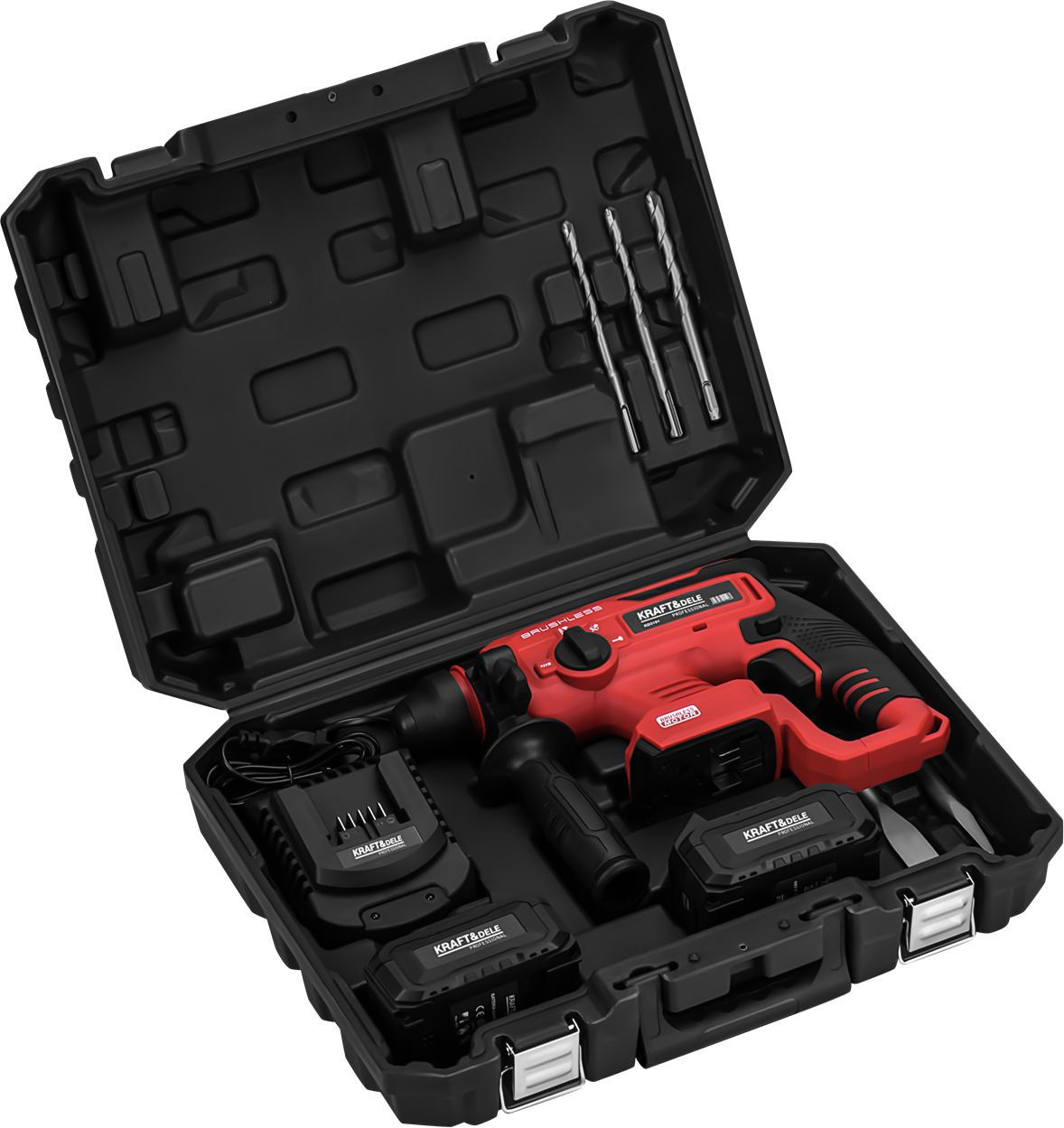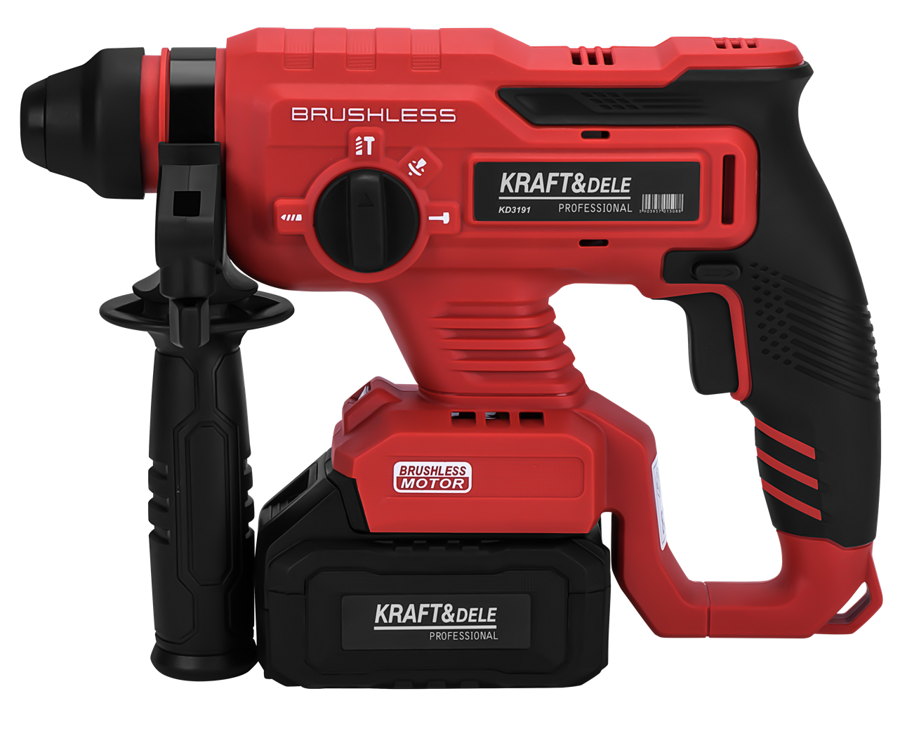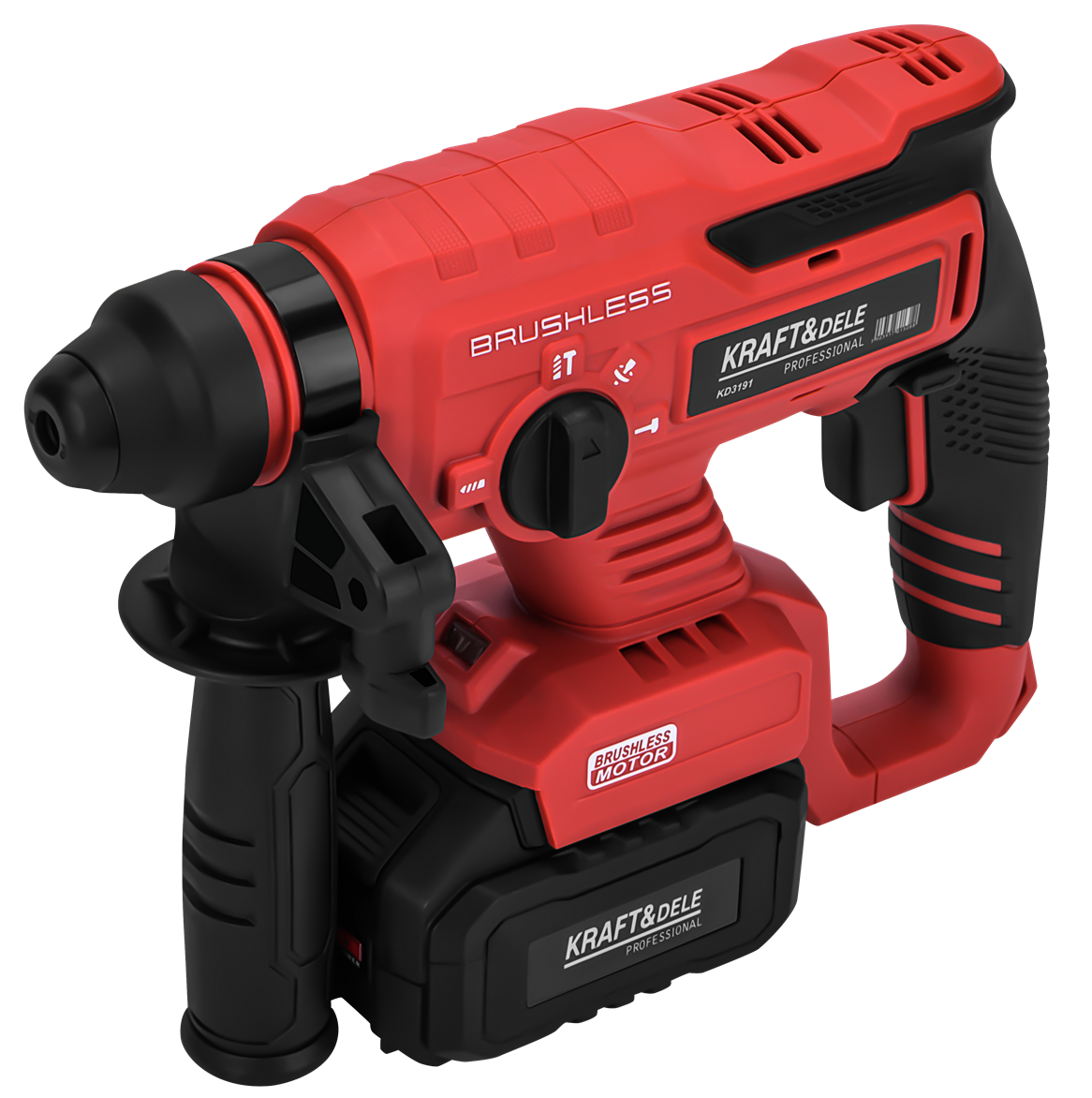 KD3191 to akumulatorowy młot udarowy z silnikiem bezszczotkowym, przeznaczony do wiercenia i kucia w betonie, cegle i kamieniu. Energia udaru na poziomie 3J oraz cztery tryby pracy umożliwiają pracę zarówno przy lżejszych, jak i wymagających zadaniach budowlanych — bez konieczności podłączenia do sieci elektrycznej.
