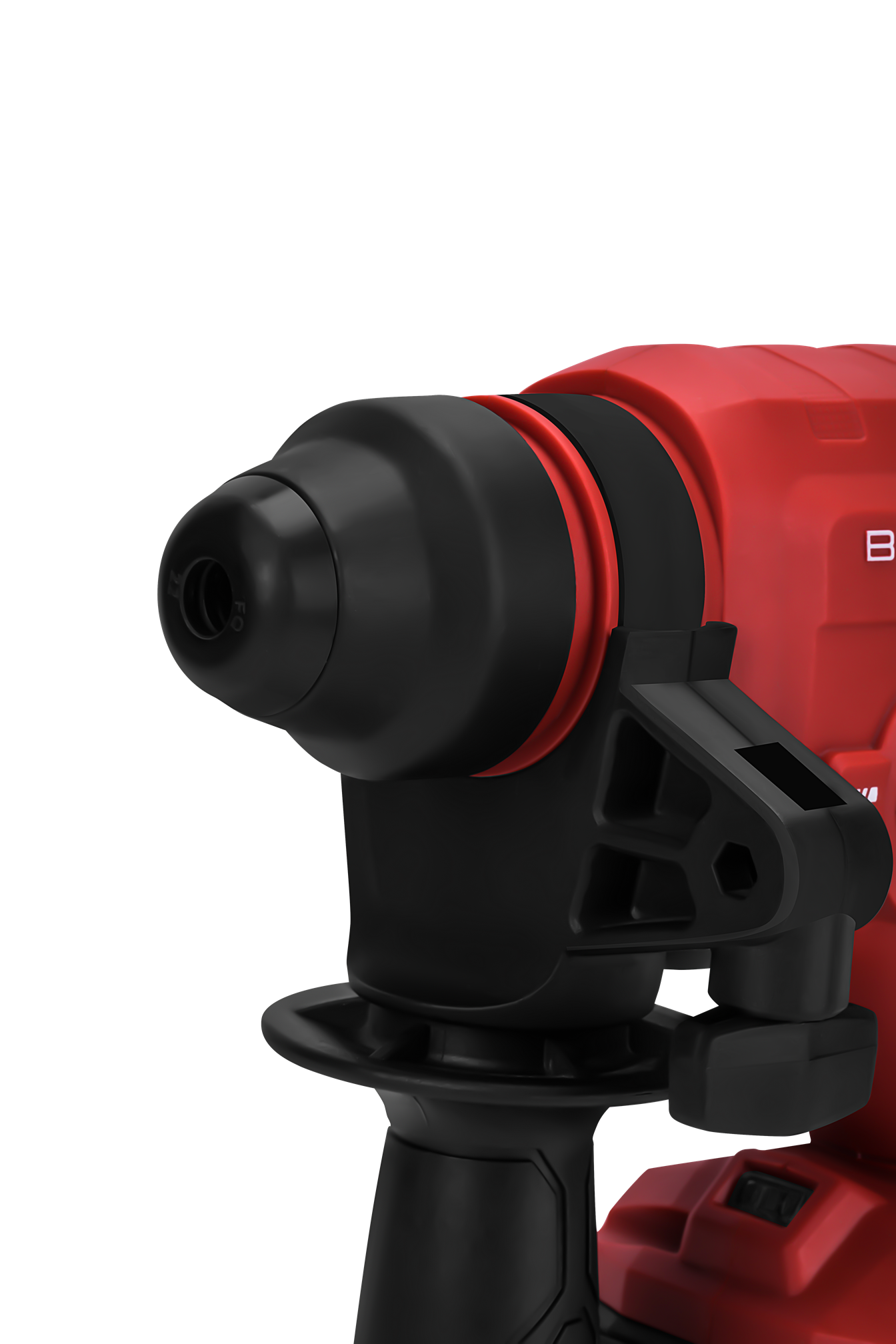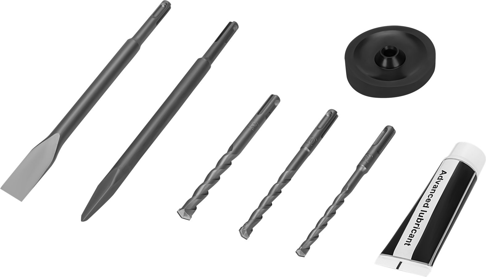 Standard SDS-Plus umożliwia wymianę wierteł i dłut bez użycia klucza — wystarczy nacisnąć blokadę i wyjąć osprzęt. Uchwyt zapewnia jednocześnie pewne mocowanie i swobodę osiowego ruchu narzędzia, co jest niezbędne przy pracy udarowej.