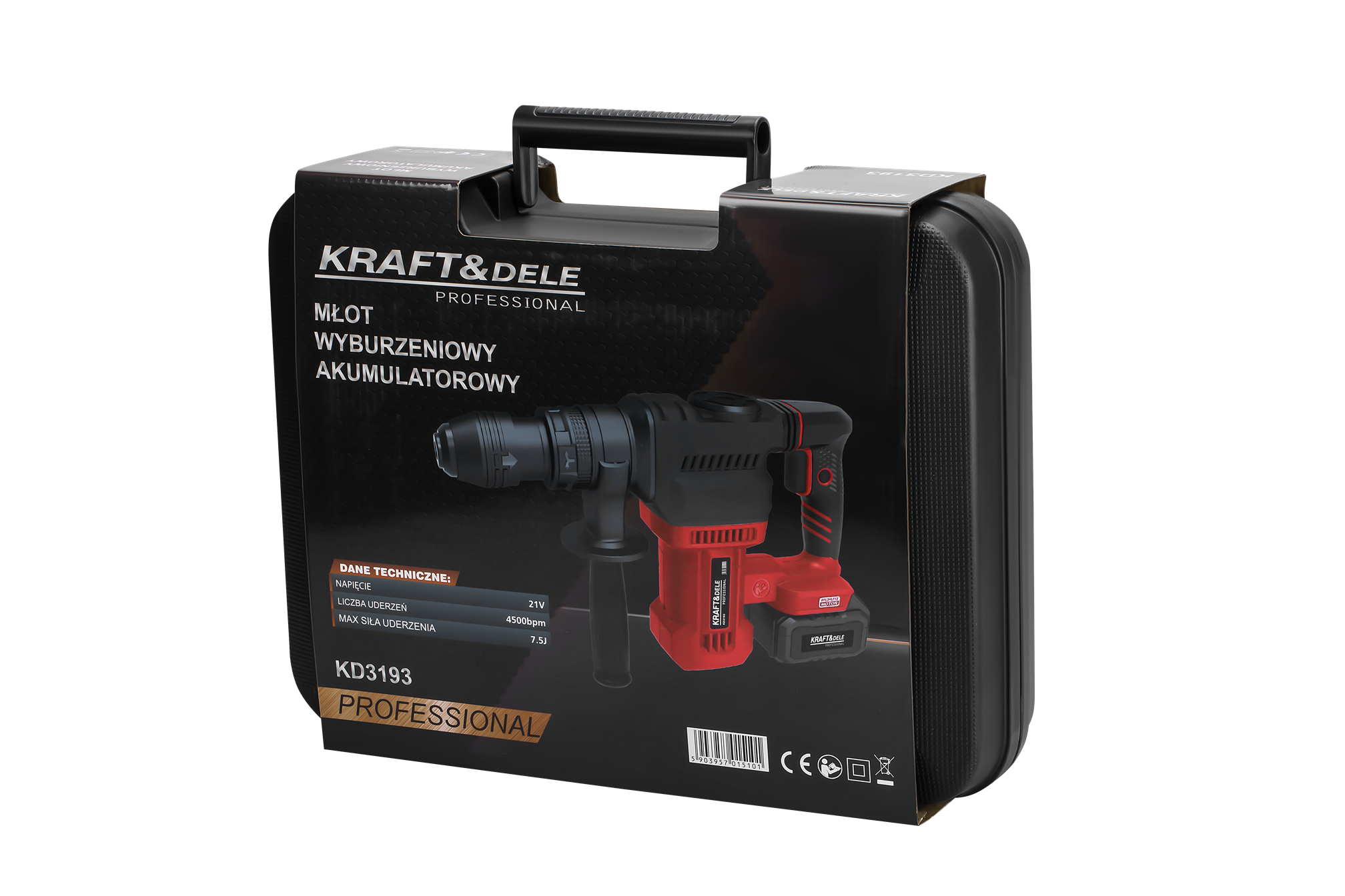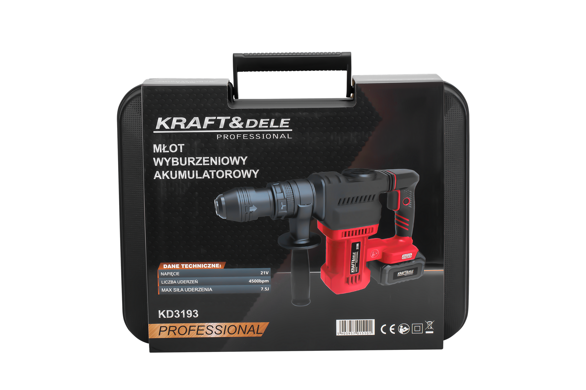 KD3193 to akumulatorowy młot udarowy wyposażony w silnik bezszczotkowy, przeznaczony do ciężkich prac rozbiórkowych, kucia i wykuwania w betonie, cegle oraz kamieniu. Brak kabla zasilającego w połączeniu z energią uderzenia 7,5J pozwala na swobodną pracę zarówno na budowie, jak i w trudno dostępnych miejscach bez dostępu do sieci elektrycznej.