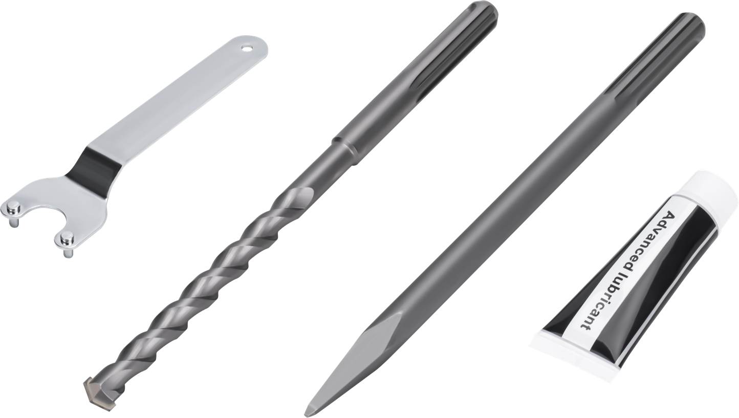 Standard SDS-Plus umożliwia montaż i demontaż wierteł oraz dłut bez użycia klucza — wystarczy wsunąć trzpień i obrócić tuleję blokującą. Osprzęt SDS-Plus jest powszechnie dostępny w ofercie wielu producentów, co ułatwia dobór wierteł koronowych, dłut płaskich, szpiczastych i innych końcówek specjalistycznych.