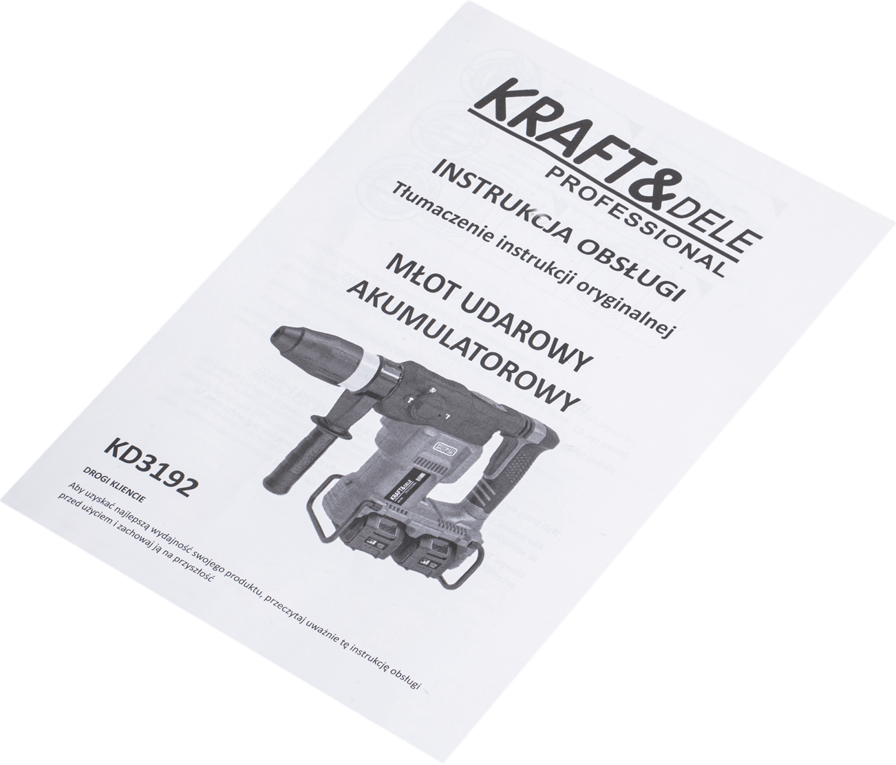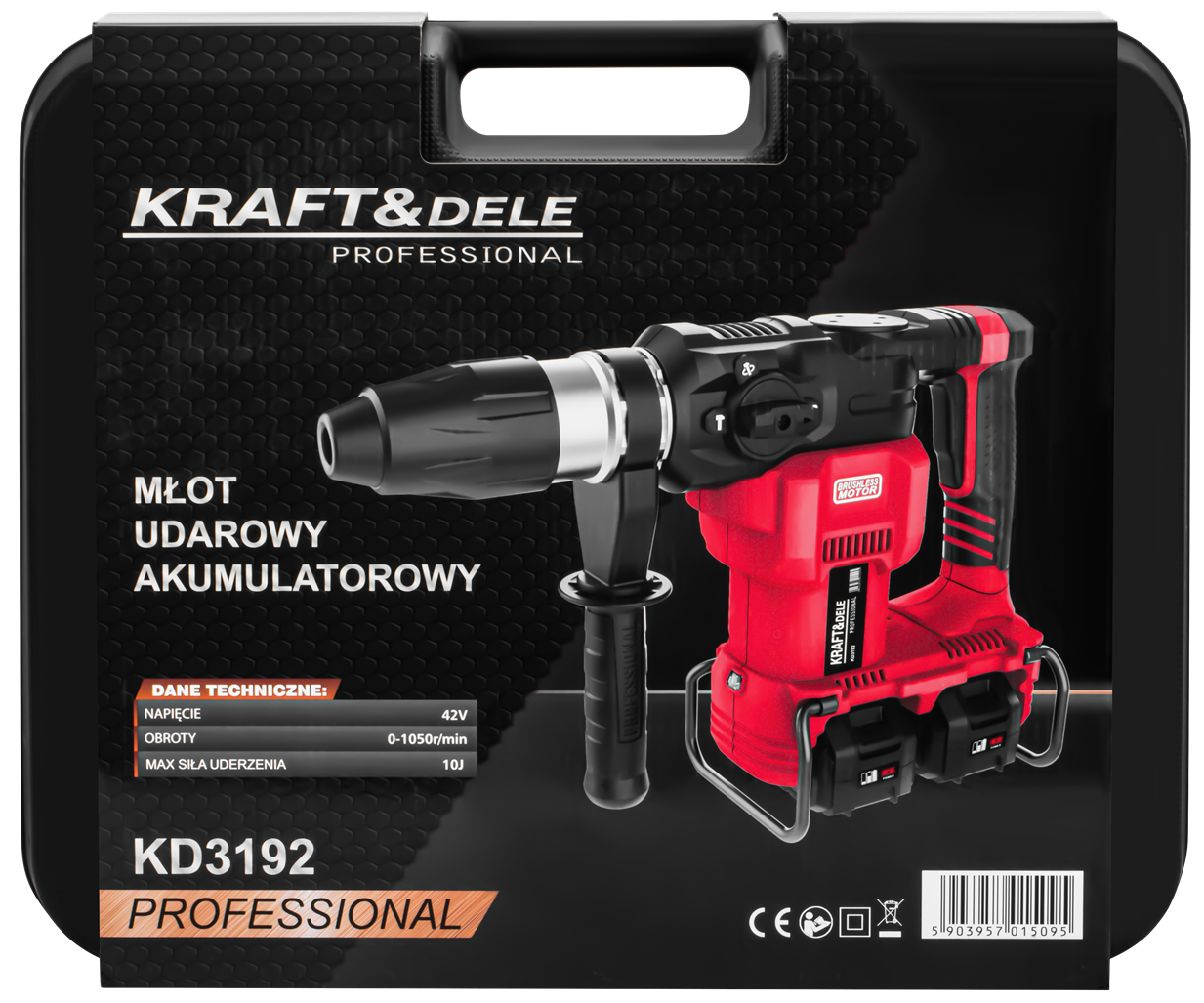 Młot udarowy KD3192 • 2 akumulatory 21V / 4Ah • Szybka ładowarka • Wiertło SDS-Plus • Końcówka do kucia (dłuto) • Instrukcja obsługi w języku polskim