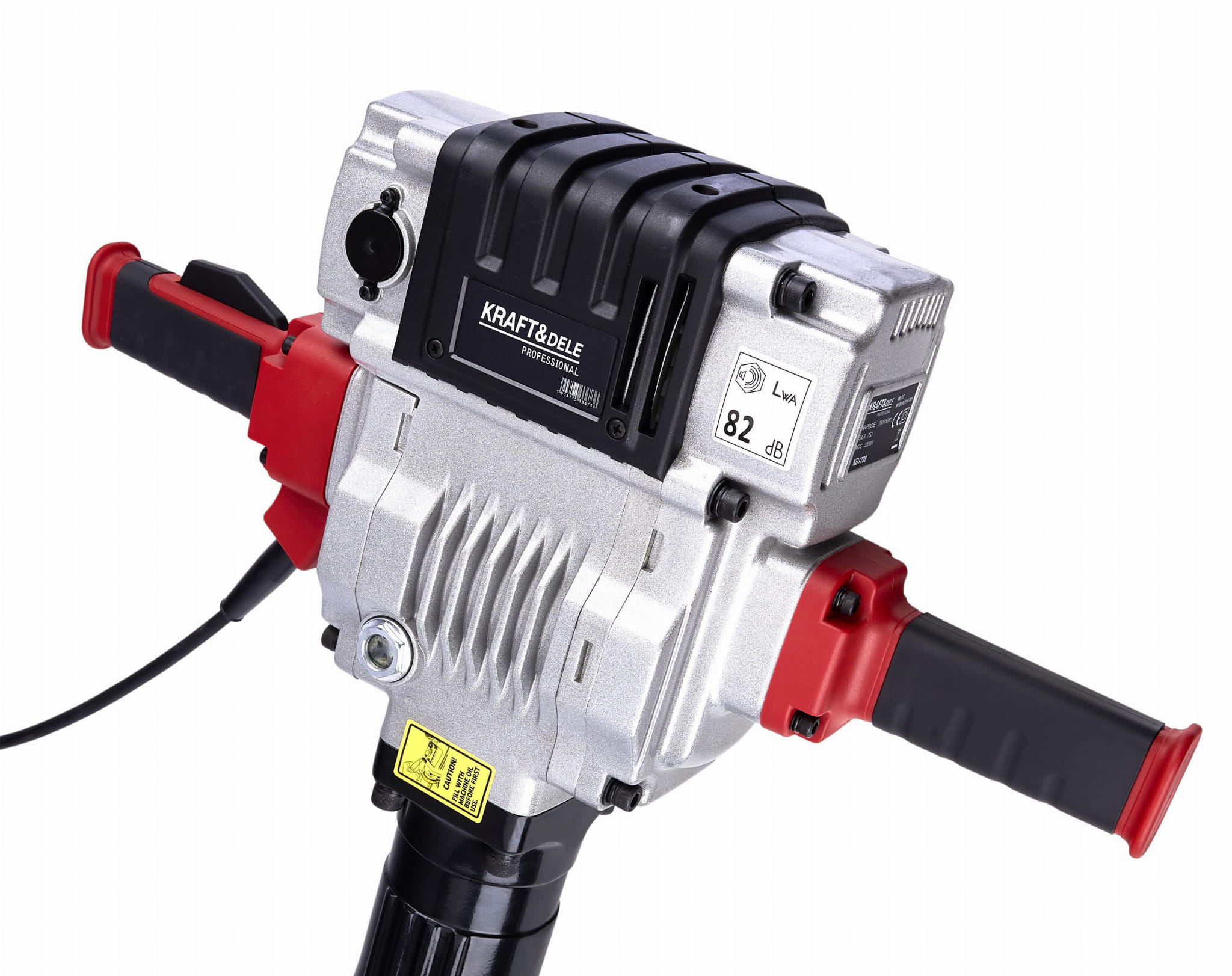 Uchwyt umieszczony w przedniej części obudowy pozwala na oburęczne prowadzenie narzędzia. Przekłada się to na lepszą kontrolę kierunku uderzenia, zmniejszenie drgań przenoszonych na nadgarstki i bardziej równomierne rozłożenie wysiłku podczas długotrwałej pracy.