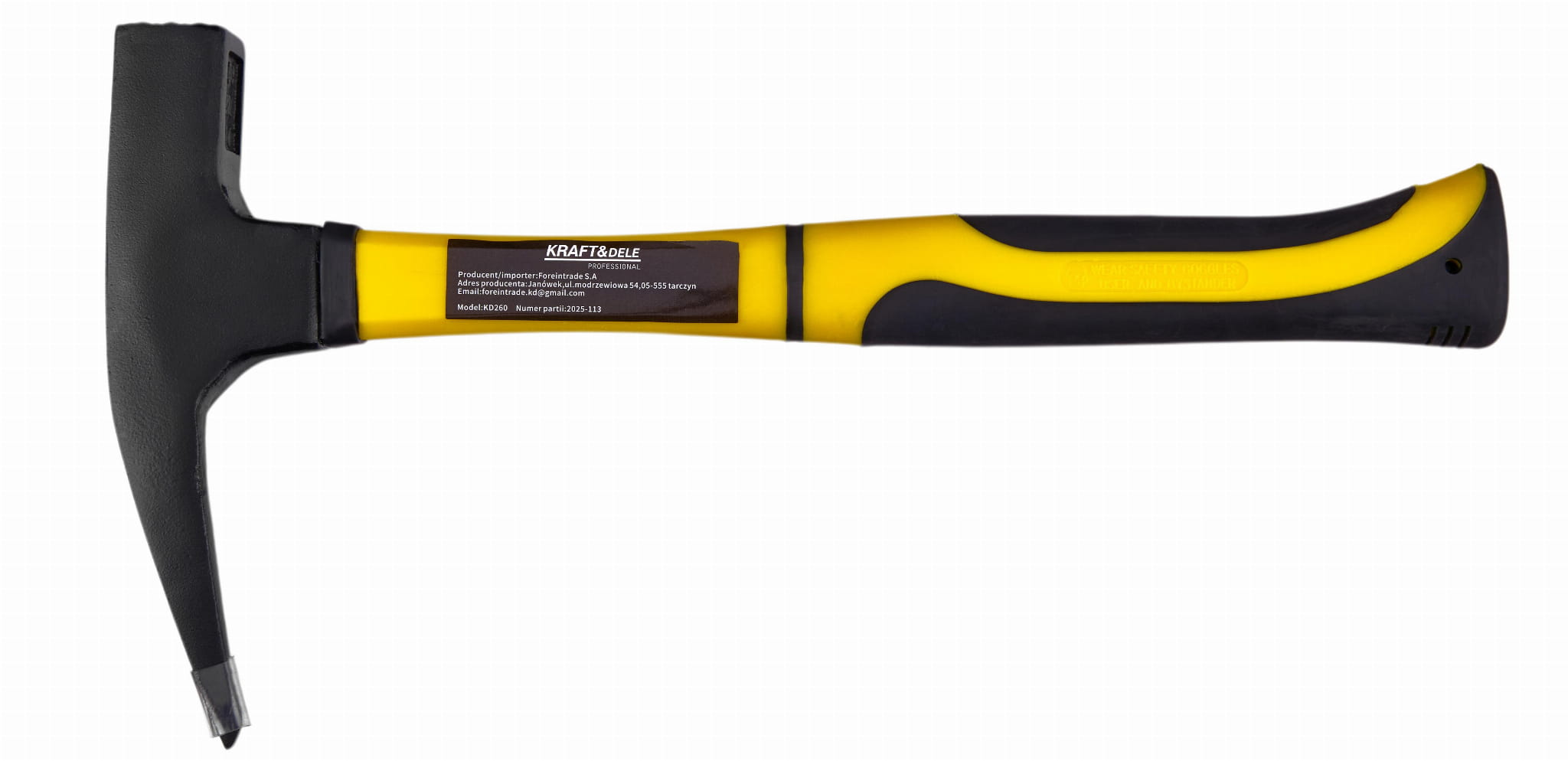 Młotek ciesielski KD260 marki Kraft&Dele to narzędzie z trzonkiem wykonanym z włókna szklanego (fiberglass), przeznaczone do prac stolarskich, ciesielskich oraz ogólnobudowlanych. Masa głowicy 600 g zapewnia skuteczne wbijanie gwoździ przy umiarkowanym wysiłku, a wbudowany magnes ułatwia pozycjonowanie gwoździa przed uderzeniem.