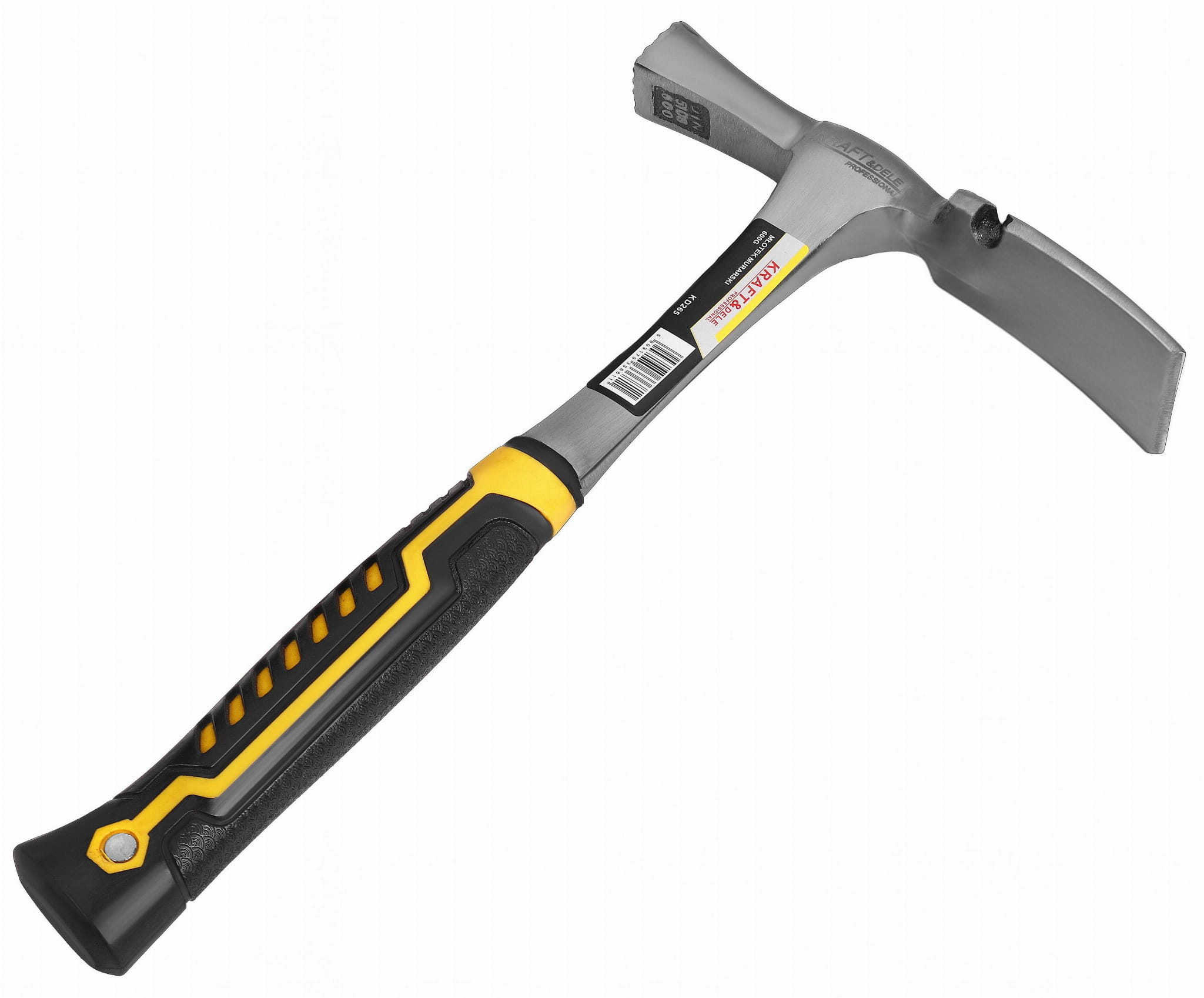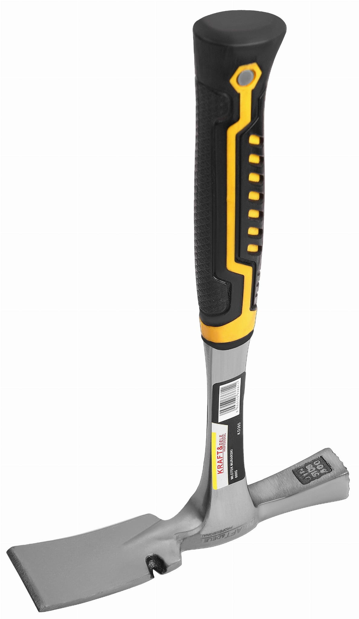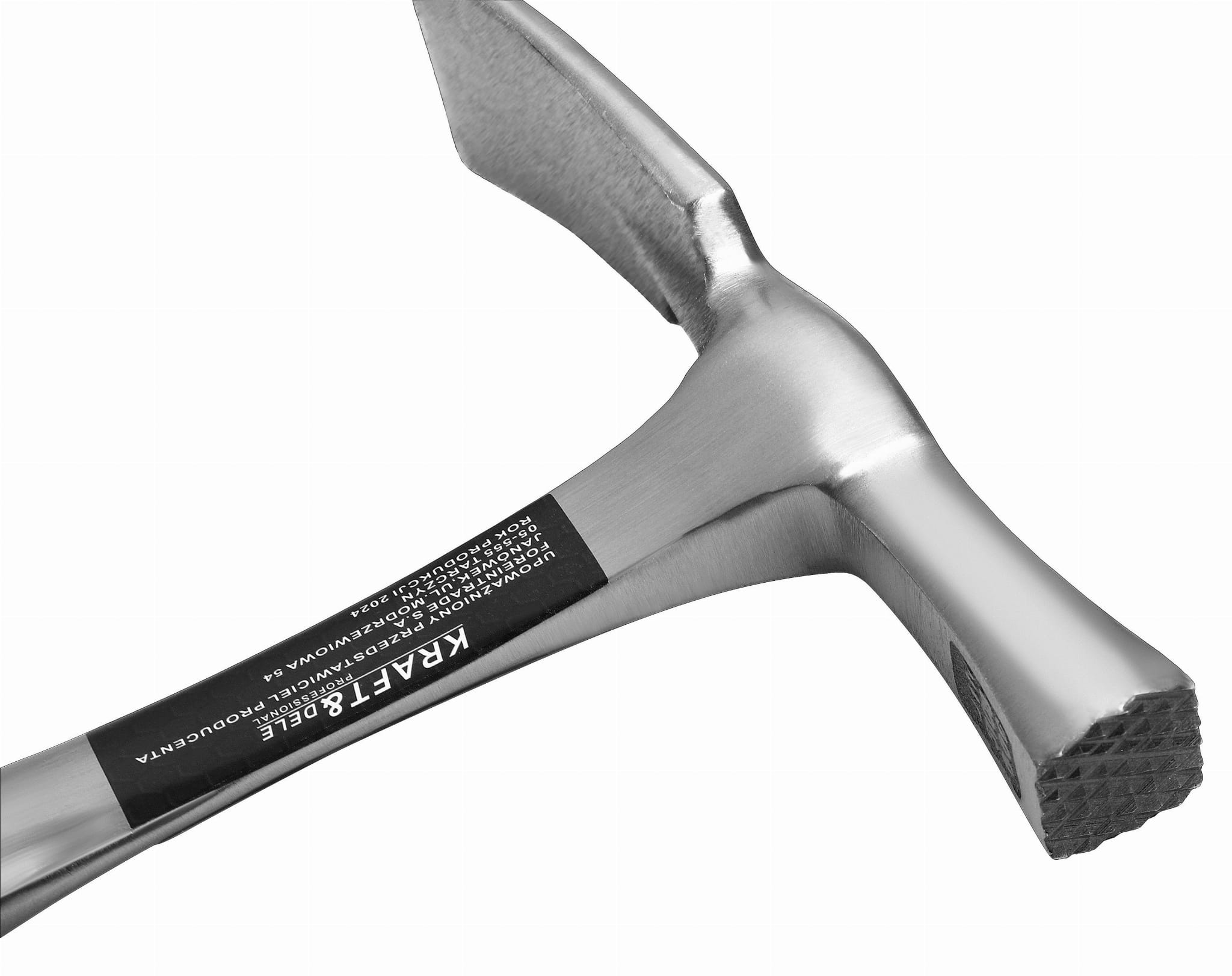 Boczne wcięcie w kształcie litery V umożliwia chwytanie i wyciąganie gwoździ bez potrzeby użycia dodatkowego narzędzia. Szeroka, ostro zakończona strona obucha jest przystosowana do skuwania zaprawy, rozłupywania cegieł oraz precyzyjnego kucia w materiałach budowlanych.