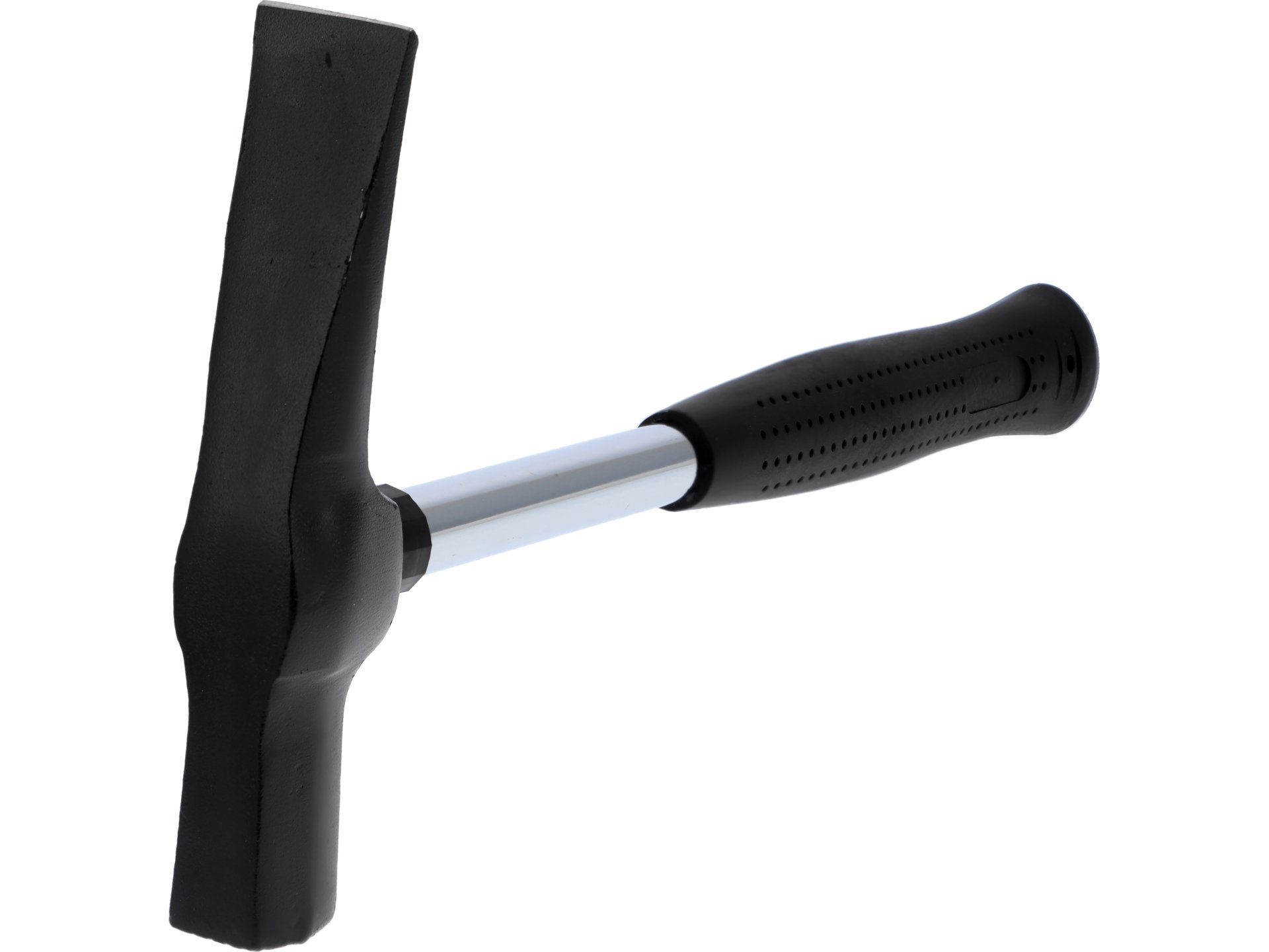 Młotek murarski typu reńskiego o masie 600g z trzonkiem stalowym i antypoślizgową osłoną. Narzędzie przeznaczone do prac murarskich, rozbiórkowych i wykończeniowych, certyfikowane TUV/GS.