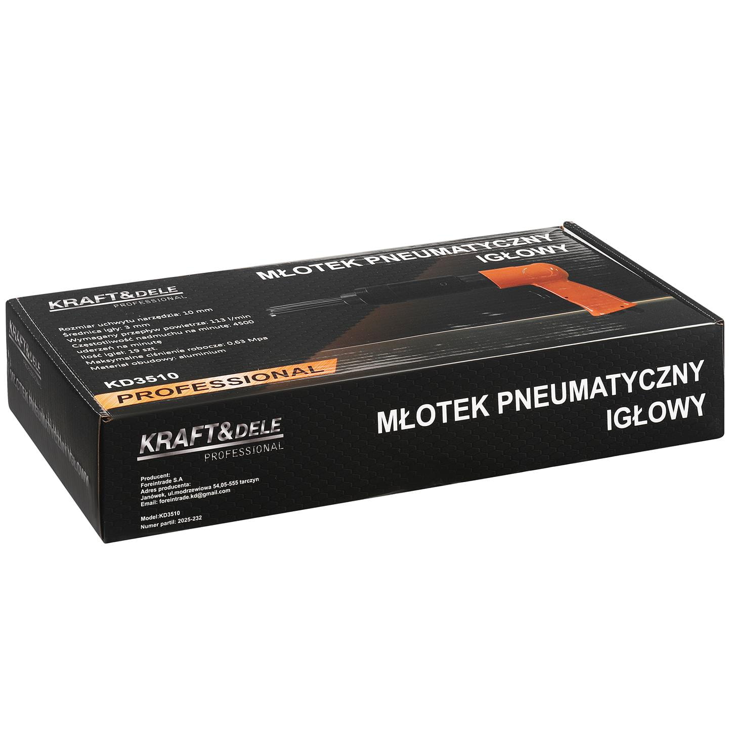 | Zawartość zestawu | Młotek pneumatyczny igłowy, instrukcja obsługi (PL) |