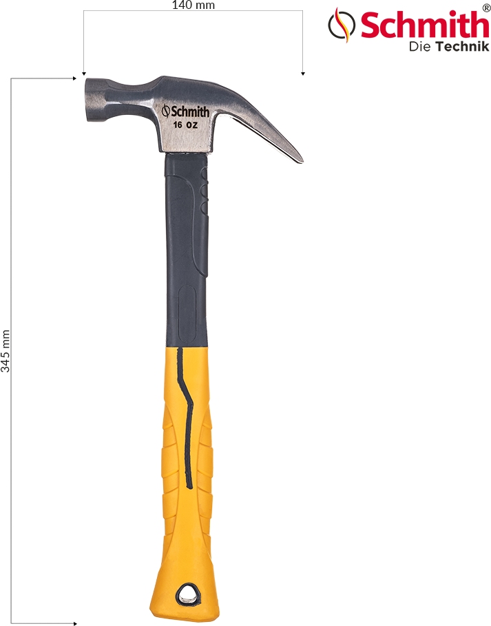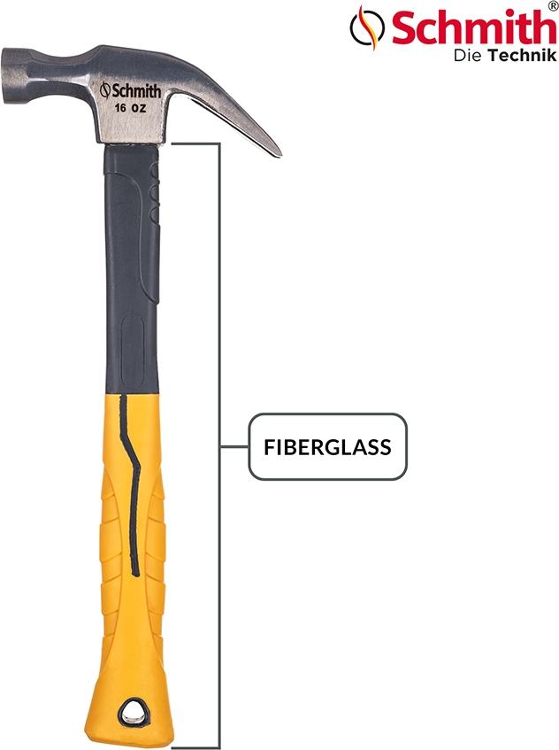 Część robocza wykonana jest ze stali. Płaska, polerowana powierzchnia czołowa obucha służy do wbijania, natomiast jego druga strona została wyposażona w dwa wyprofilowane pazury do podważania elementów oraz do usuwania gwoździ i zszywek. Trzonek z włókna szklanego skutecznie tłumi drgania powstające podczas uderzeń. Rękojeść pokryta antypoślizgową gumą o ergonomicznym kształcie pozwala na zachowanie kontroli nad narzędziem.