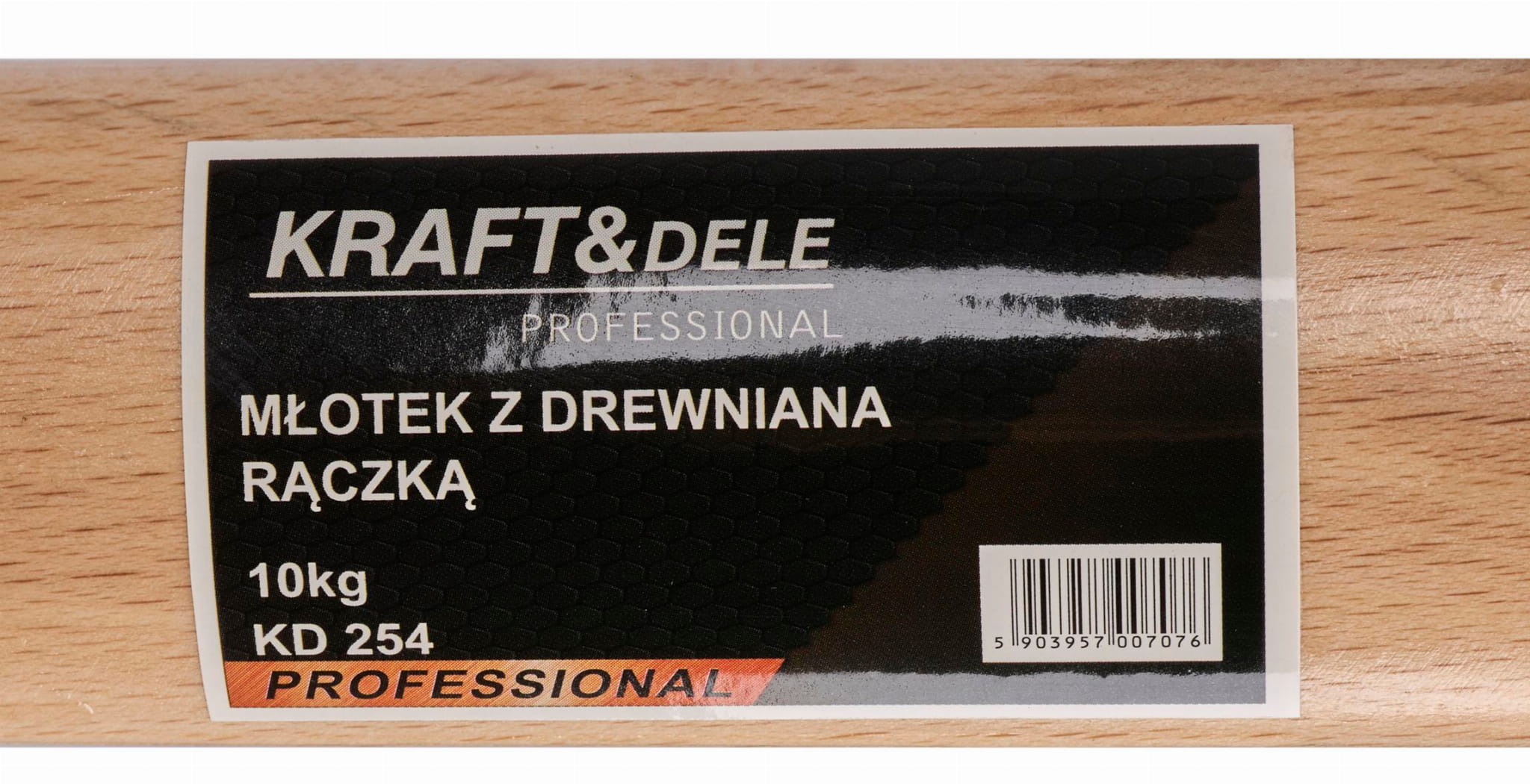 KD254 to ciężki młot rozbiórkowy polskiej marki Kraft&Dele, przeznaczony do prac wymagających znacznej siły uderzenia. Trzonek wykonano z drewna o dwuwarstwowej budowie — wewnętrzny rdzeń zapewnia wytrzymałość mechaniczną, a zewnętrzna warstwa z drewna impregnowanego chroni narzędzie przed wilgocią i zmiennymi warunkami atmosferycznymi.
