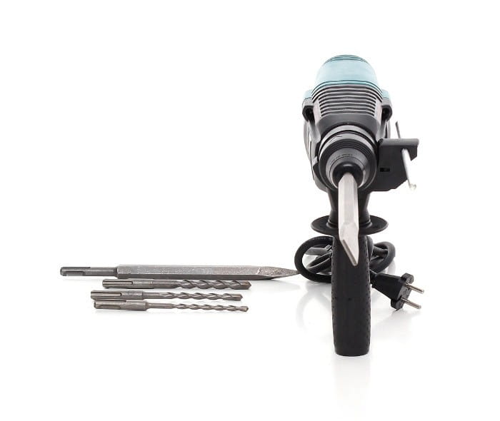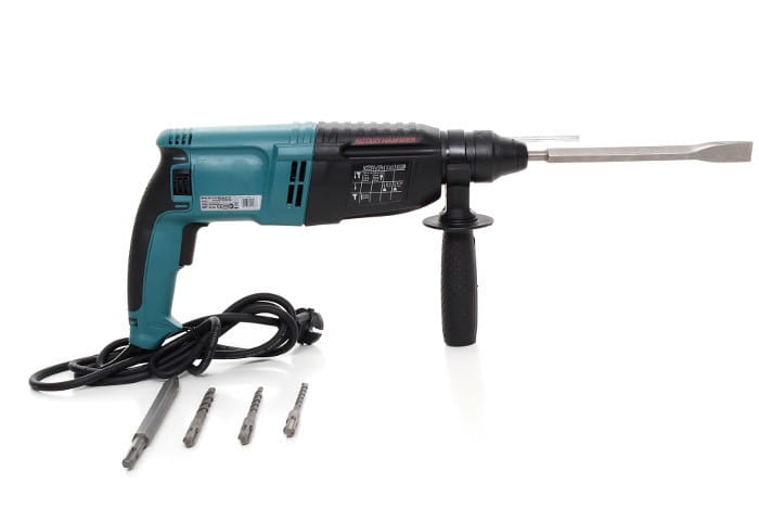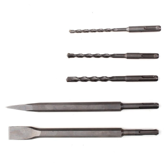 Urządzenie współpracuje ze standardowymi narzędziami w systemie SDS+ (trzpień 10 mm, rowki 18 mm). Do dłutowania i kucia stosuje się narzędzia SDS+, nie SDS-max — przed zakupem dodatkowych narzędzi należy zweryfikować oznaczenie systemu mocowania.