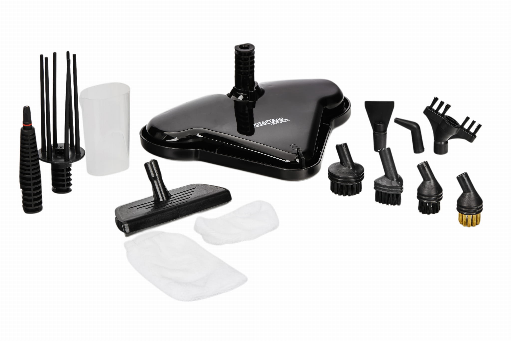 Nakładka trójkątna do czyszczenia dywanów, szmatka z mikrowłókna na głowicę, miarka ilości wody, igła do czyszczenia, dysza, szczoteczka nylonowa, wąż przedłużający, nakładka do ścierki do kurzu, nakładka do czyszczenia ubrań, nakładka do czyszczenia okien, szmatka do czyszczenia okien, tekstylna nasadka do czyszczenia ubrań, ścierka do kurzu.