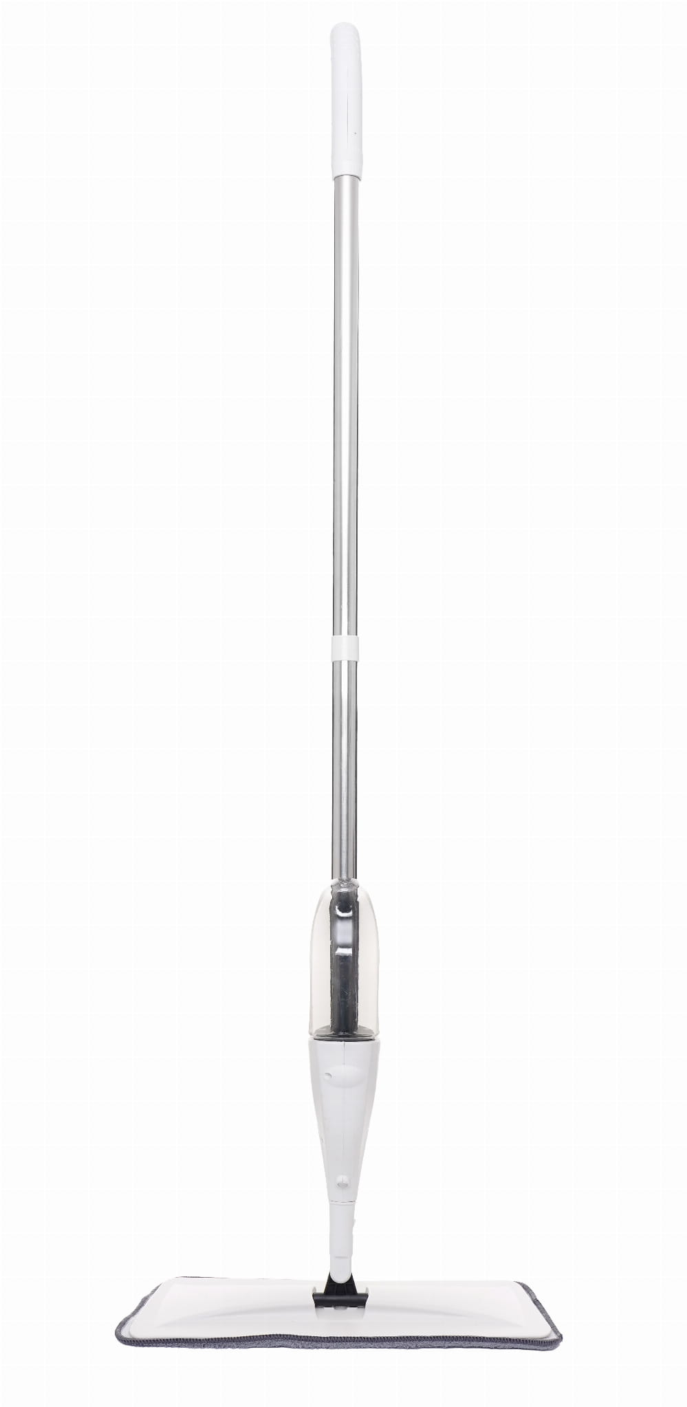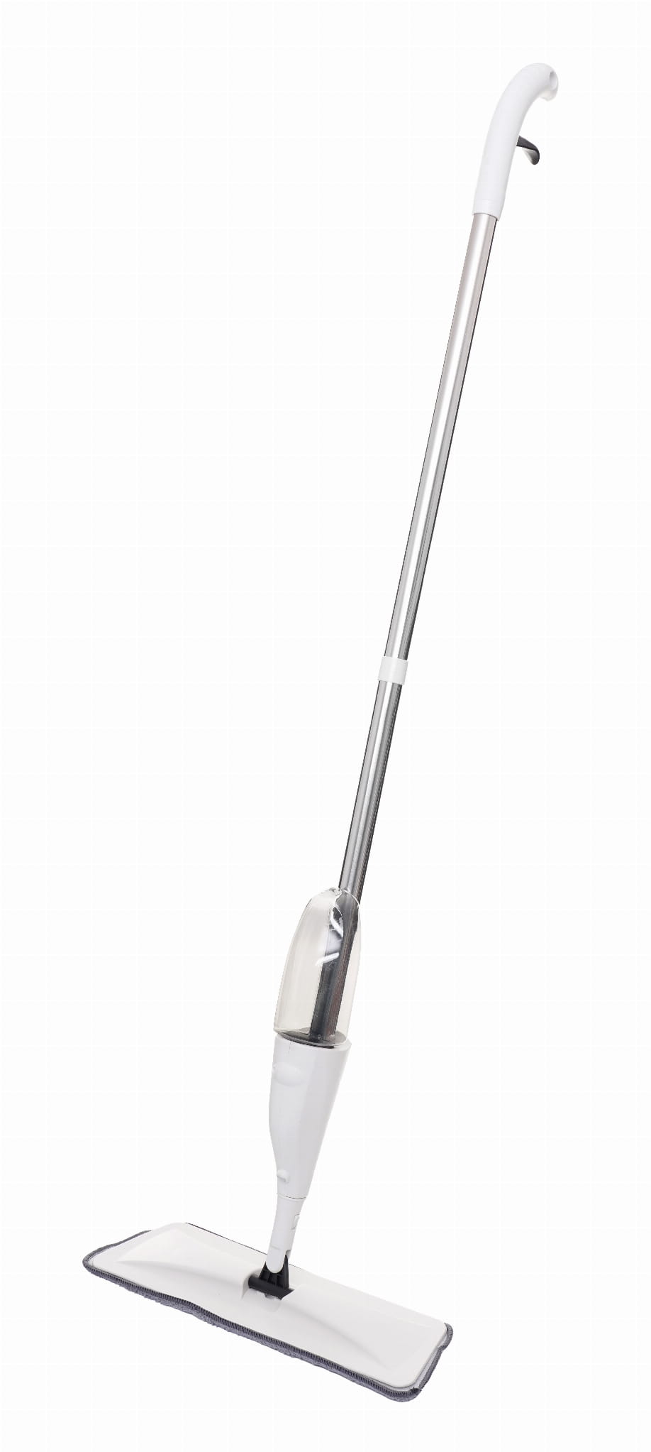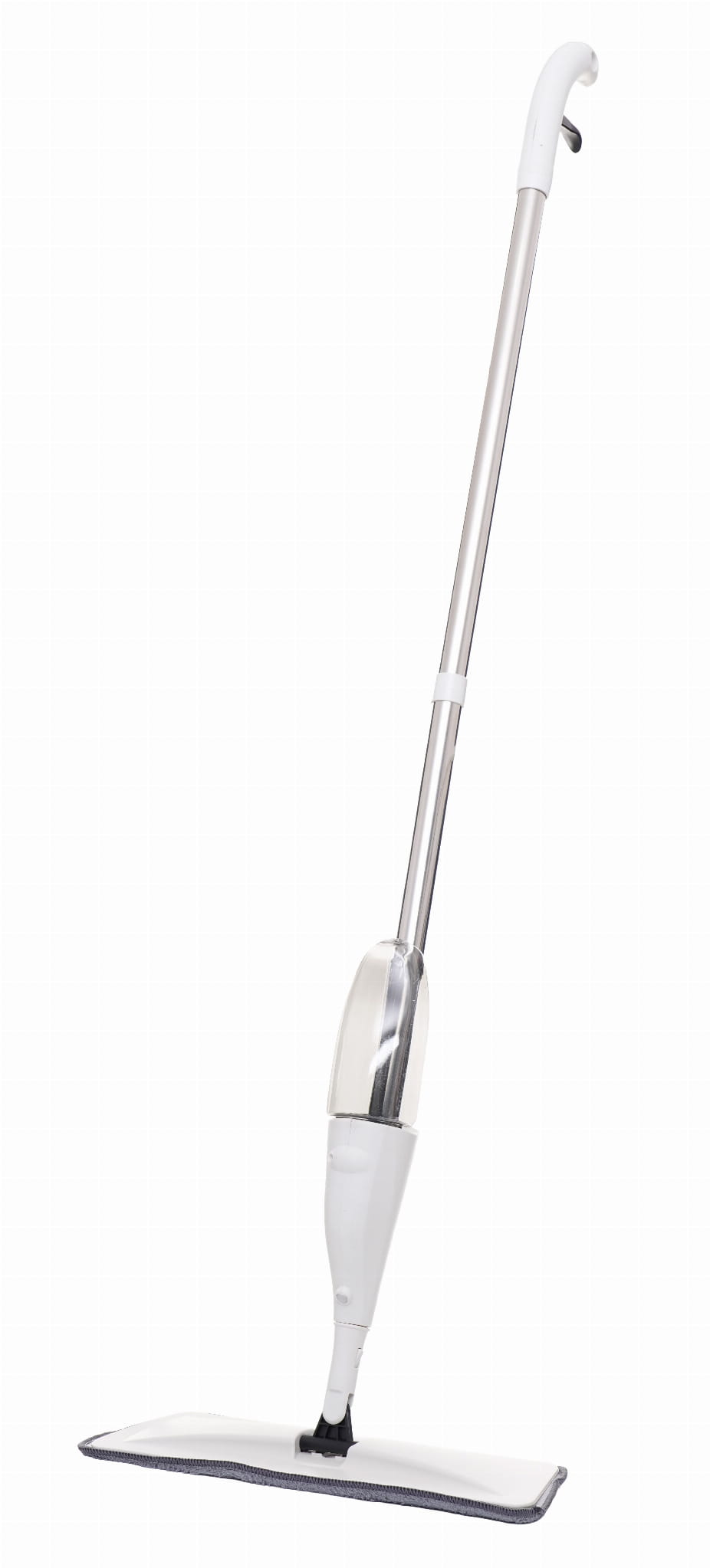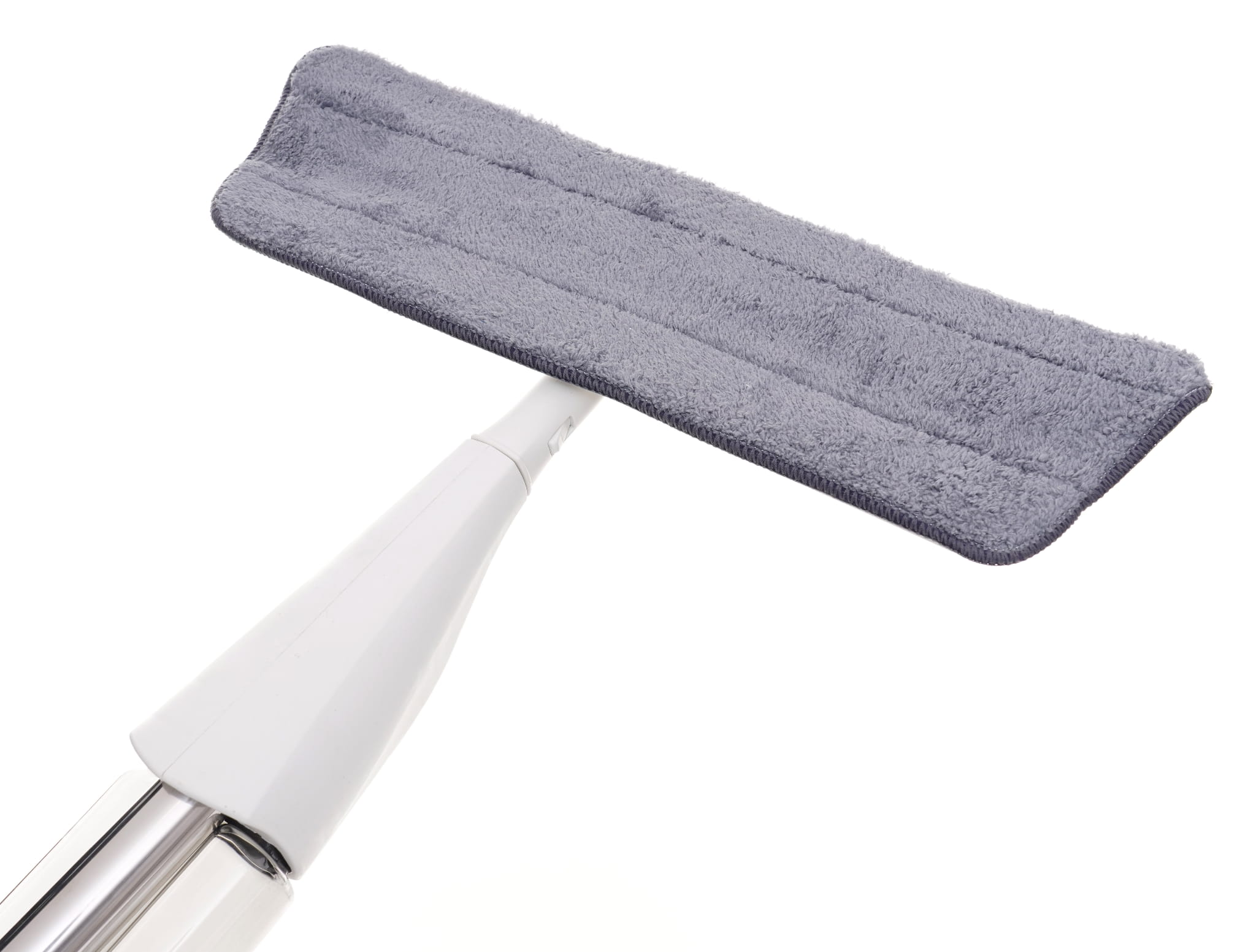 Przycisk uruchamiający natrysk znajduje się na rękojeści. Wbudowana pompka wytwarza szeroką mgiełkę pokrywającą powierzchnię przed głowicą mopa, co pozwala równomiernie zwilżyć podłogę bez jej nadmiernego moczenia.