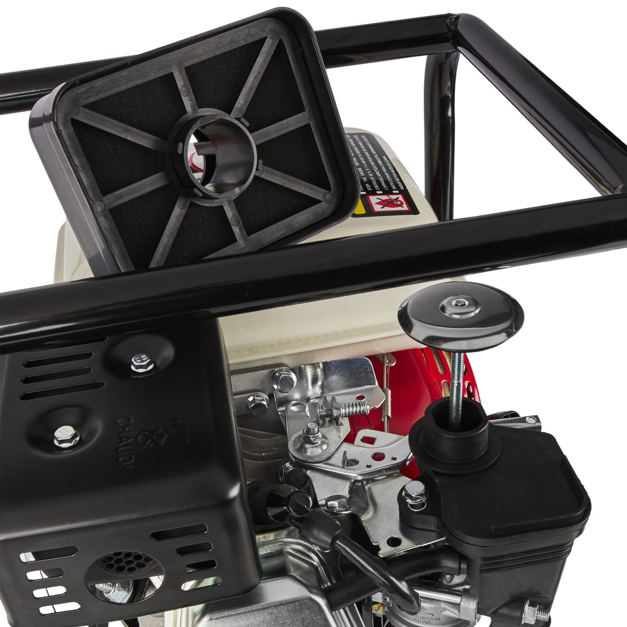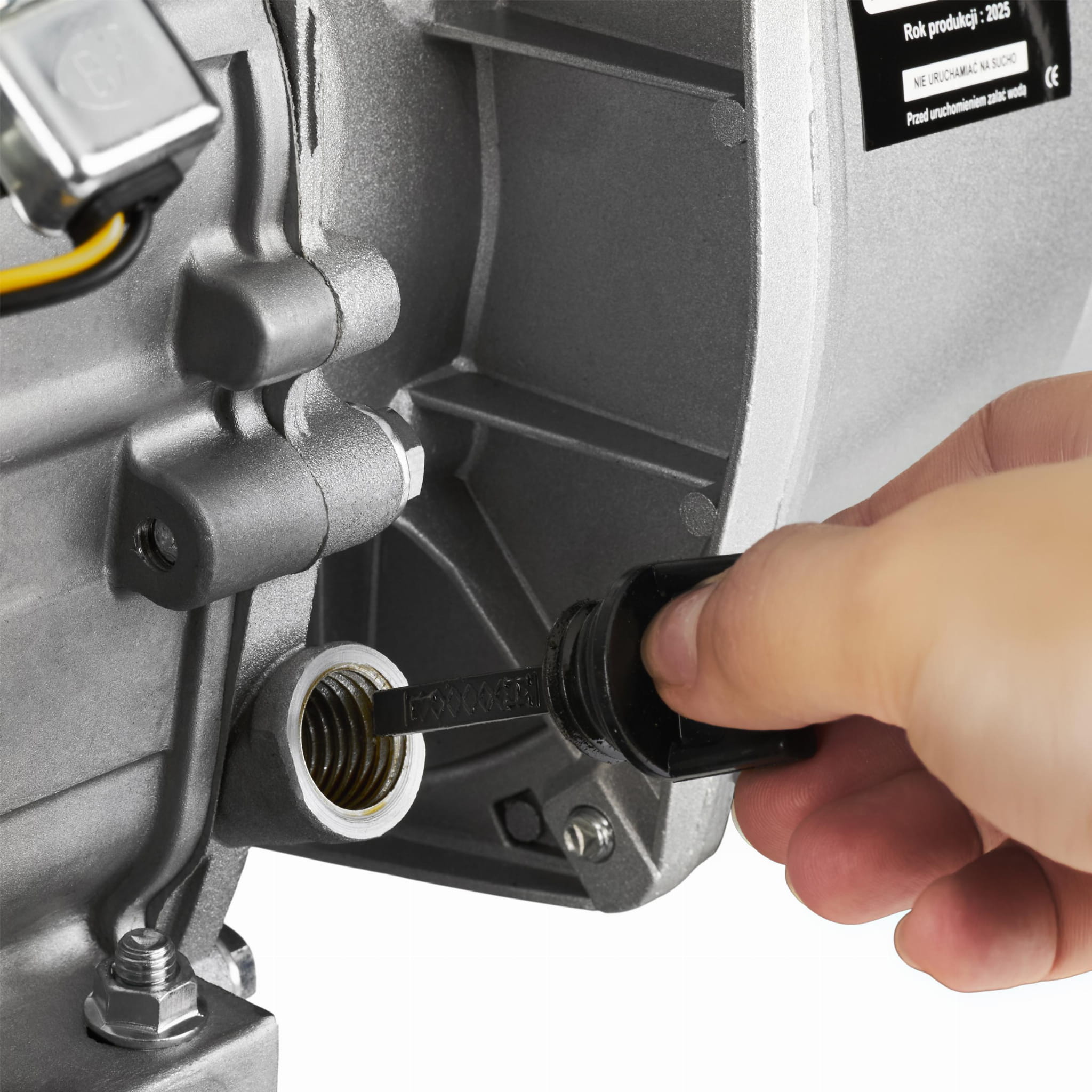 Zmniejszone wibracje ograniczają zmęczenie materiałów i operatora podczas wielogodzinnej pracy. Rozrusznik mechaniczny (linkowy) działa niezależnie od zewnętrznych źródeł zasilania — uruchomienie pompy jest możliwe w każdych warunkach terenowych.