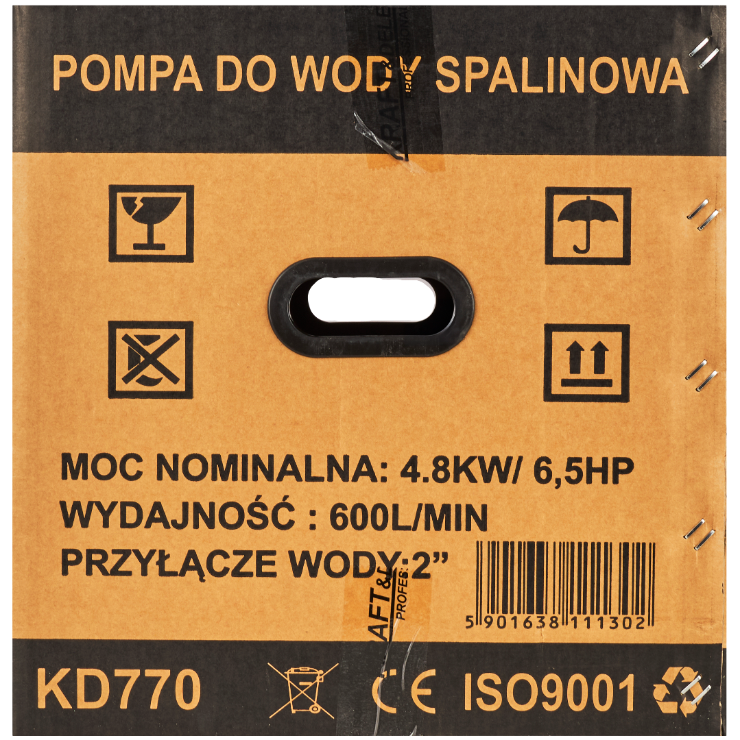 KD770 to motopompa spalinowa z jednocylindrowym silnikiem czterosuwowym chłodzonym powietrzem, przeznaczona do przepompowywania wody czystej i użytkowej w miejscach bez dostępu do sieci elektrycznej. Przyłącza o średnicy 2" (50 mm) i wydajność sięgająca 600 l/min pozwalają na szybkie opróżnianie zbiorników, zalanych pomieszczeń lub nawadnianie większych powierzchni.