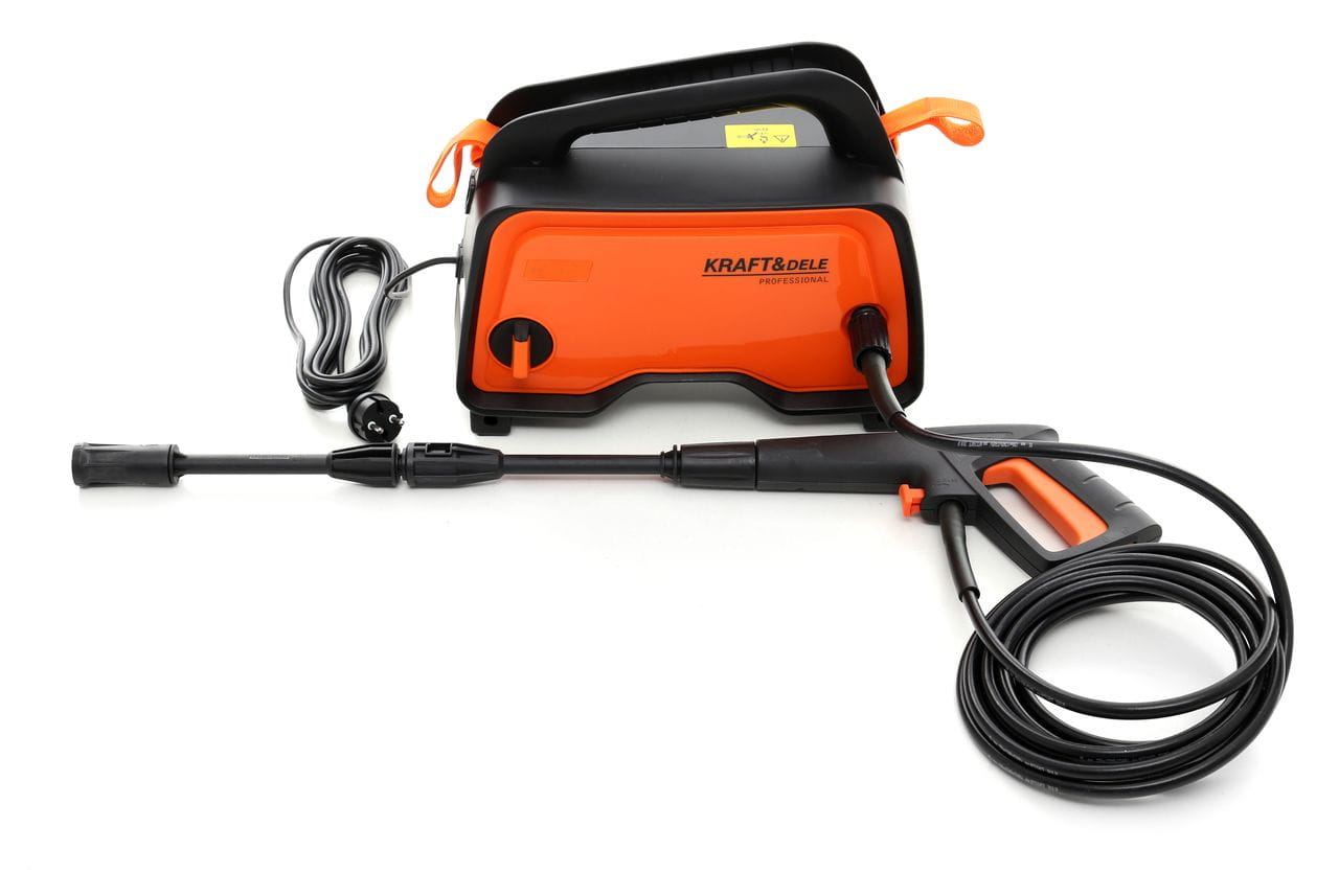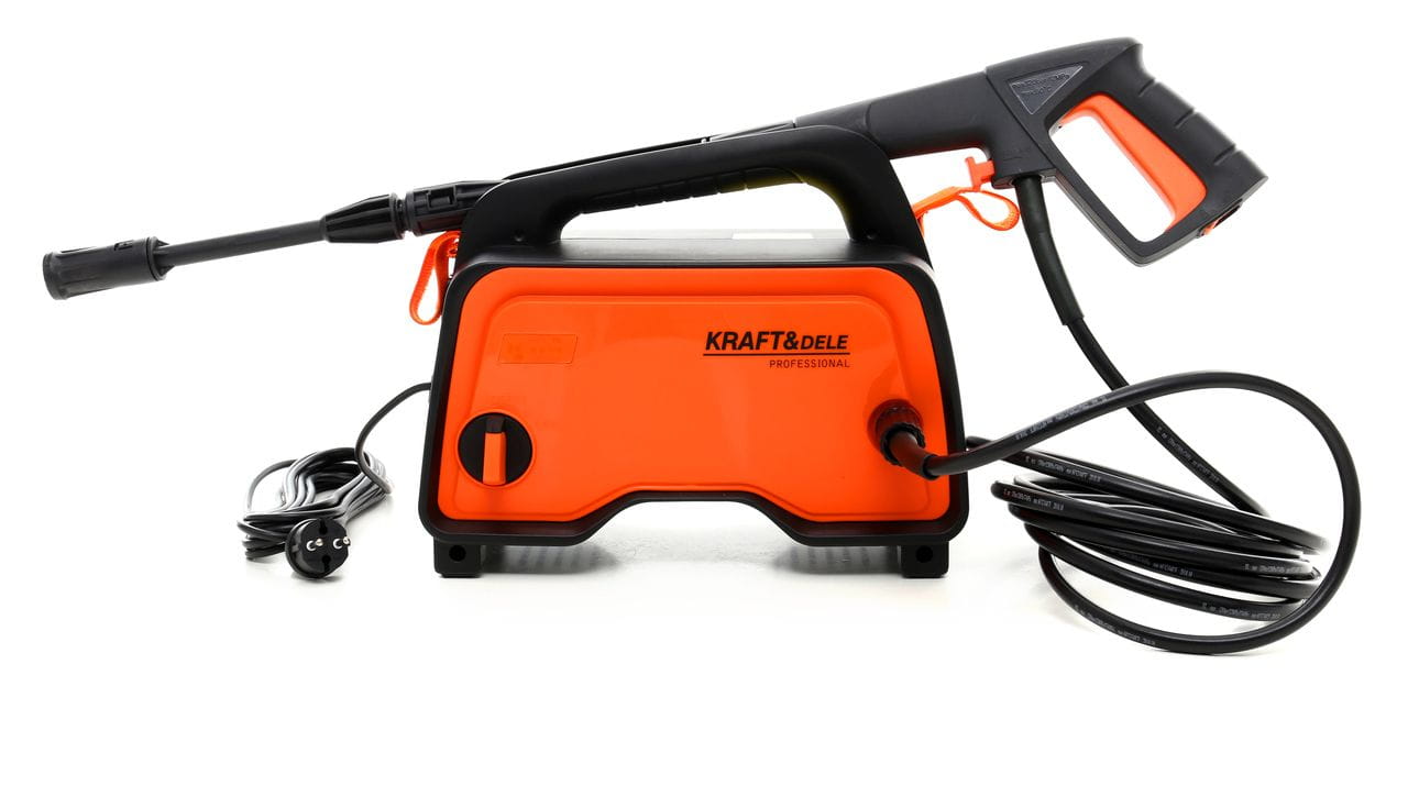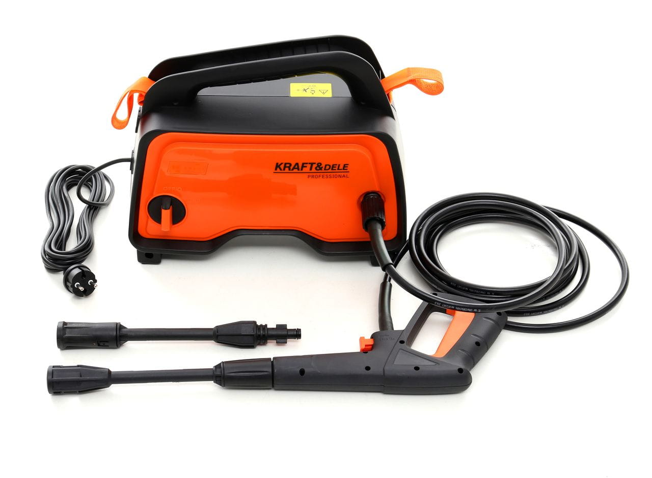 KD437 to elektryczna myjka ciśnieniowa marki KraftDele przeznaczona do czyszczenia powierzchni zewnętrznych i elementów wymagających usunięcia zaschniętego brudu, tłuszczu lub glonów. Zasilana z sieci 230V, nadaje się do użytku domowego i warsztatowego.