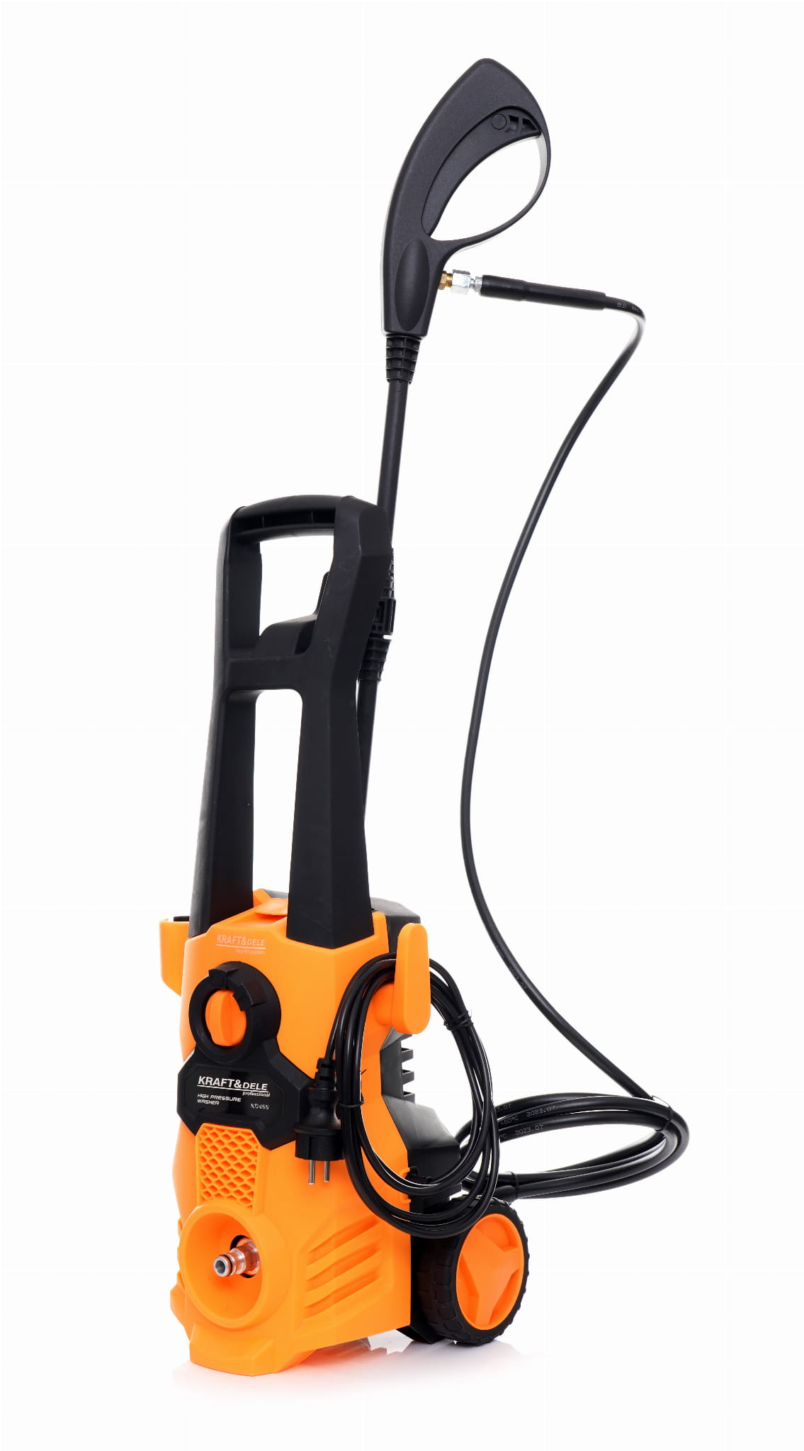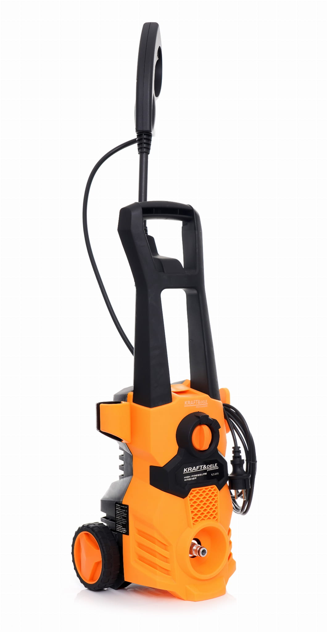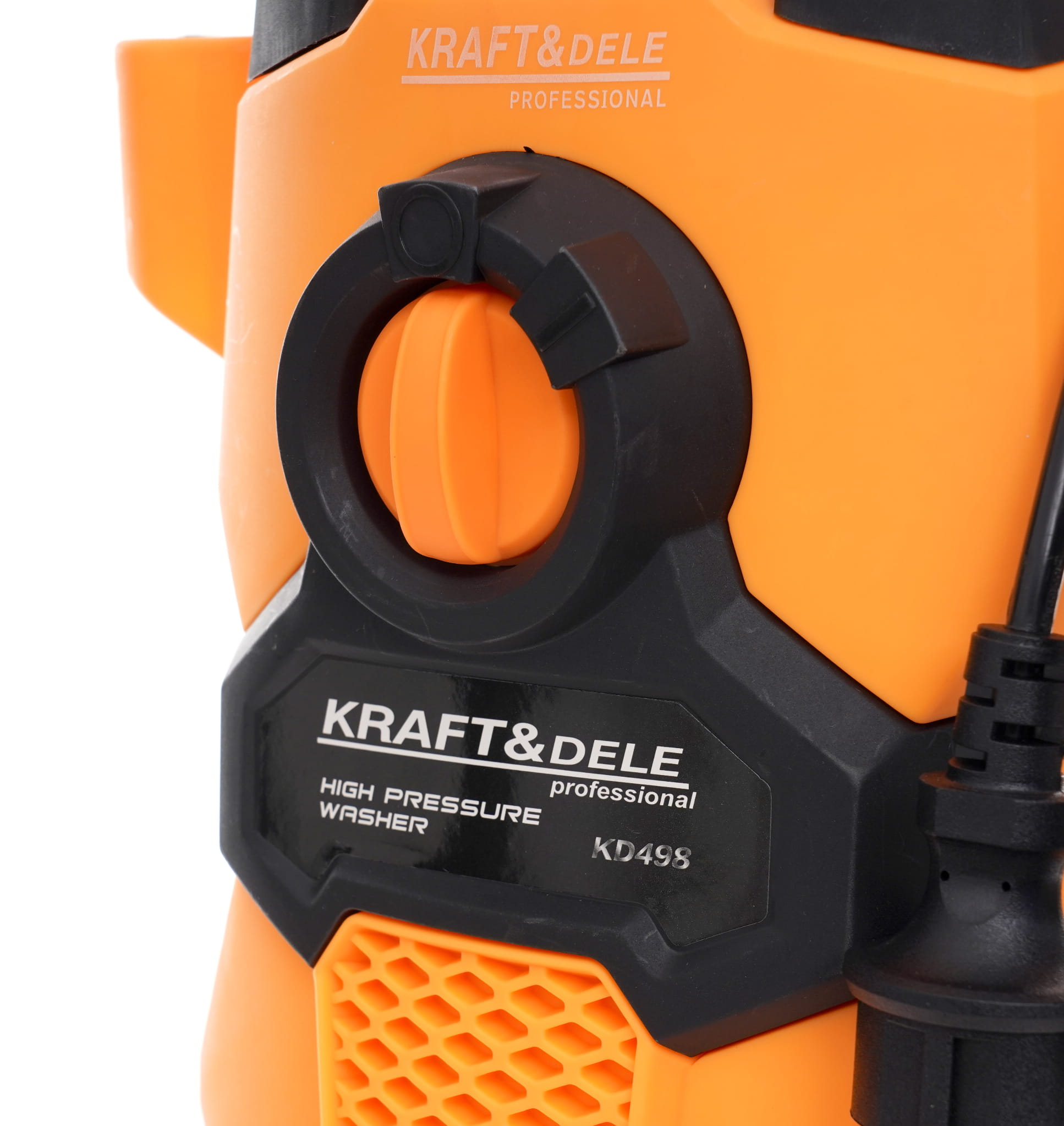 KD498 to elektryczna myjka ciśnieniowa z silnikiem szczotkowym o mocy 1900 W i maksymalnym ciśnieniem roboczym 240 bar. Urządzenie wyposażono w metalową pompę z napędem bezpośrednim oraz system automatycznego zatrzymania pompy po zwolnieniu spustu pistoletu.