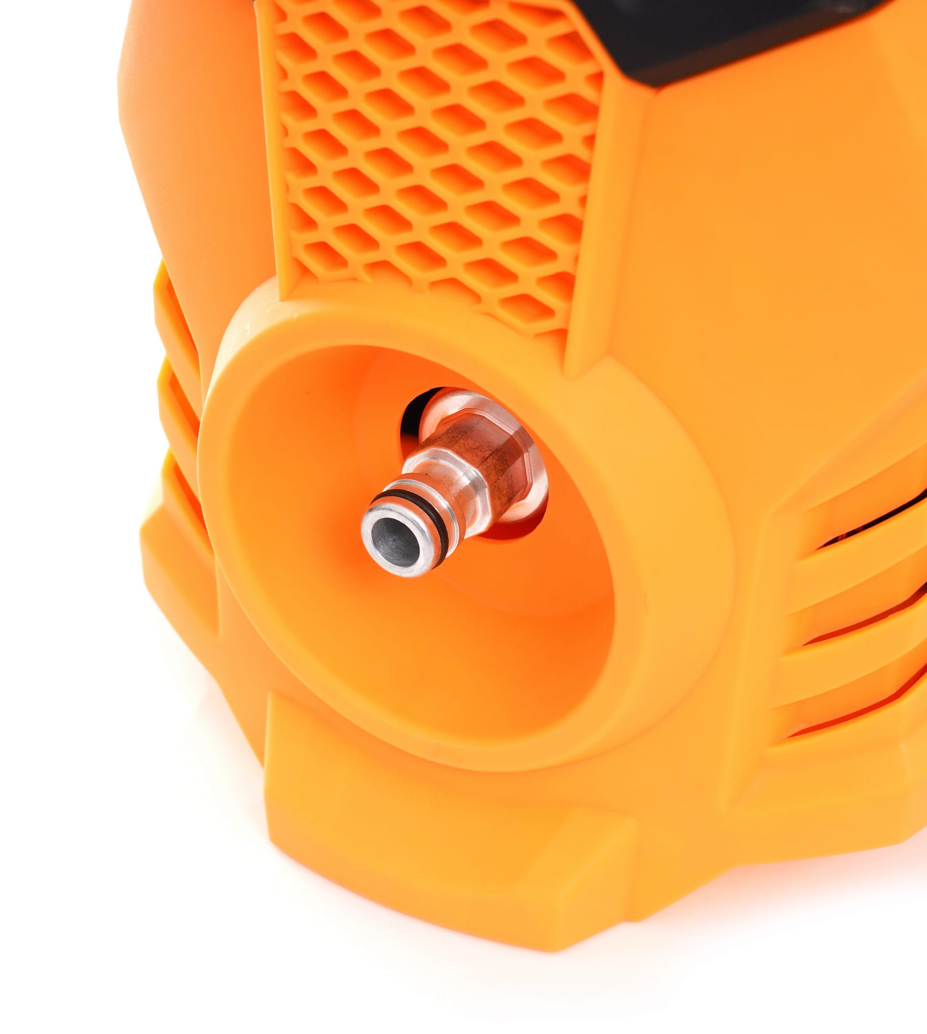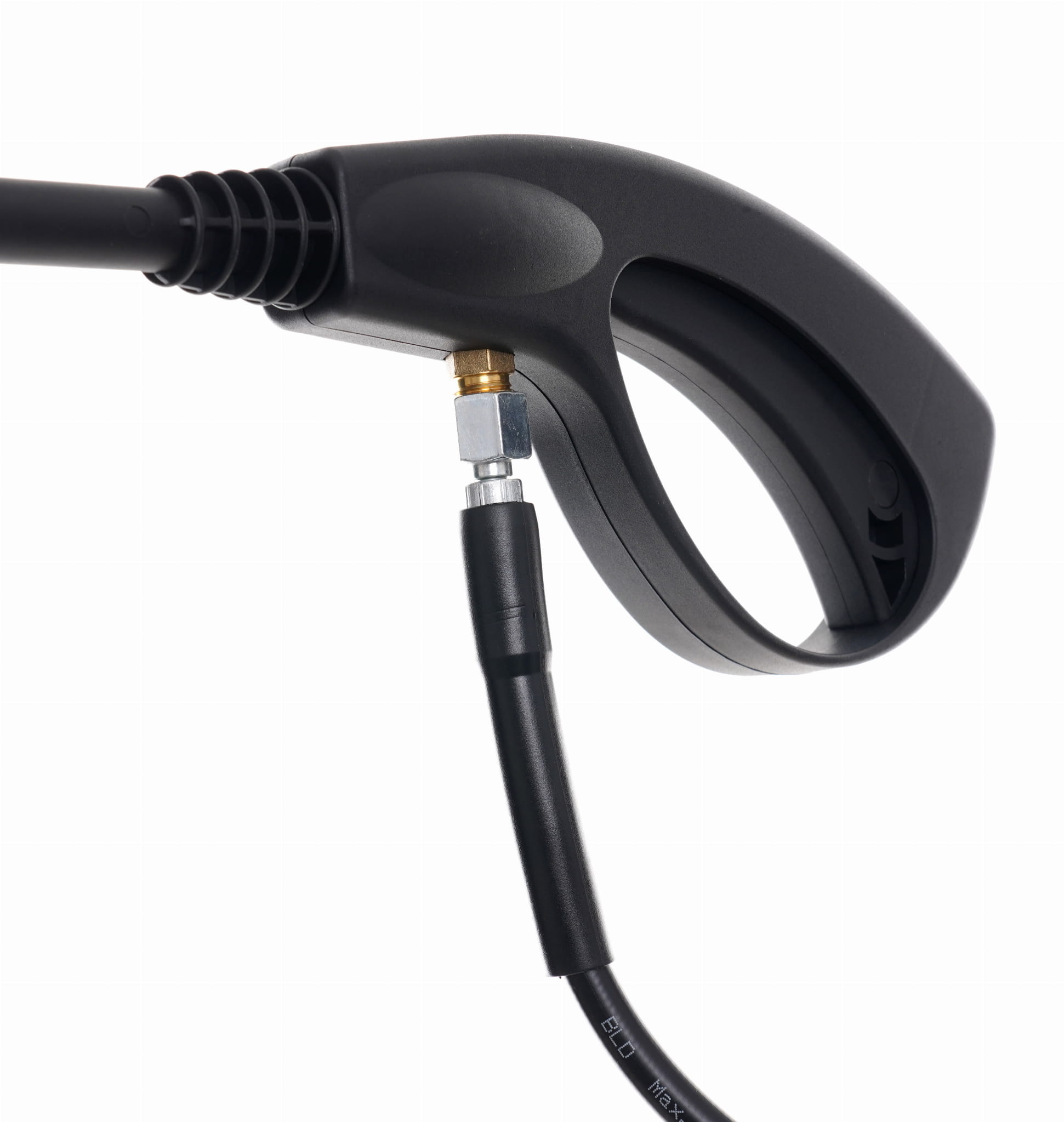 Pompa zatrzymuje się automatycznie w momencie zwolnienia spustu pistoletu i uruchamia się ponownie po jego naciśnięciu. Rozwiązanie to ogranicza zużycie energii elektrycznej i wody podczas przerw w pracy, a także zmniejsza niepotrzebne obciążenie pompy i silnika, co przekłada się na dłuższą żywotność układu hydraulicznego.