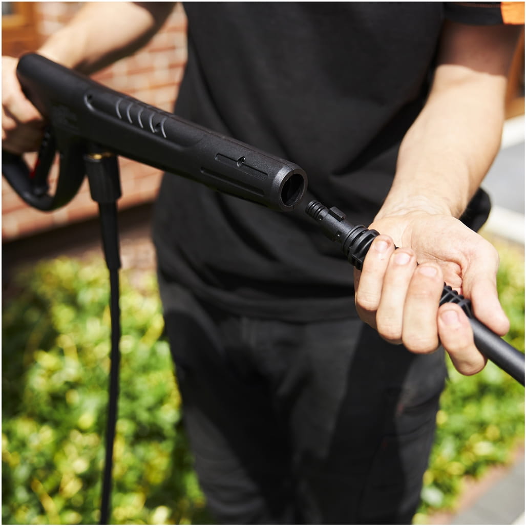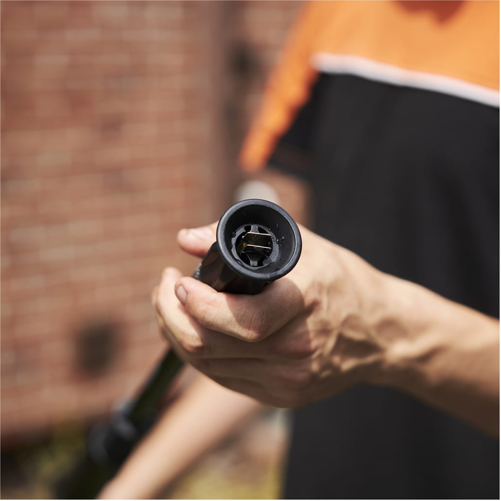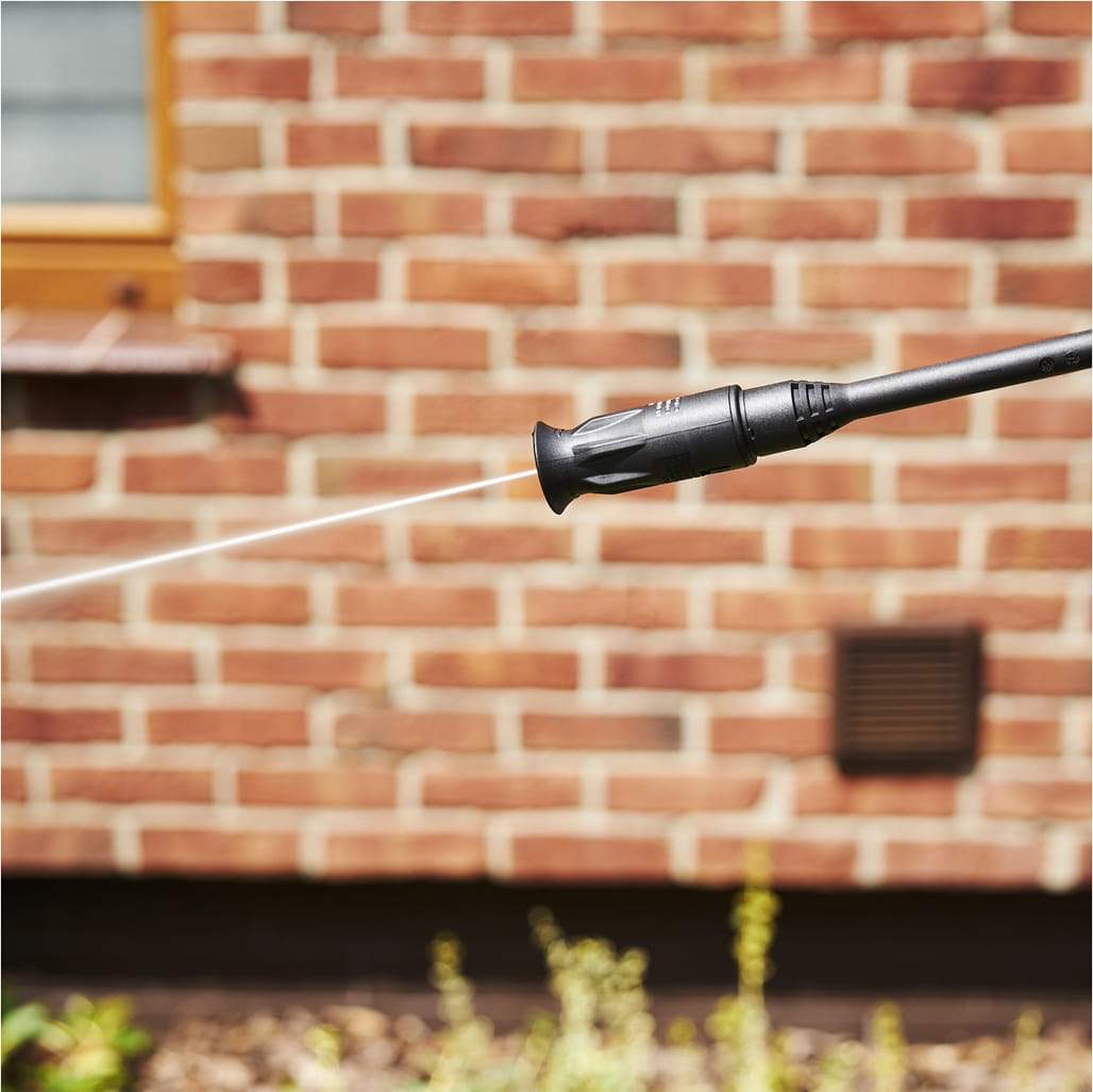 Urządzenie uruchamia silnik wyłącznie po naciśnięciu spustu pistoletu i automatycznie go wyłącza po zwolnieniu. Rozwiązanie to ogranicza zbędne zużycie energii oraz zmniejsza ryzyko niezamierzonego użycia strumienia wody.