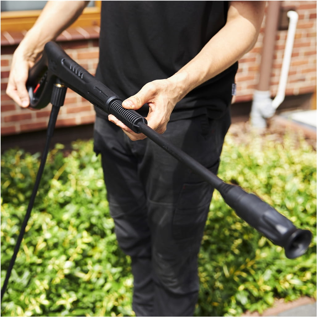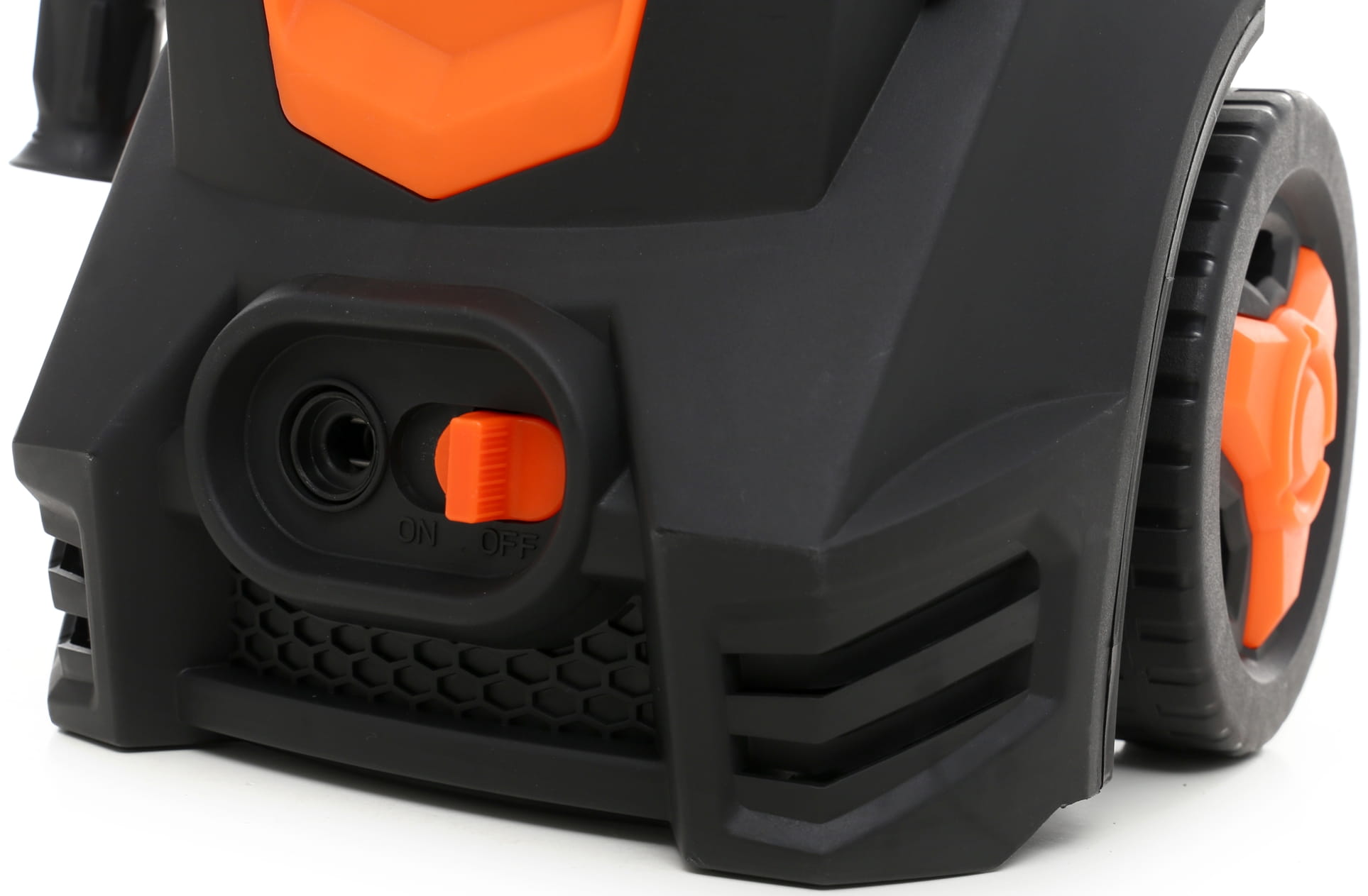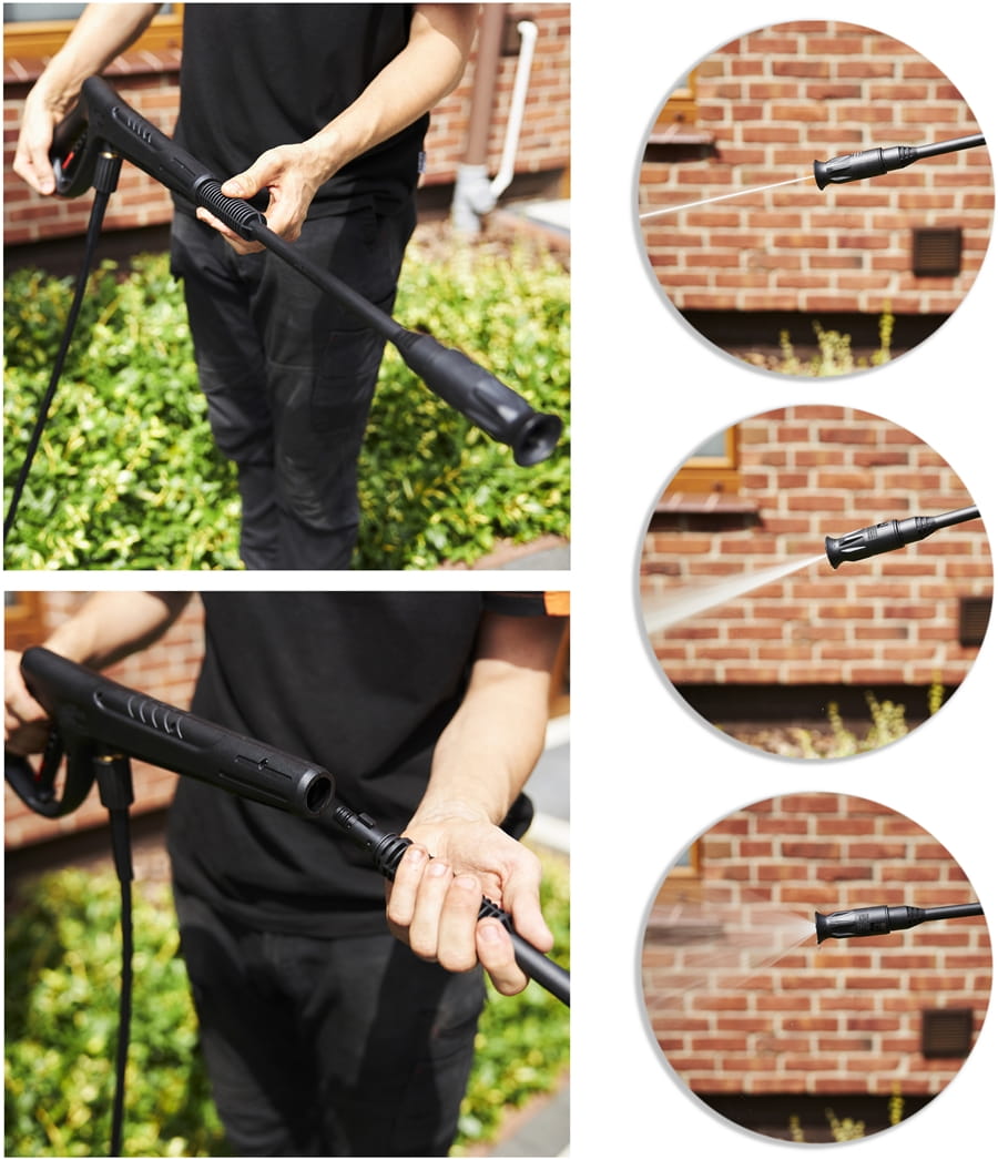 Urządzenie uruchamia silnik wyłącznie po naciśnięciu spustu pistoletu i automatycznie go wyłącza po zwolnieniu. Rozwiązanie to ogranicza zbędne zużycie energii oraz zmniejsza ryzyko niezamierzonego użycia strumienia wody.