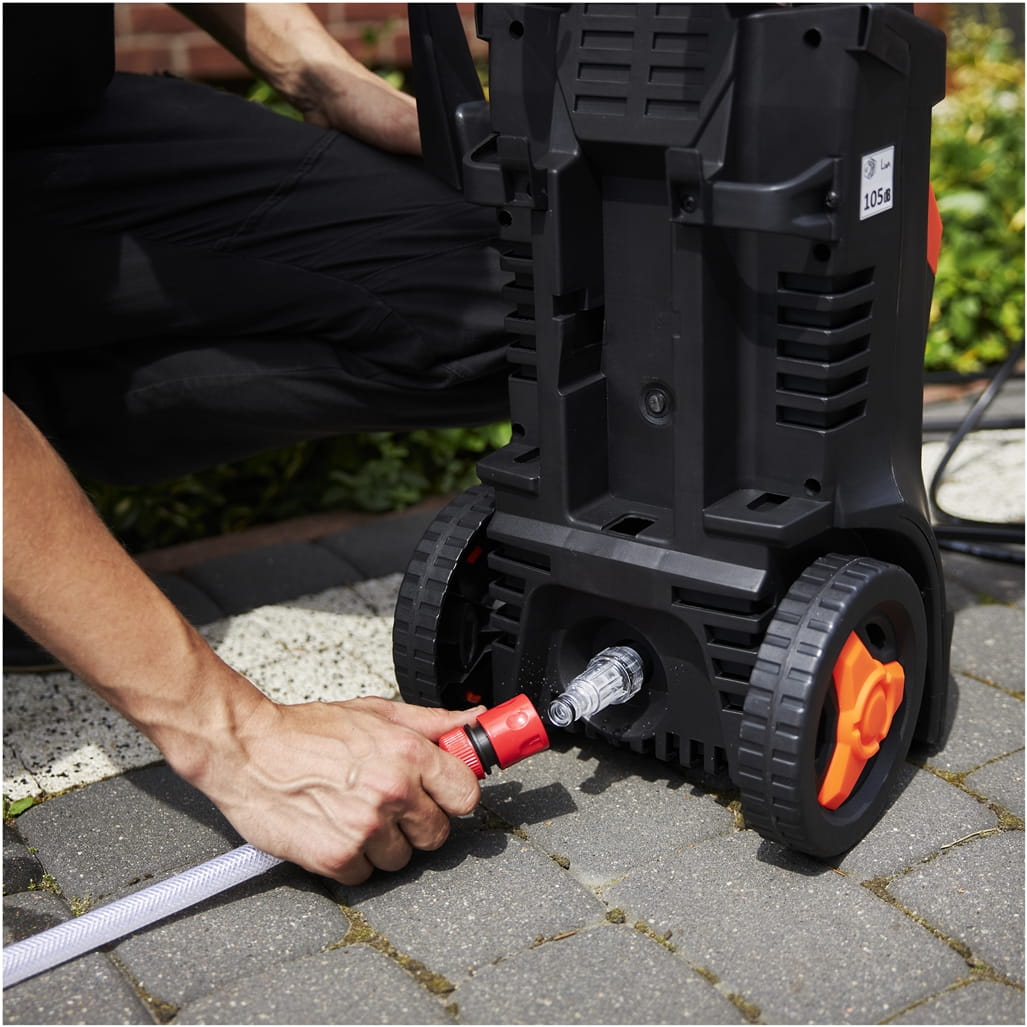 Urządzenie przyjmuje wodę o temperaturze do 50°C. Podłączenie ciepłej wody przyspiesza usuwanie tłustych i olejowych zabrudzeń, jednak nie należy przekraczać podanego limitu temperatury, aby nie uszkodzić uszczelek i węża wysokociśnieniowego.