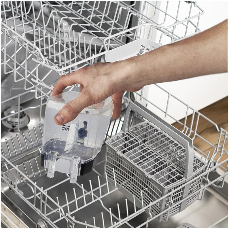Podciśnienie na poziomie 1,3–1,5 kPa wystarcza do skutecznego zbierania wody i roztworu czyszczącego z gładkich, nieprzepuszczalnych powierzchni. Zbierany płyn trafia do zbiornika o pojemności 250 ml, który można wyjąć jednym naciśnięciem przycisku i opróżnić lub umyć w zmywarce bądź pod bieżącą wodą.
