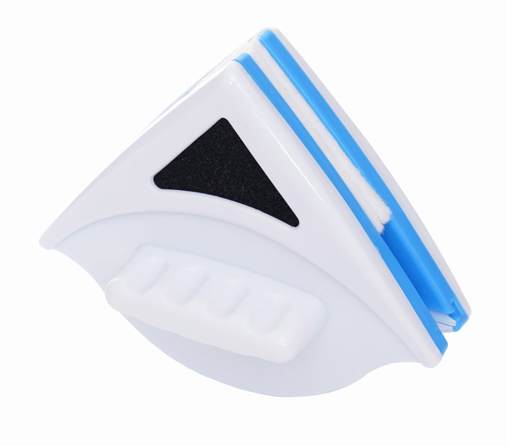 Wbudowane magnesy łączą obie części myjki przez taflę szkła. Przesunięcie jednej strony powoduje synchroniczny ruch drugiej — obie powierzchnie szyby są czyszczone w jednym przejściu, bez konieczności obsługi każdej strony osobno.