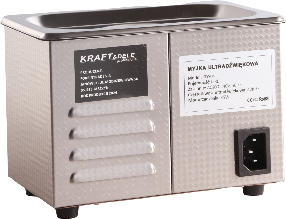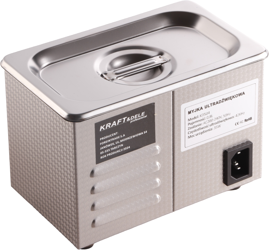 KD504 to kompaktowe urządzenie czyszczące marki Kraft&Dele, wykorzystujące technologię ultradźwiękową do usuwania zabrudzeń z drobnych przedmiotów bez mechanicznego szorowania. Przeznaczone do użytku domowego — sprawdza się wszędzie tam, gdzie wymagane jest delikatne, a jednocześnie skuteczne czyszczenie trudno dostępnych powierzchni.